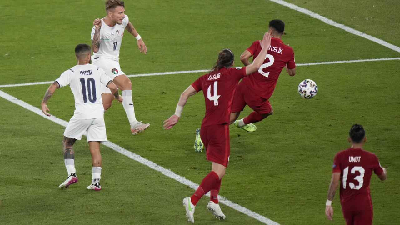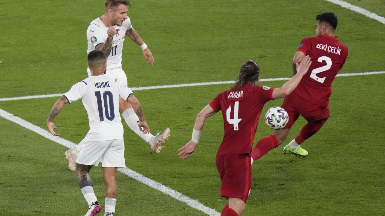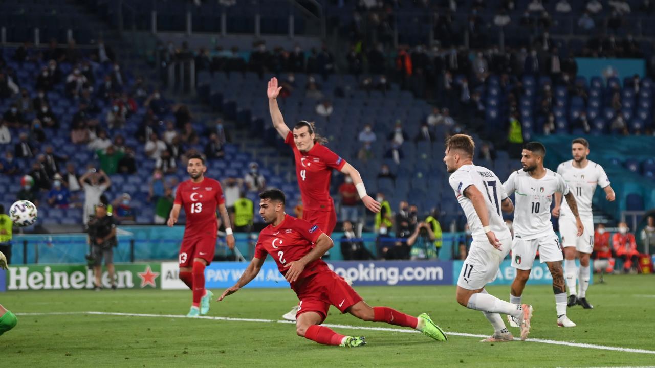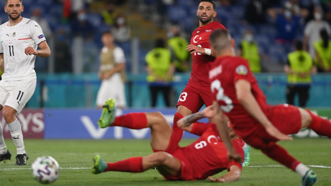 İlk yarısı golsüz sona eren karşılaşmada İtalya`ya galibiyeti getiren golleri 53. dakikada Merih Demiral (KK), 66`da Immobile ve 79`da Insigne kaydetti.
