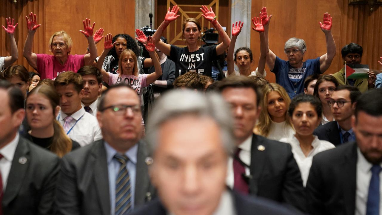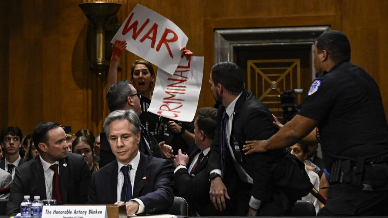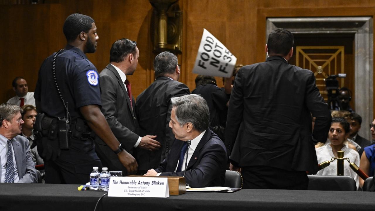 ABD Dışişleri Bakanı Antony Blinken, Senato Dış İlişkiler Komitesi önünde ABD diplomasisi, küresel zorluklar ve 2025 bütçe talebi konusunda ifade verirken konuşması protestolarla bölündü.