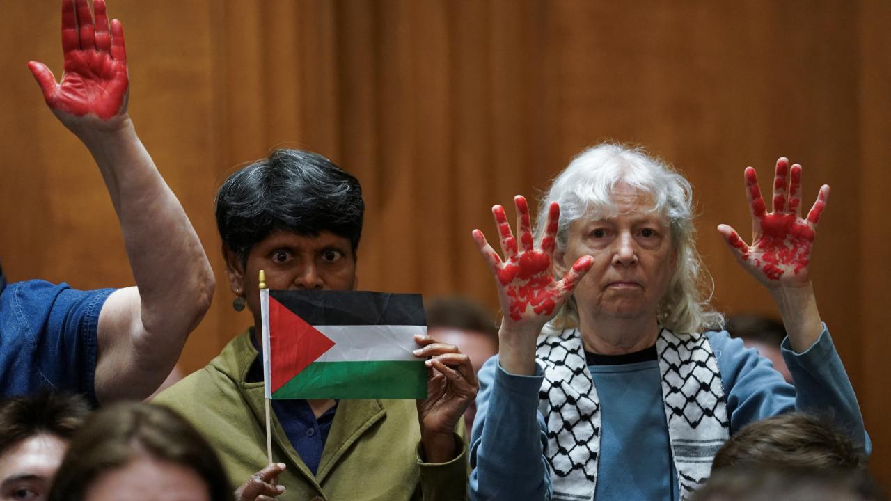 ABD Dışişleri Bakanı konuşmasına başladığı sırada salonda bulunan bir katılımcı elinde Filistin bayrağı ile ayağa kalkarak, "İsrail tarafından öldürülen Hind Receb 6 yaşındaydı. Blinken, sen Gazze kasabı olarak anılacaksın. Sen masum Filistinlilerin katili olarak anılacaksın." diye bağırdı.