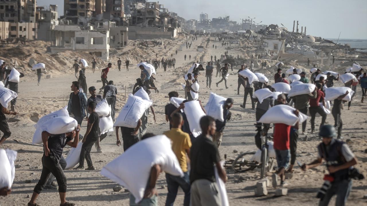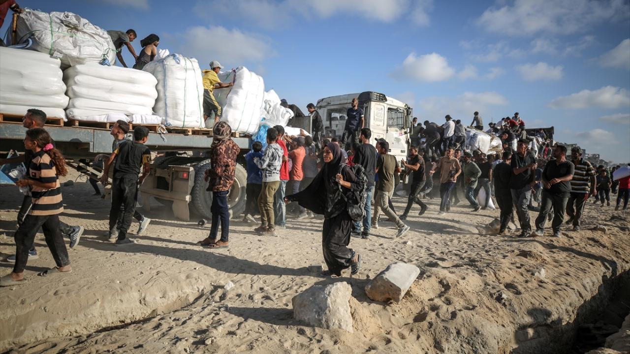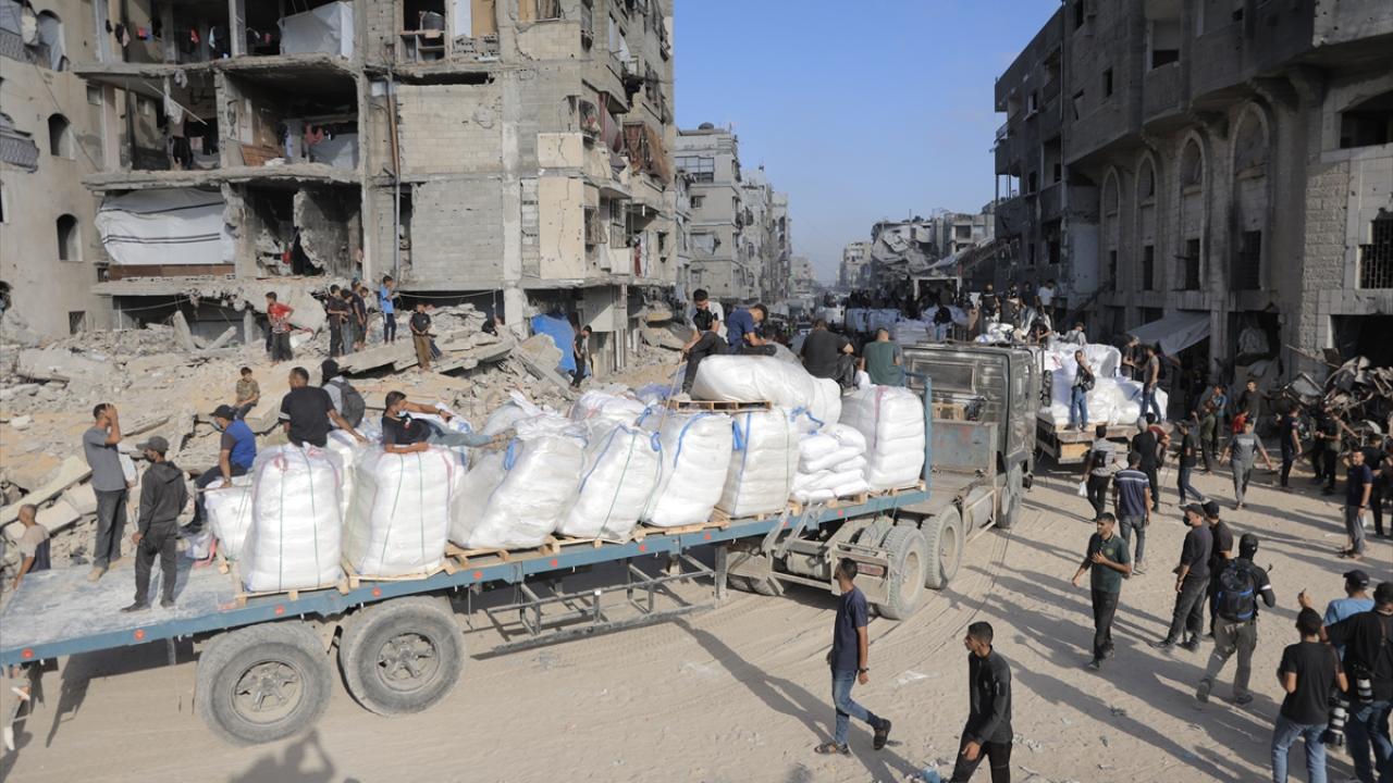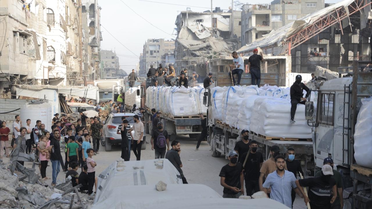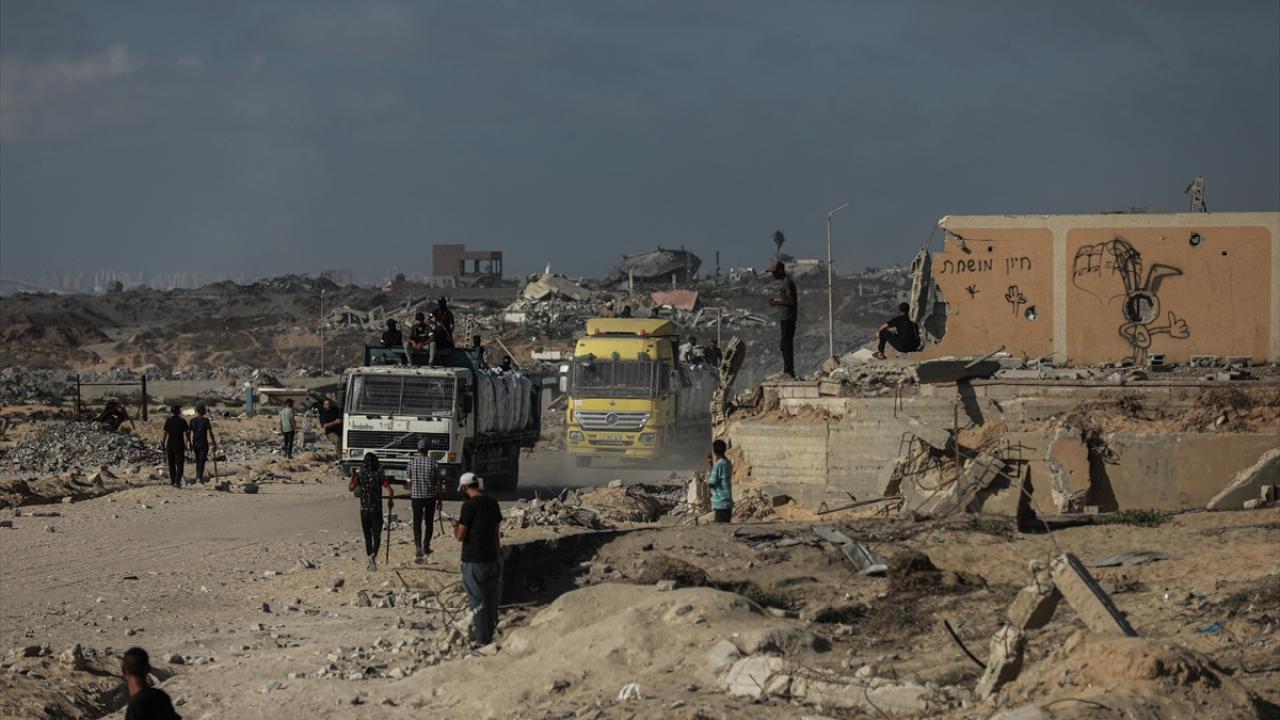 Birleşmiş Milletler tarafından İsrail saldırıları altındaki Gazze'ye gönderilen yardım tırları, Filistinlilerin korumasında Zakim Sınır Kapısı'ndan girerek kentin kuzeyine ulaştı.