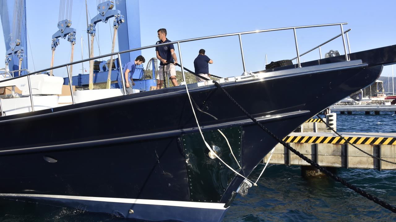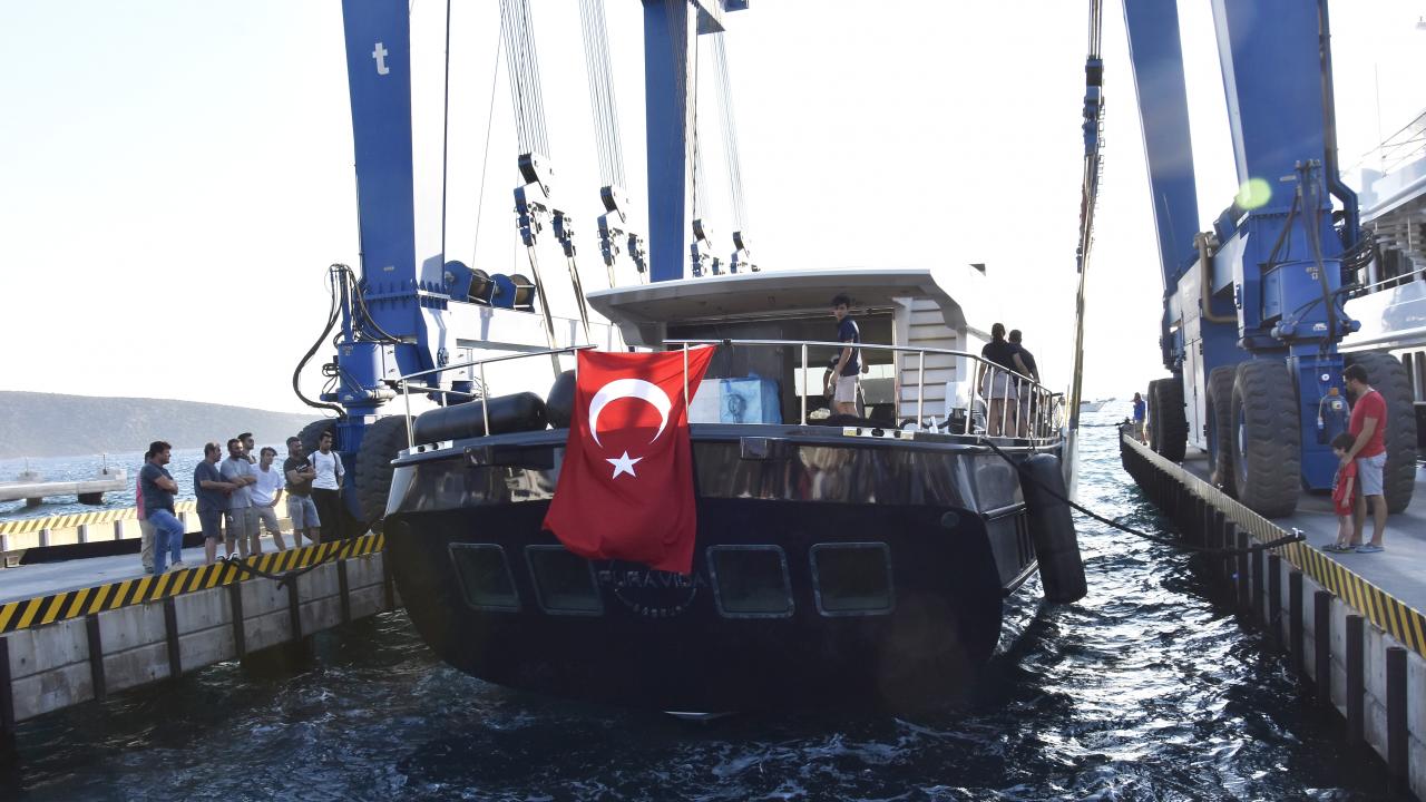Maliyeti 3 milyon euro olan yatın denize indiriliş törenine, yat acenteleri ve tersane çalışanları katıldı.