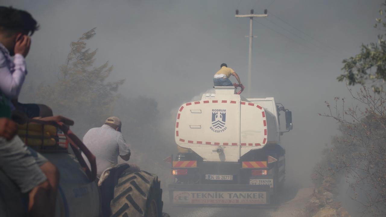 Muğla'nın Bodrum ilçesinde ormanlık alanda çıkan yangın, havadan ve karadan müdahaleyle kontrol altına alınmaya çalışılıyor.