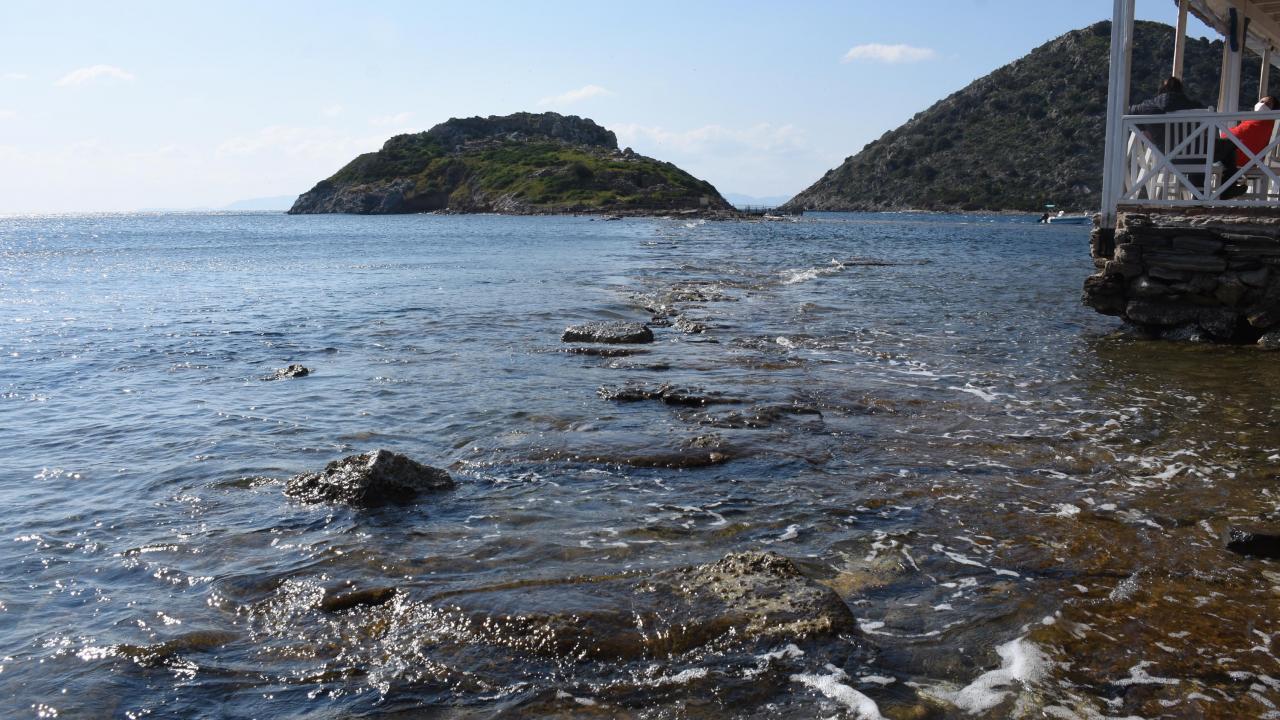 Çok sayıda vatandaş Tavşan Adası`na giden kral yolunu görmek için Gümüşlük Koyu`na geldi.