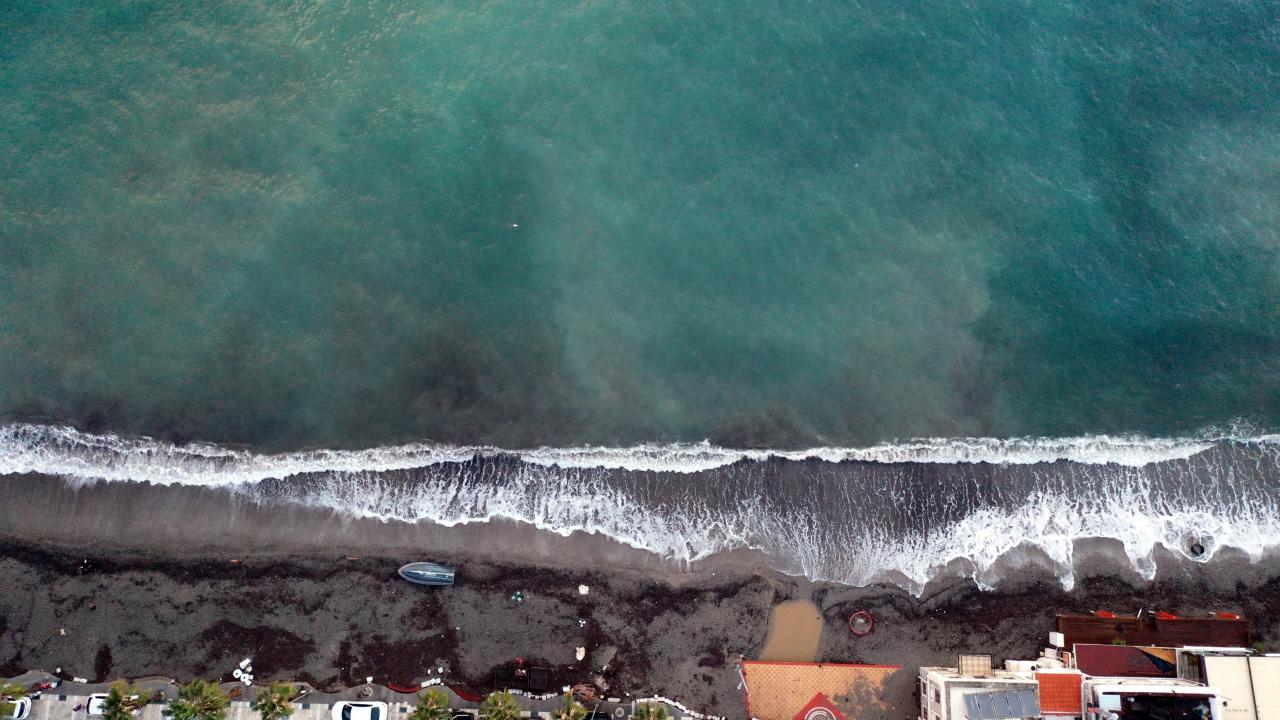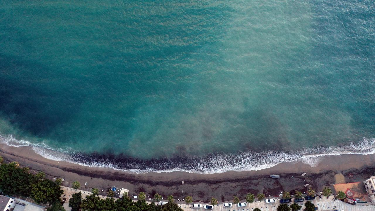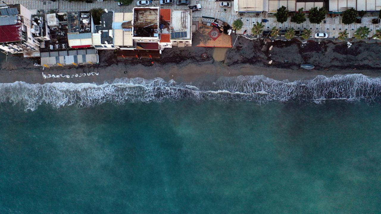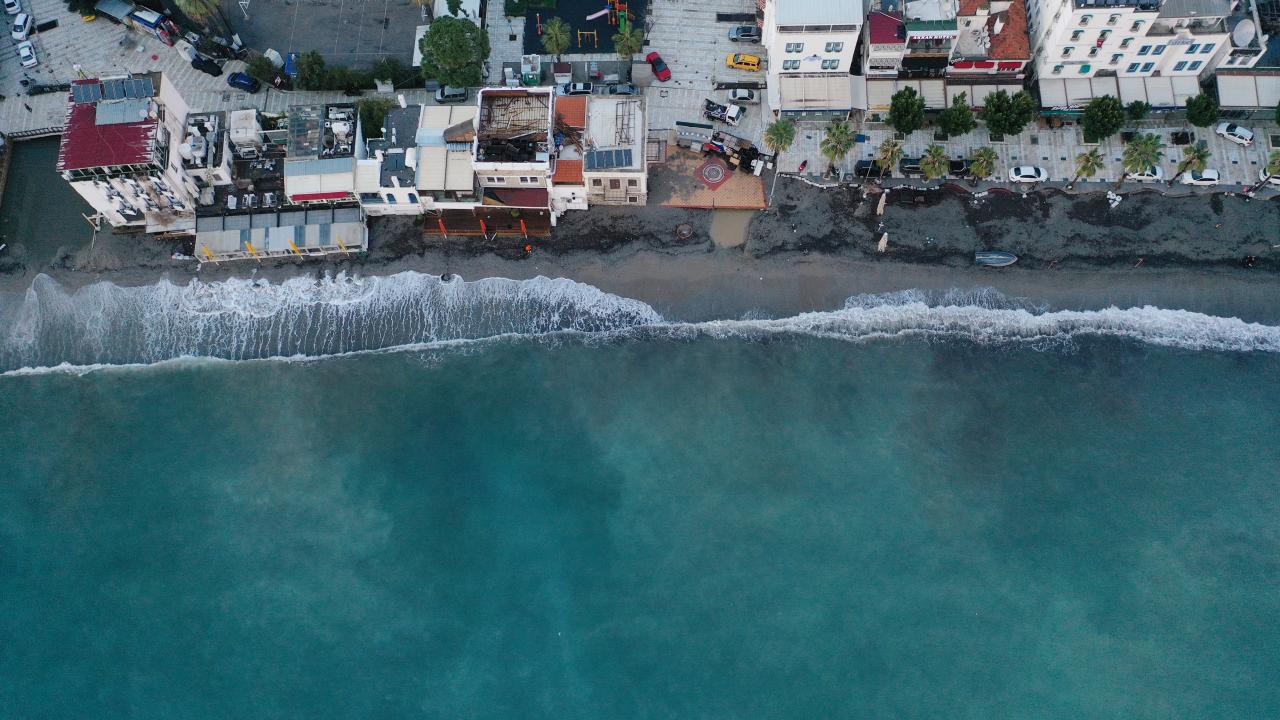 Muğla'nın Bodrum ilçesinde sağanağın ardından yağmur sularının getirdiği çamur nedeniyle denizin rengi değişti.