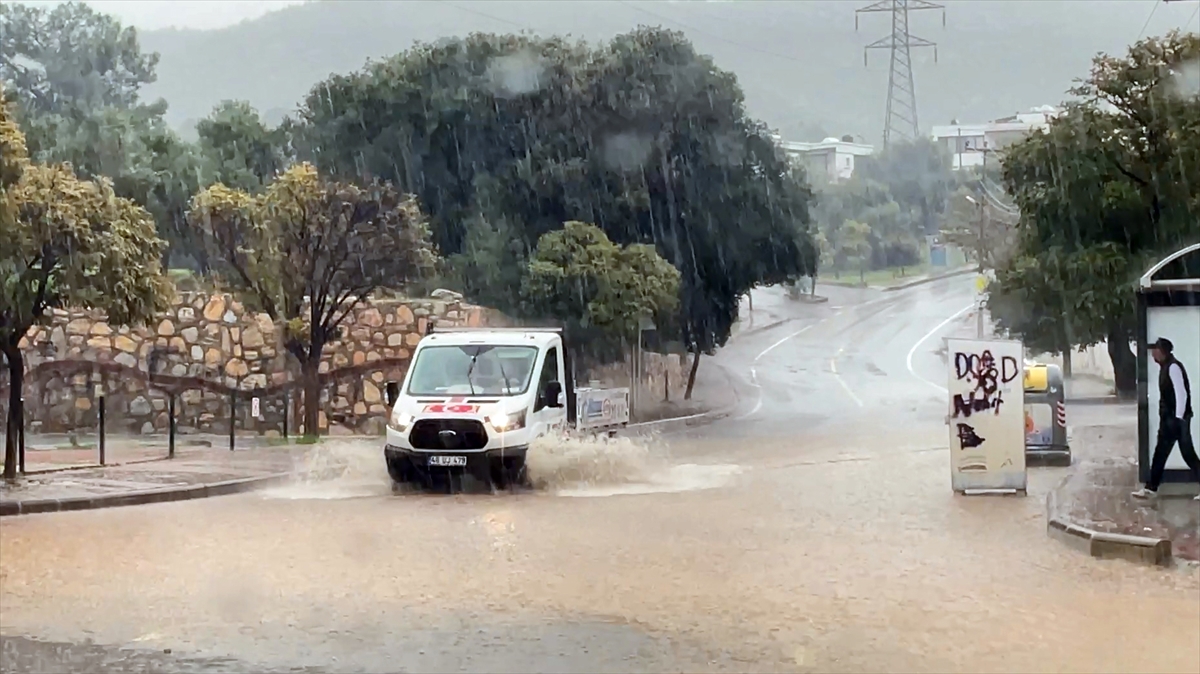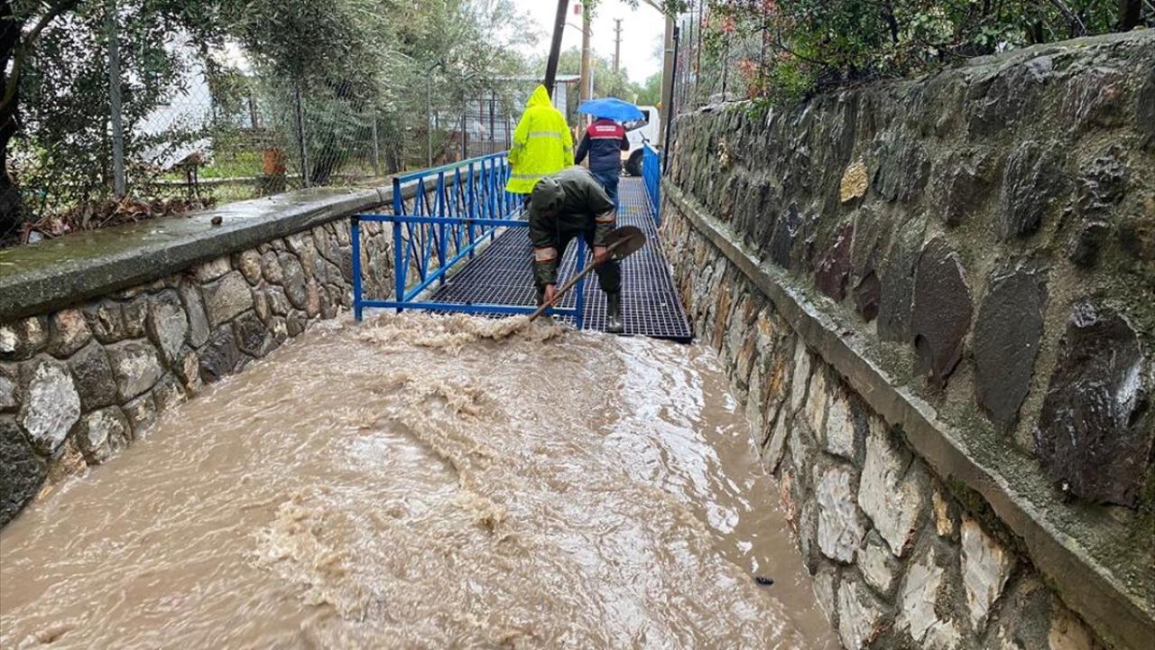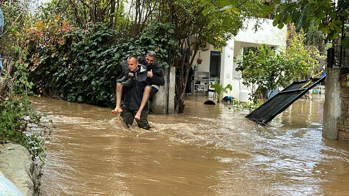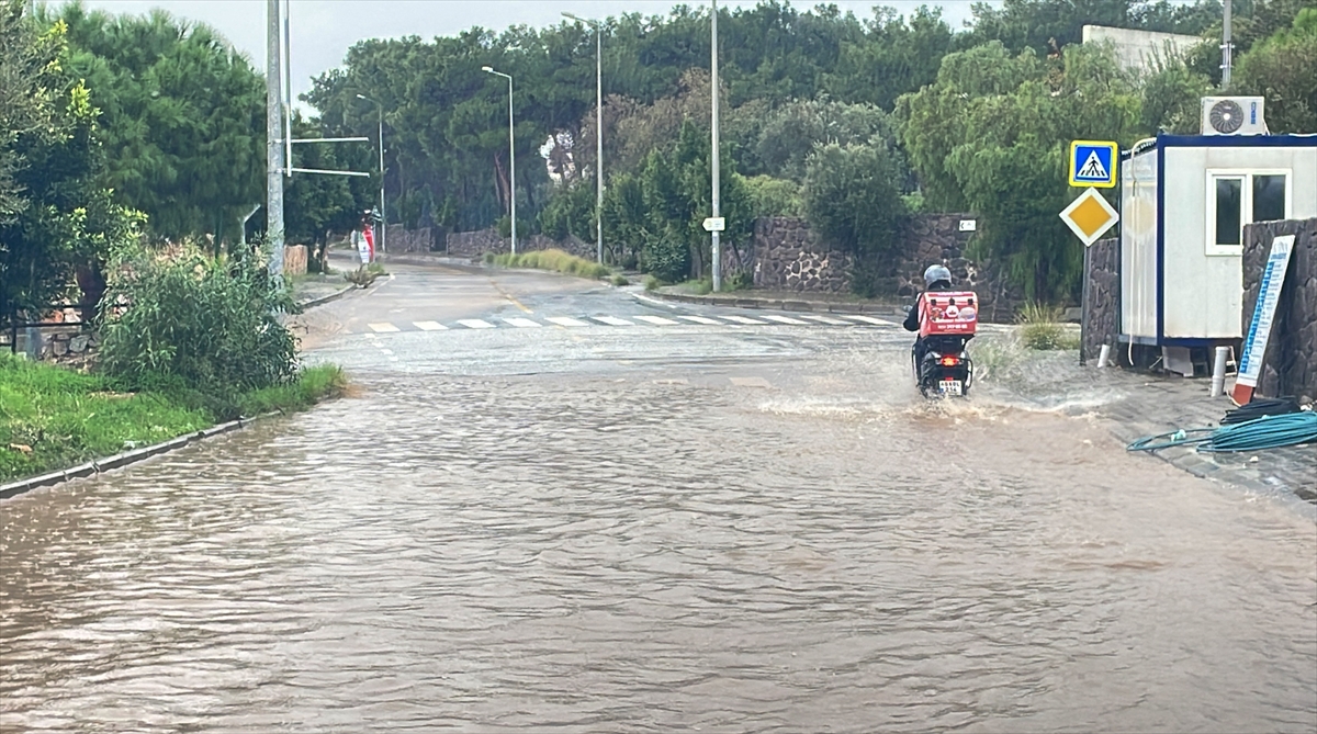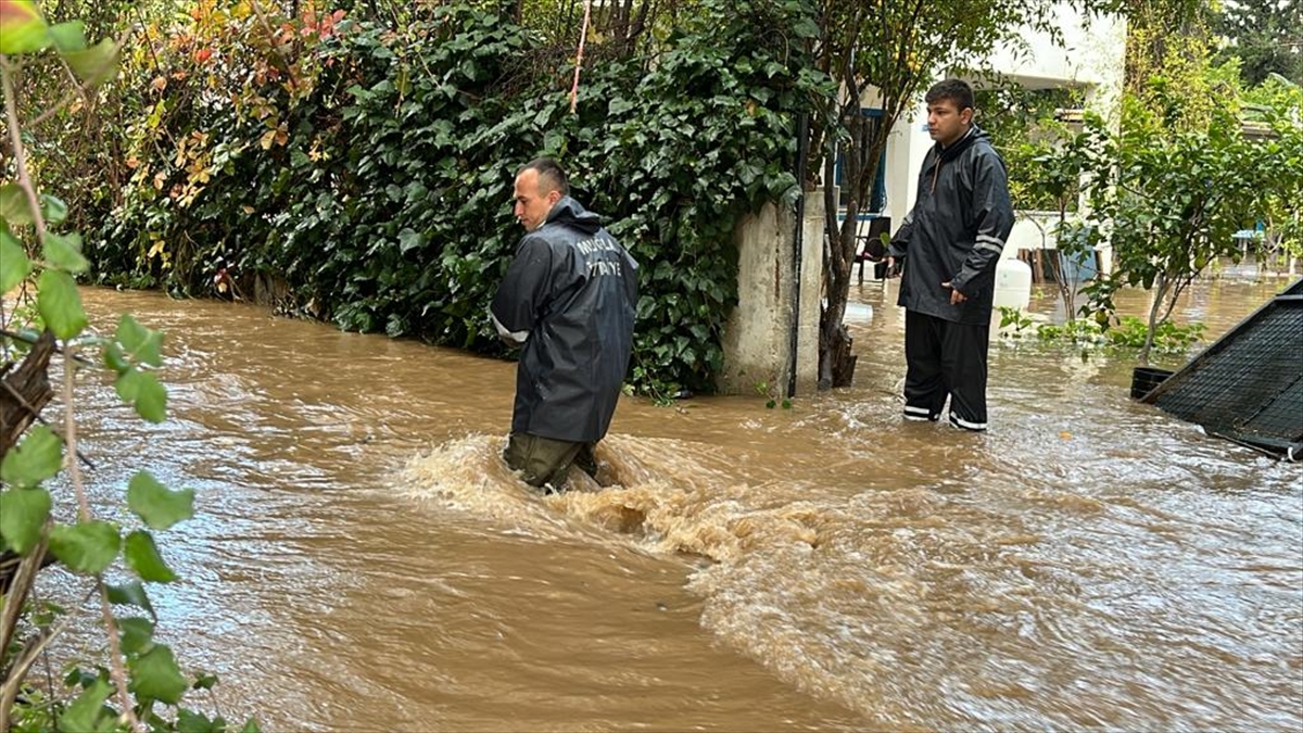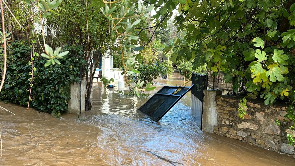 İlçede sabah saatlerinden bu yana aralıklarla etkili olan kuvvetli sağanak nedeniyle Bitez Mahallesi`nden geçen dere taştı. Bölgedeki bazı evlerin bahçeleri suyla dolarken bir evin demir kapısı kırıldı. Kırılan kapıdan bahçeye dolan yağmur suları nedeniyle evdeki 4 kişi ile bir kedi mahsur kaldı.