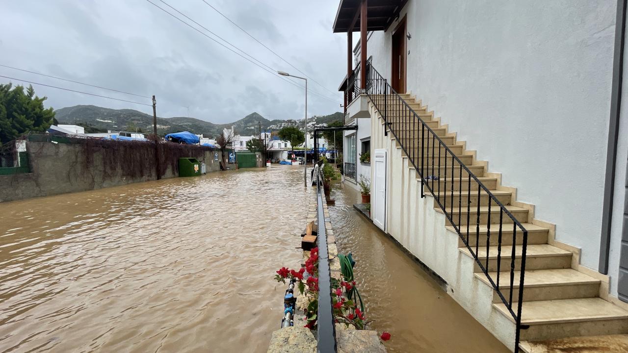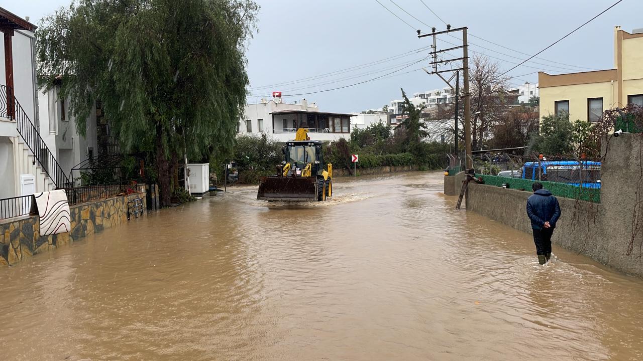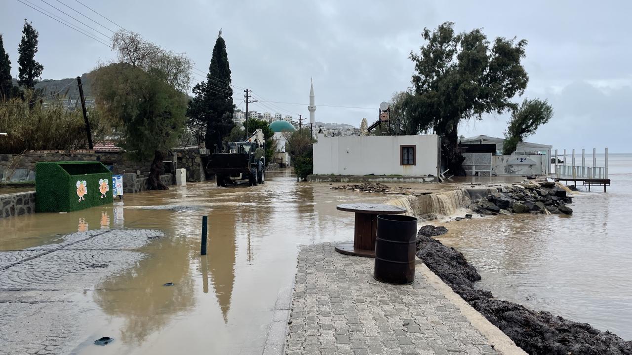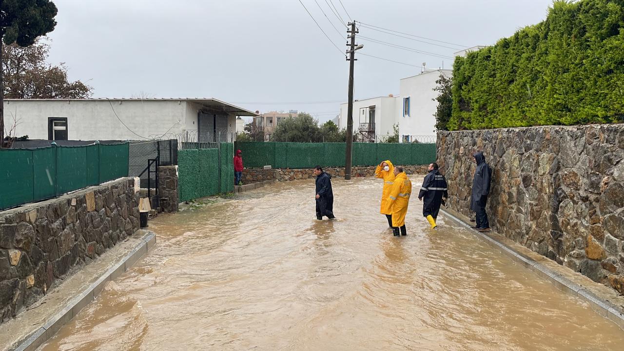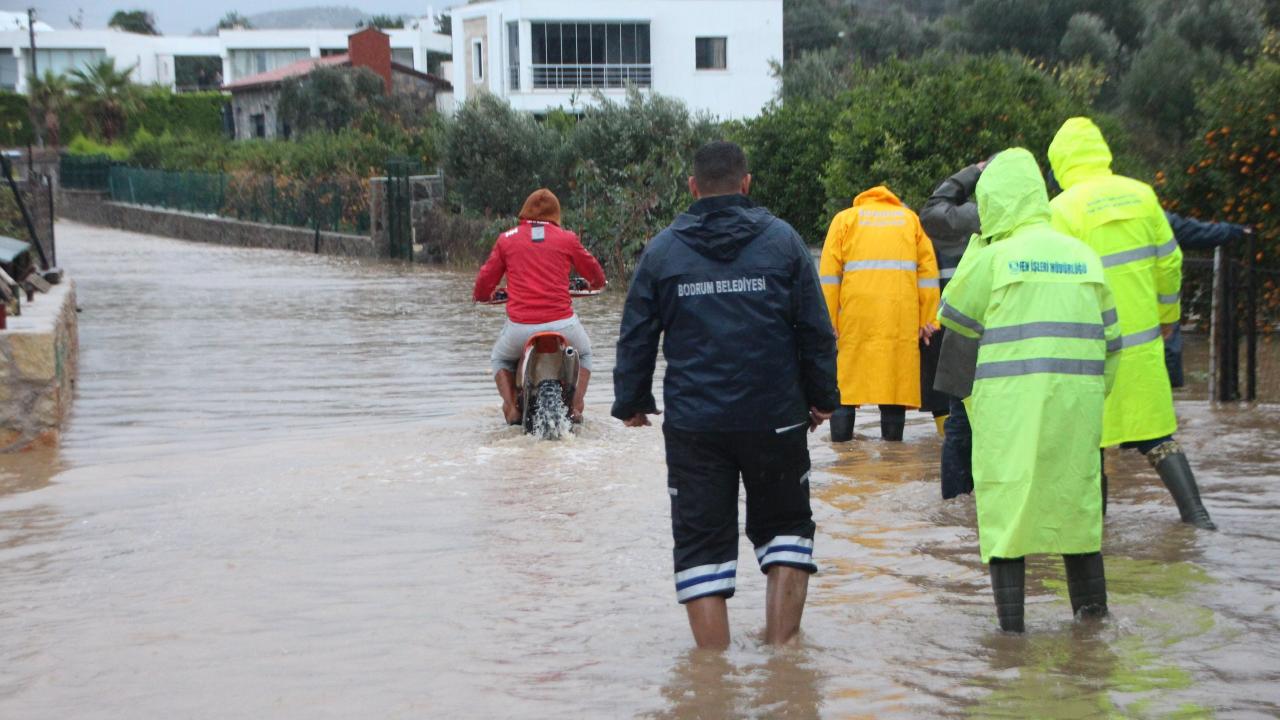 Bodrum'da kuvvetli yağış üçüncü gününde de etkili oldu. Yüksek kesimlerden inen yağmur suları ev ve iş yerlerine doldu. Cadde ve sokaklar dereye döndü. Gevşeyen toprak nedeniyle inşaatın istinat duvarı çöktü, bir otomobil dere yatağına sürüklendi.