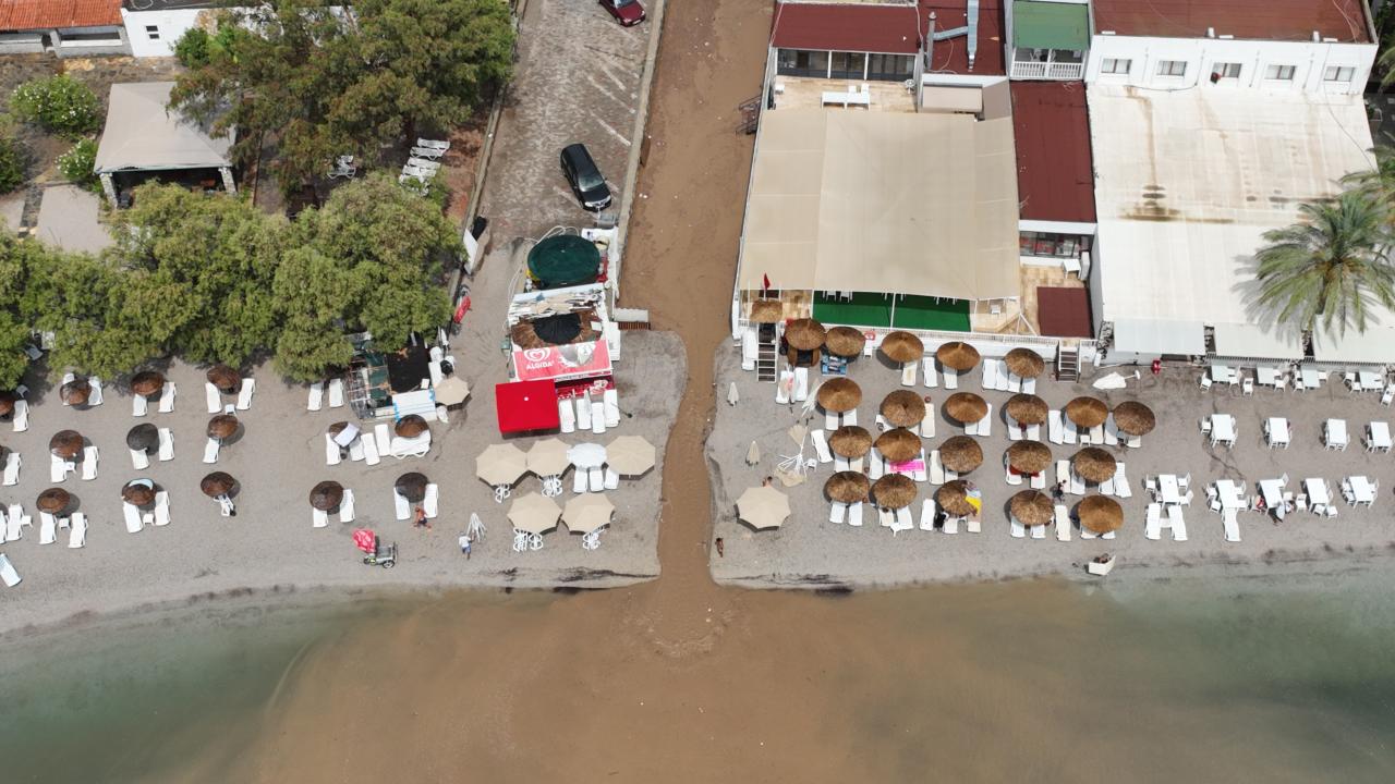 Şiddetli yağmur sebebiyle çamur akıp denize dökülen dereler Akyarlar ve Akçabük koylarını çamur deryasına çevirdi. Cennet koyların çamura bulanmış o anları havadan dronla görüntülendi.
