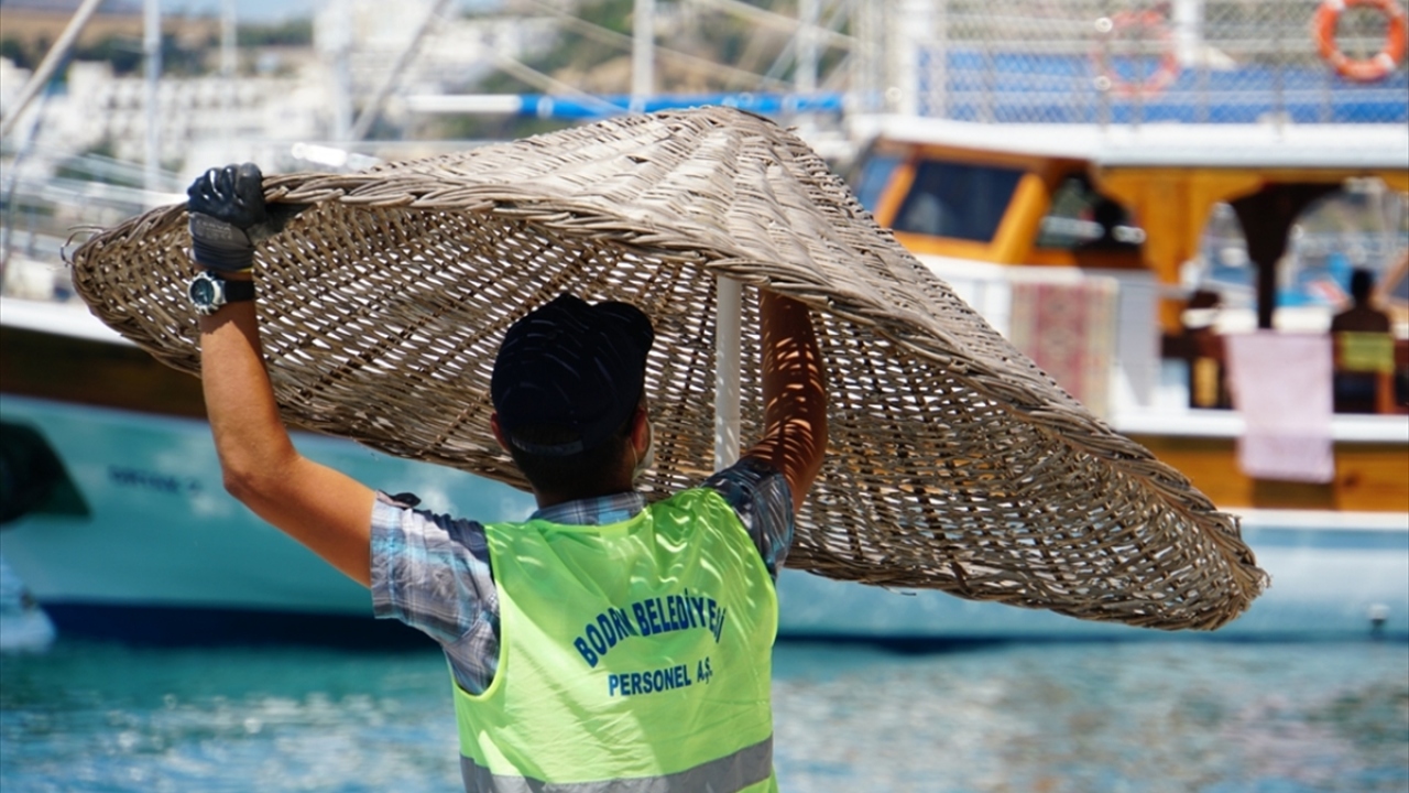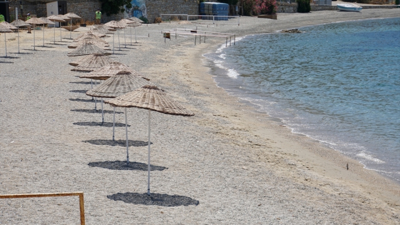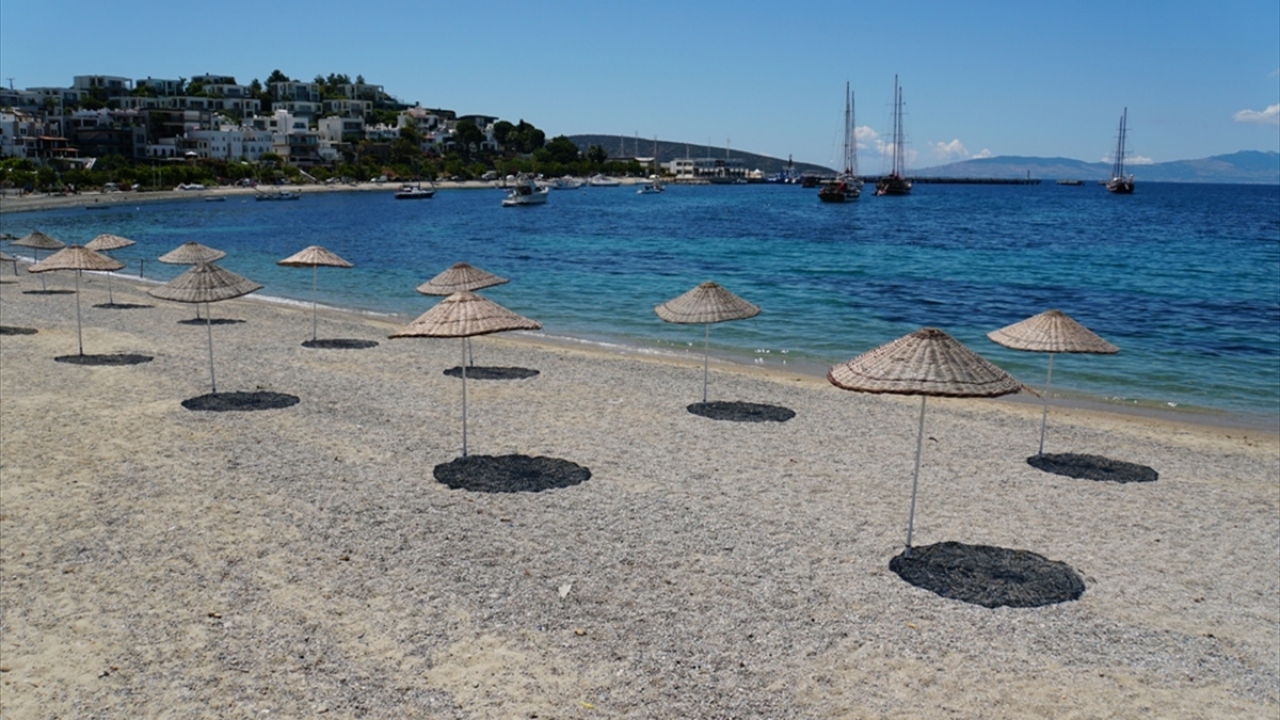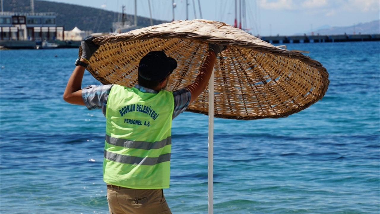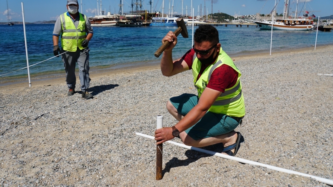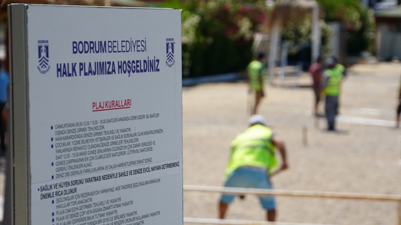 Muğla'nın Bodrum ilçesindeki halk plajları, koronavirüs tedbirlerine uygun hale getiriliyor.