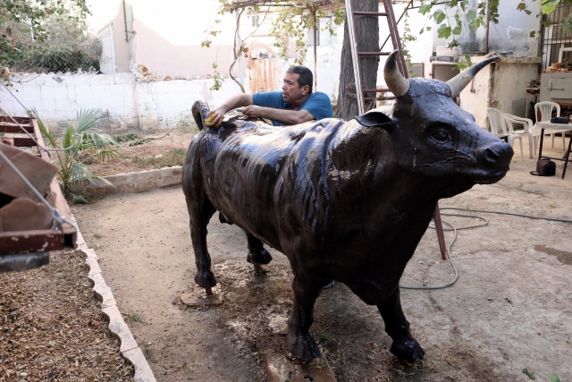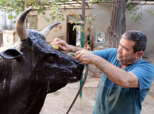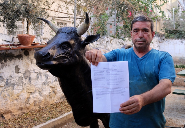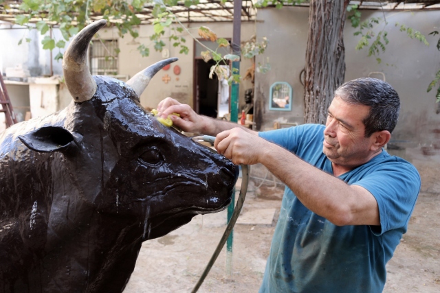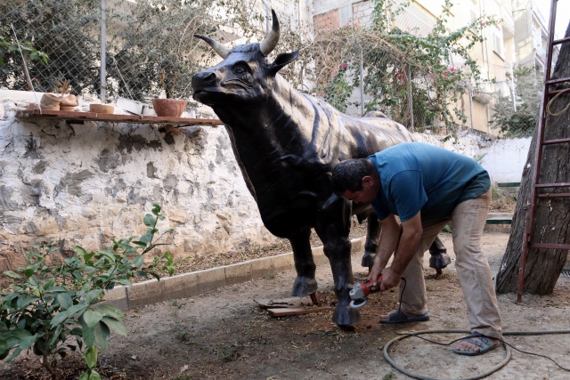 Hatay'ın İskenderun ilçesinde yaşayan seramik ve heykel ustası Selahattin Deniz, sipariş üzerine yapıp tamamladığını iddia ettiği 180 kilogram ağırlığında 2,5 metre boyundaki boğa heykeli müşteri tarafından teslim alınmayınca konuyu yargıyı taşıdı.