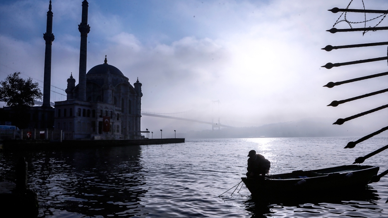 İstanbul Boğazı'nda günün ilk ışıklarıyla birlikte sis etkili oldu.