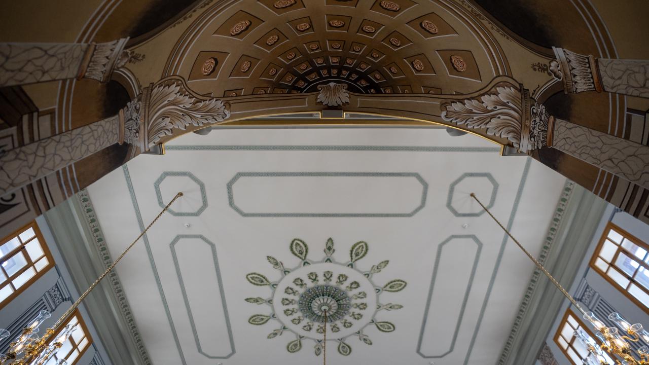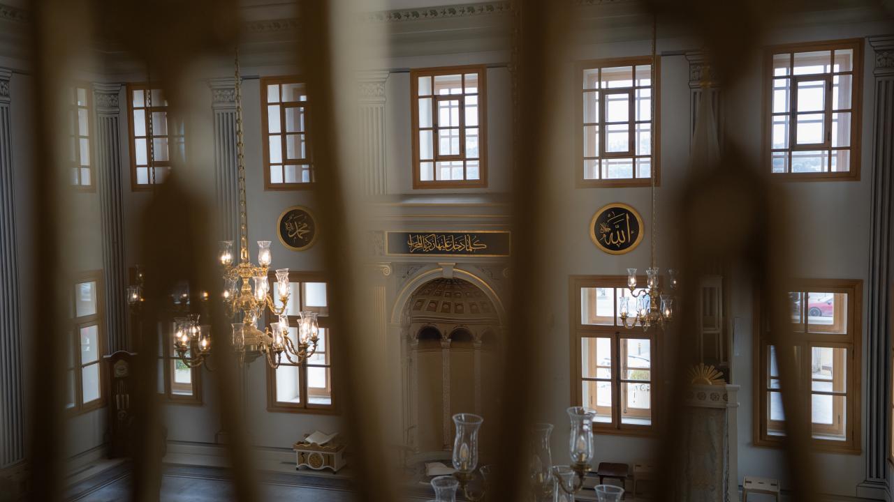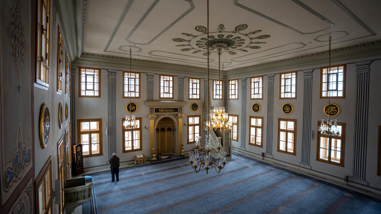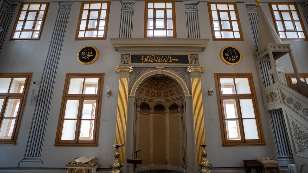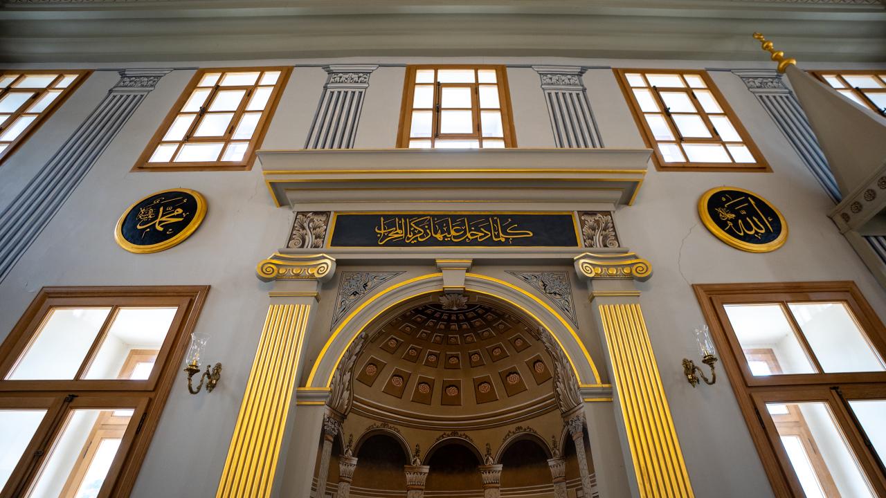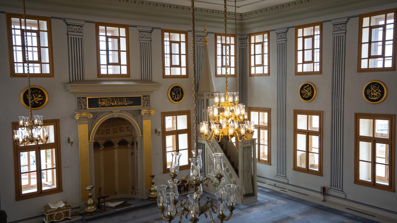 Caminin iç mekanında ise dönemin süsleme ve hat anlayışını yansıtan unsurlar öne çıkarken hattat Arapzade Sadullah Efendi`ye ait bir "Hilye-i Hakani" levhası bulunuyor. Bu ayrıntı, yapının sadece mimari değil, hat sanatı bakımından da dikkate değer bir mirasa sahip olduğunu ortaya koyuyor.