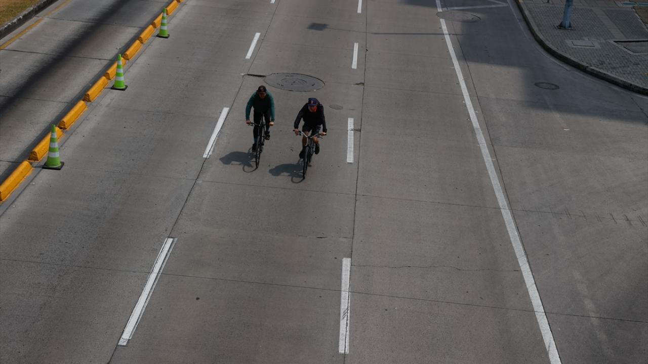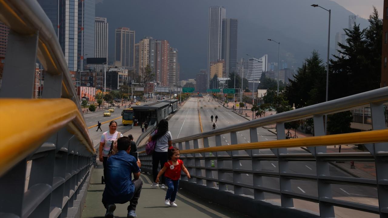 Kolombiya'nın başkenti Bogota'da hava kirliliğine dikkat çekmek ve halkı bisiklet kullanmaya teşvik etmek için uygulanan "Arabasız ve Motorsuz Gün" dolayısıyla özel araçlar ve motosikletlerin trafiğe çıkmasına izin verilmedi.