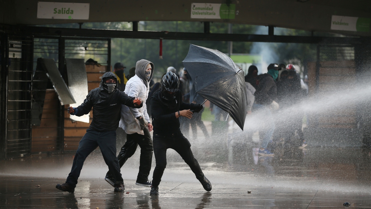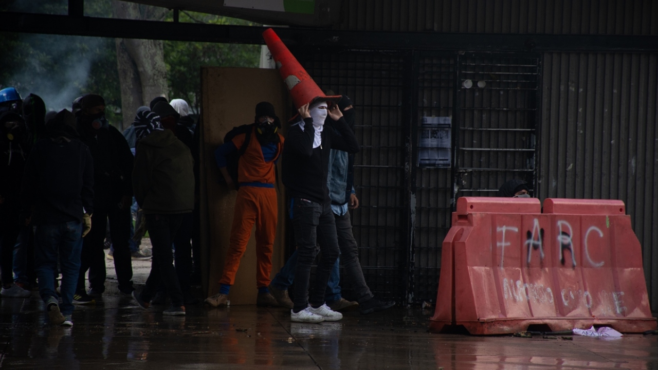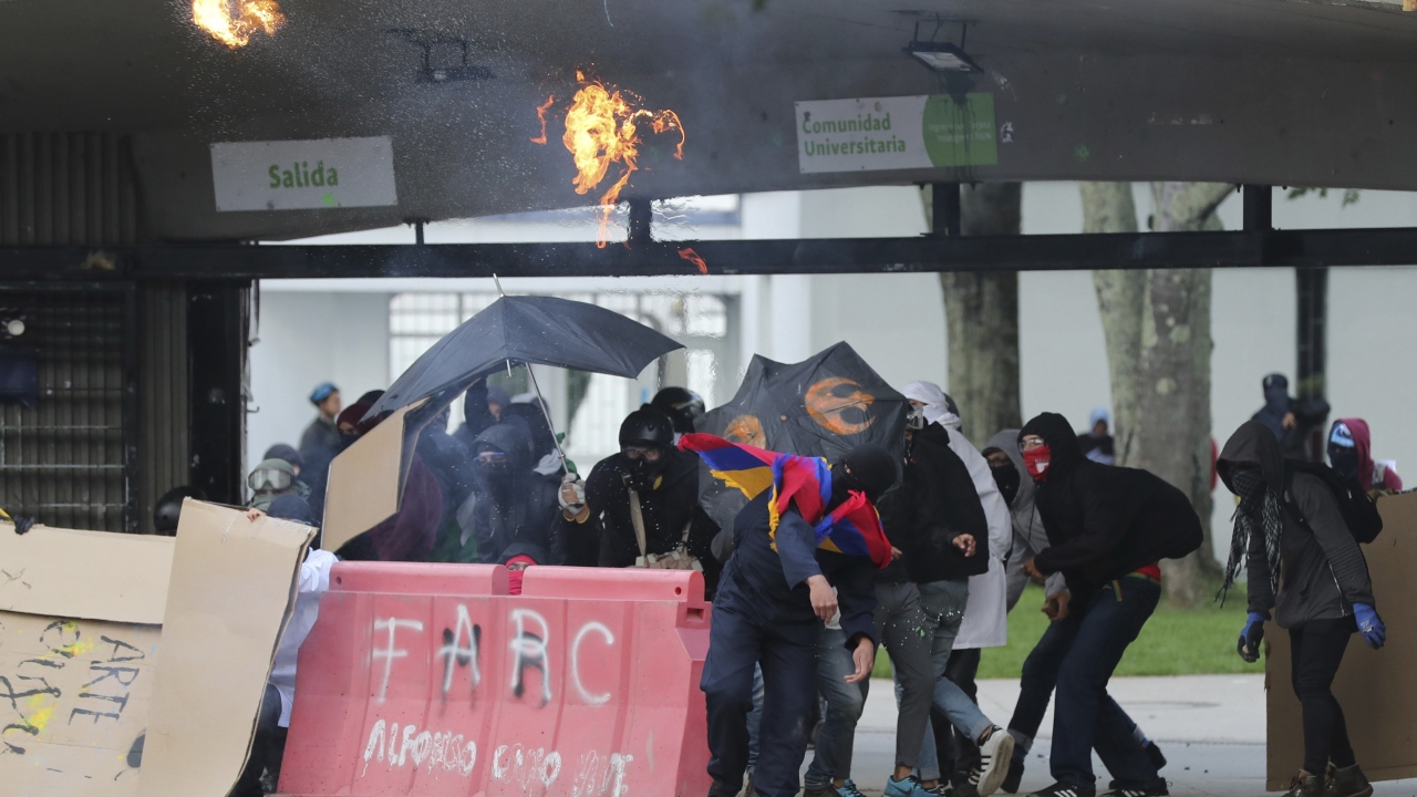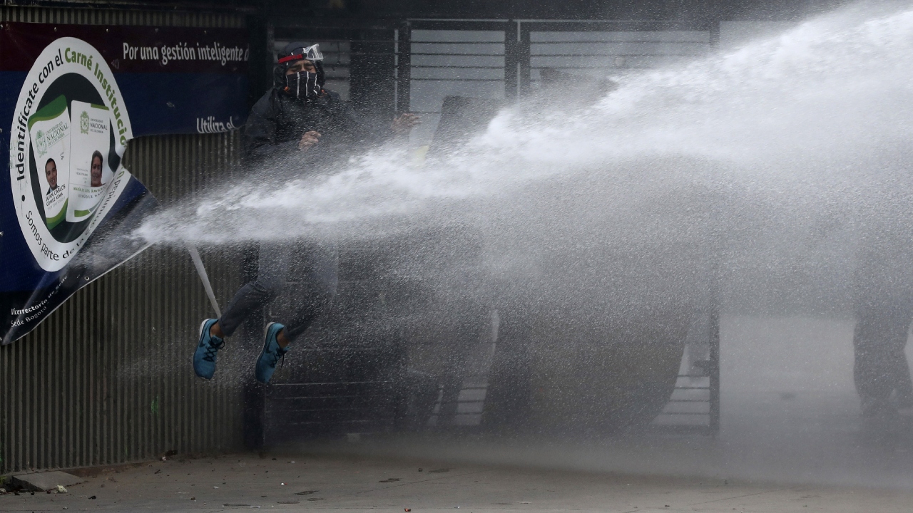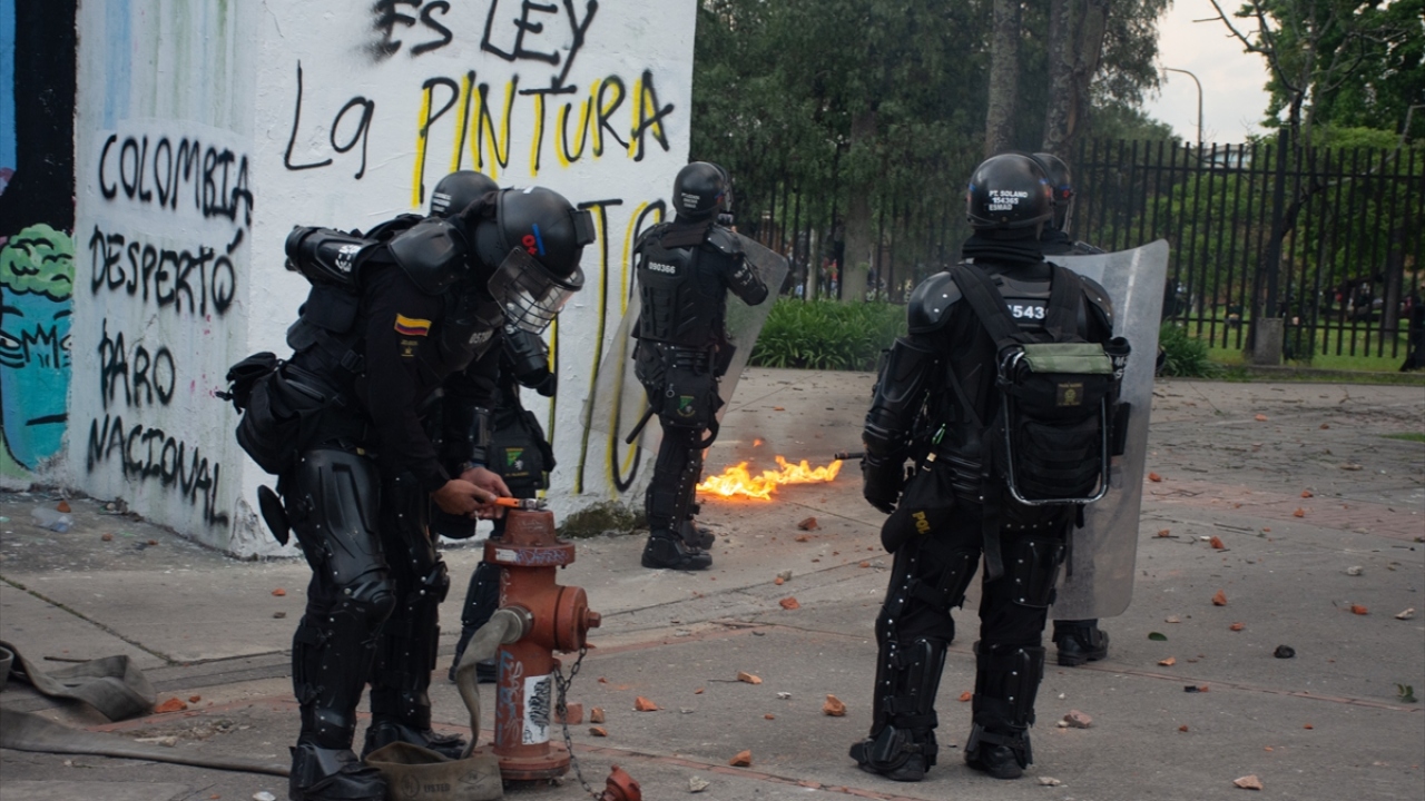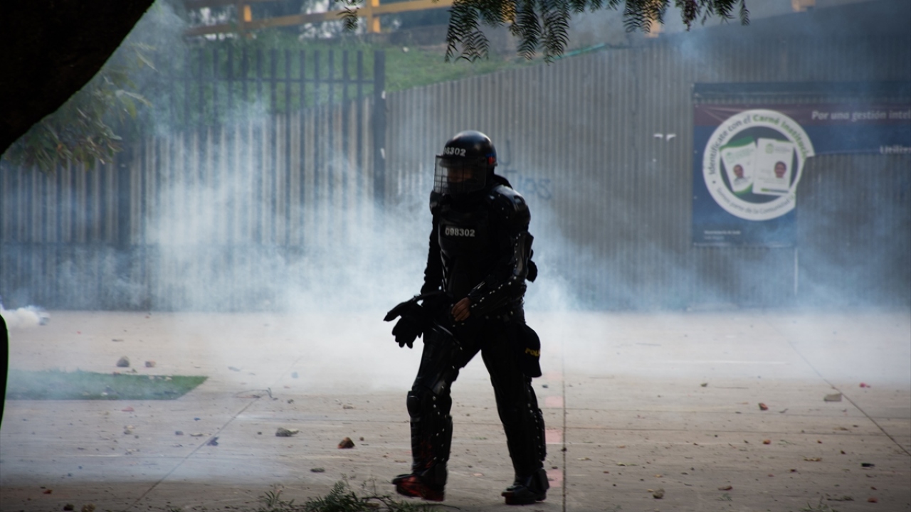 Kolombiya'da, hükümet karşıtı protestolar sırasında Bogota'daki Kolombiya Ulusal Üniversitesi'nde toplanan öğrenci grupları ve Kolombiya toplumsal olaylara müdahale birimi ESMAD polisleri arasında çatışma çıktı.