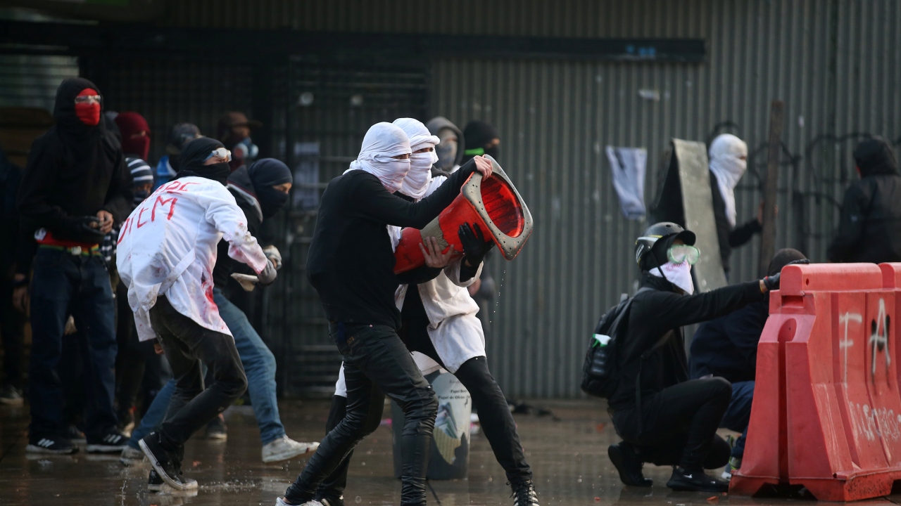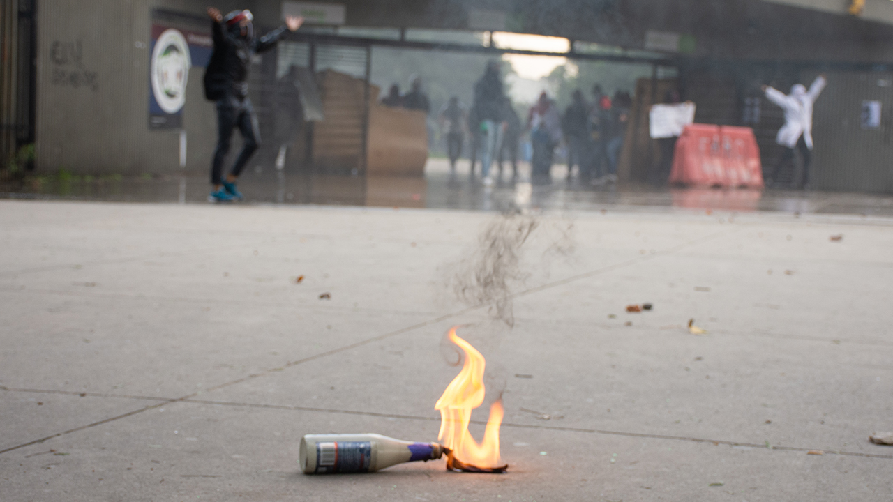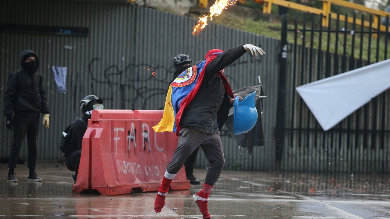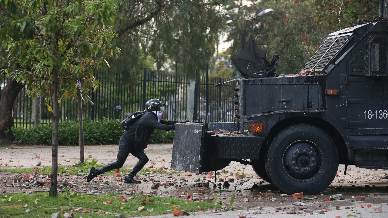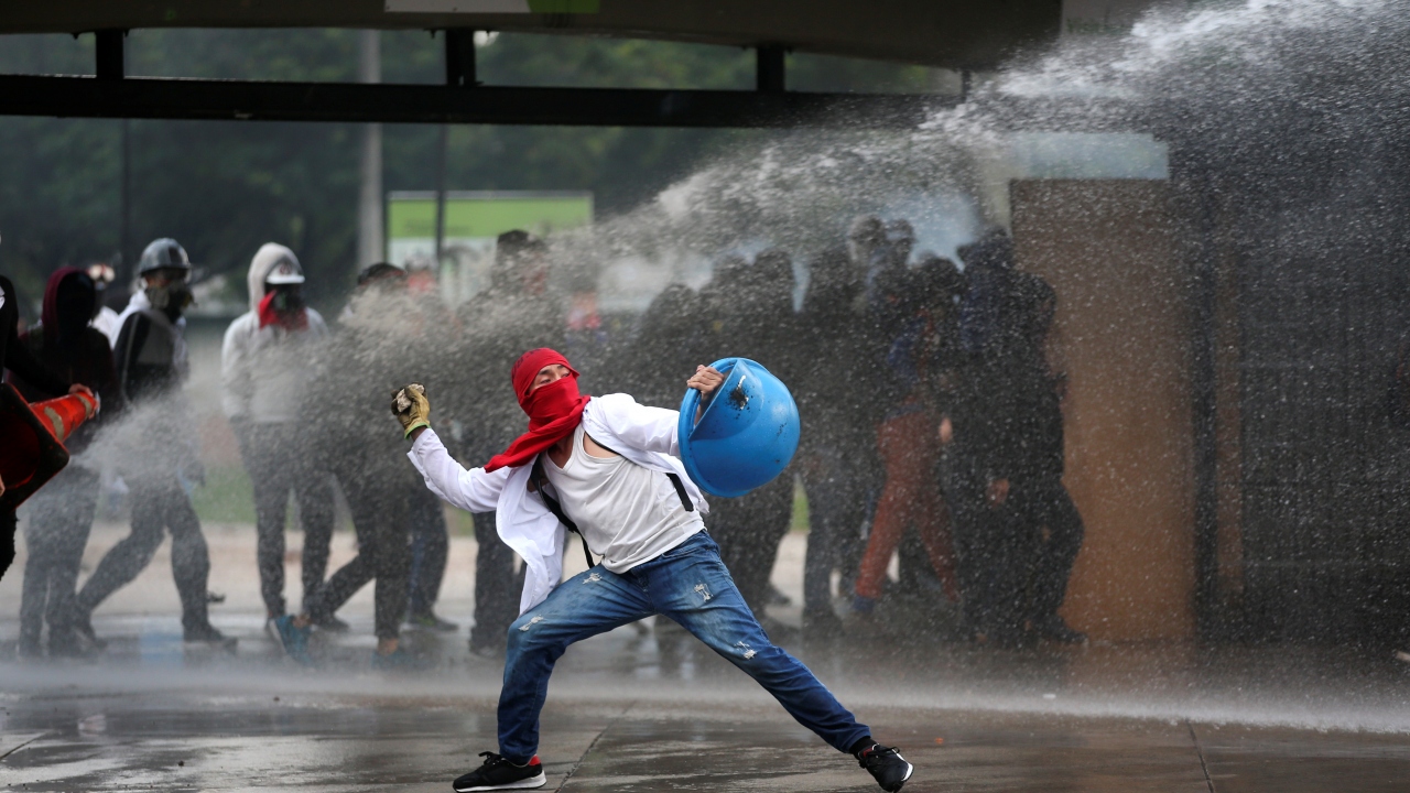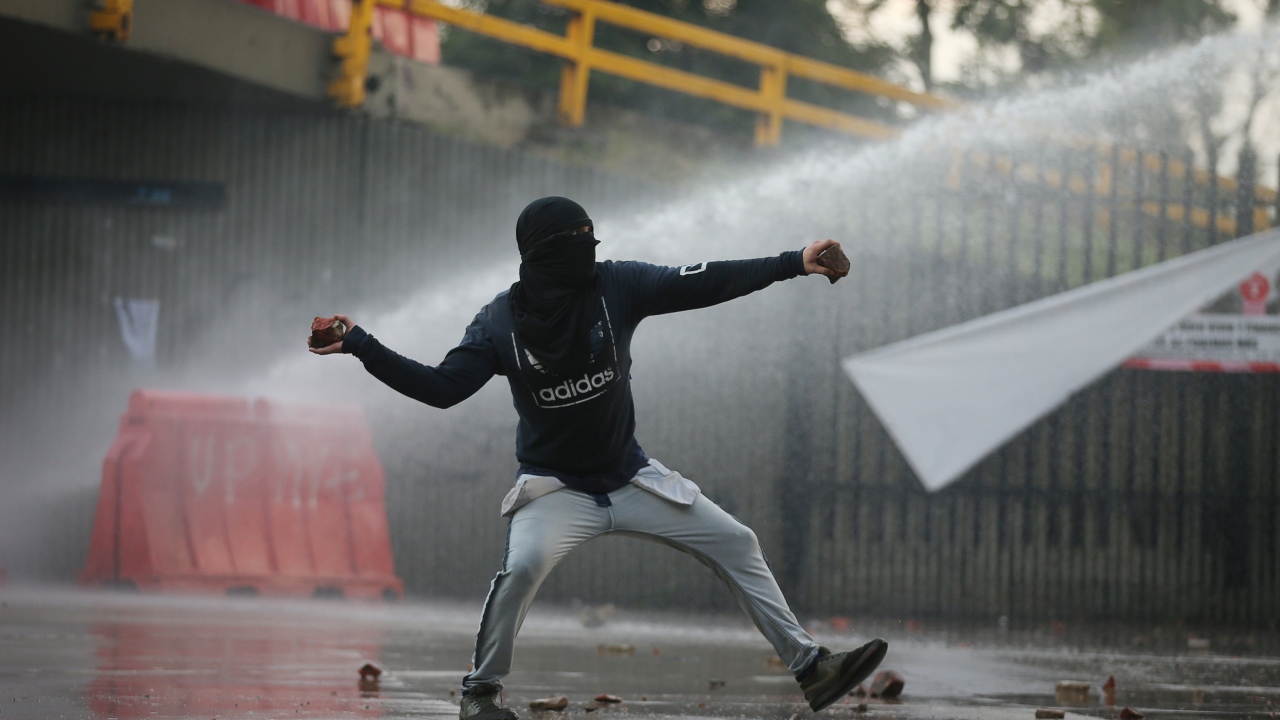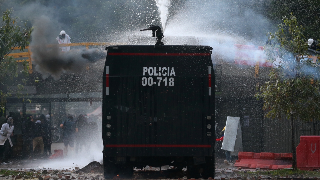 Kolombiya'da, hükümet karşıtı protestolar sırasında Bogota'daki Kolombiya Ulusal Üniversitesi'nde toplanan öğrenci grupları ve Kolombiya toplumsal olaylara müdahale birimi ESMAD polisleri arasında çatışma çıktı.