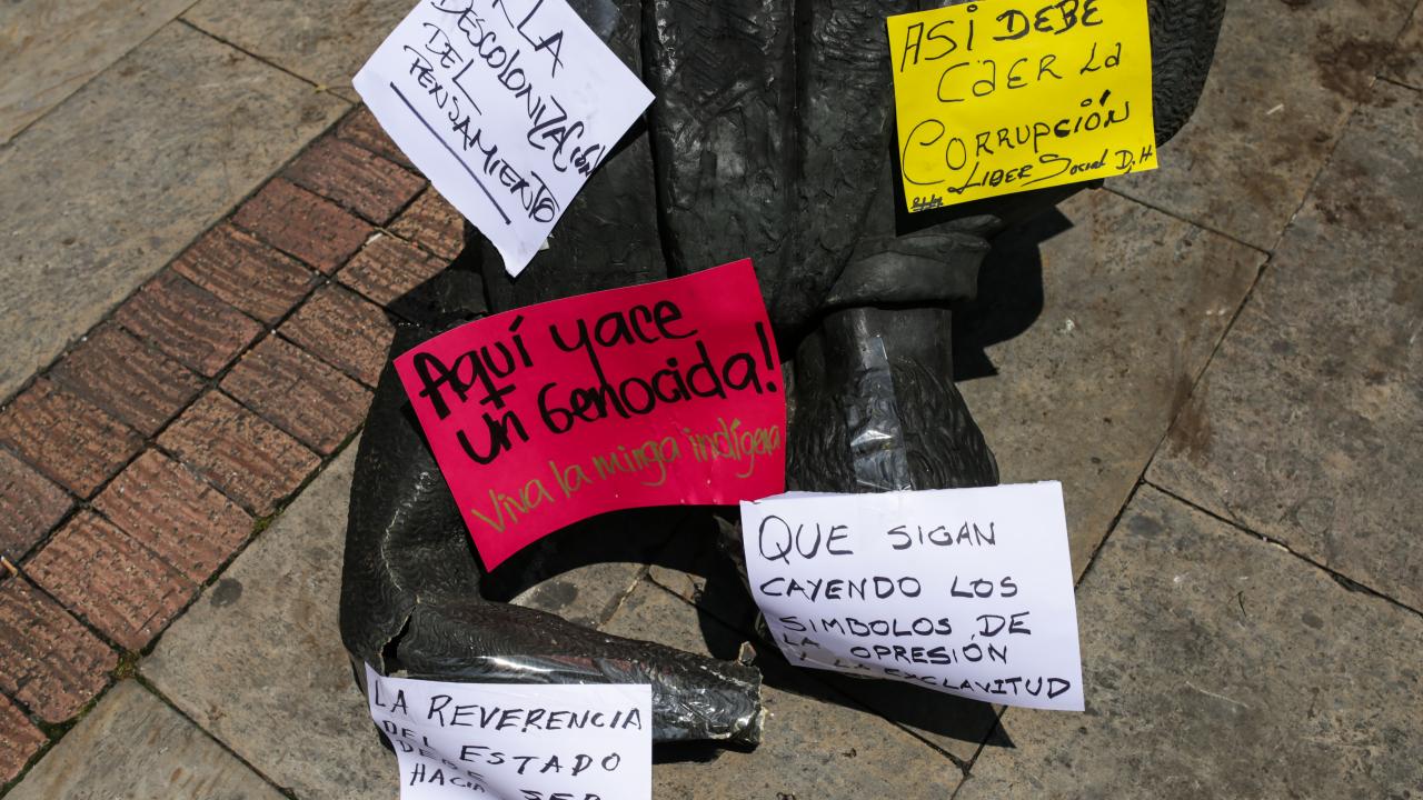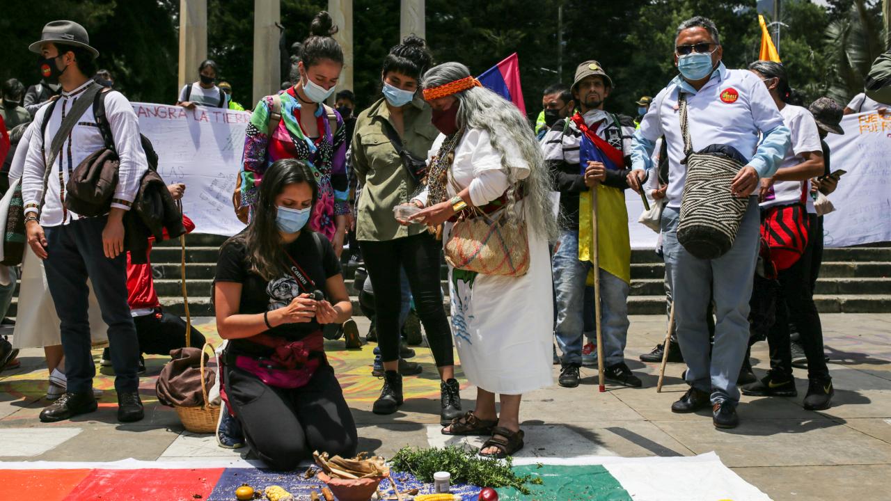 Kolombiya'da, 28 Nisan'dan bu yana hükümet karşıtı kitlesel gösteriler sürüyor. Yerli bir grup protestocunun, kentin kurucusu Gonzalo Jimenez de Quesada'nın Bogota'daki heykelini yıkmasının ardından, Misak yerlileri de kentte gösteri düzenledi.
