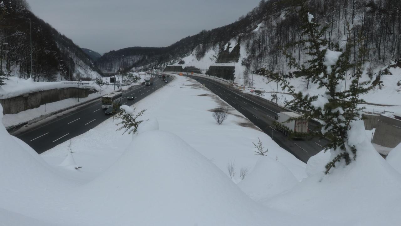 Yağışın etkili olduğu dönemde zaman zaman kapanan otoyolun sol ve sağ şeritlerinde kar birikintileri oluşması nedeniyle ulaşım bir süre 2 şeritten sağlandı.