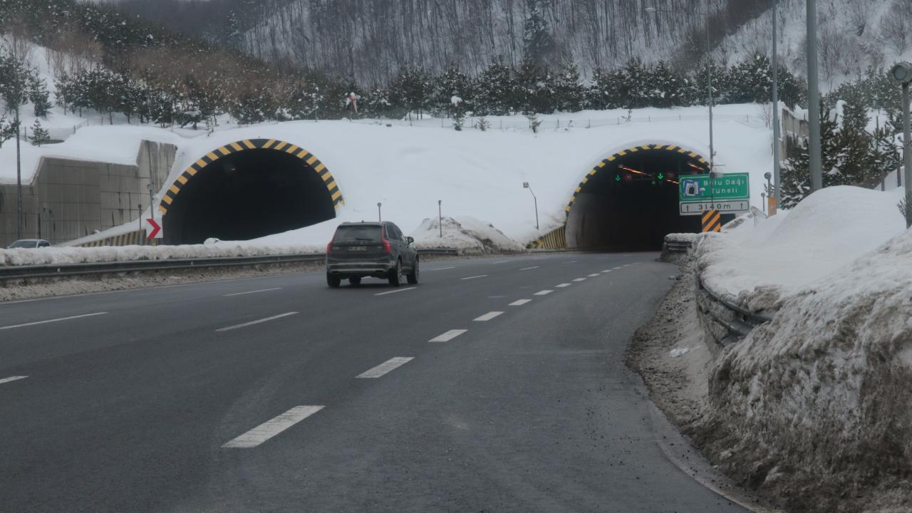 Otoyolun Bolu Dağı Tüneli ve Viyadükler kesiminde yoğun yağışın ardından kar kalınlığı yer yer 120 santimetreye ulaştı.