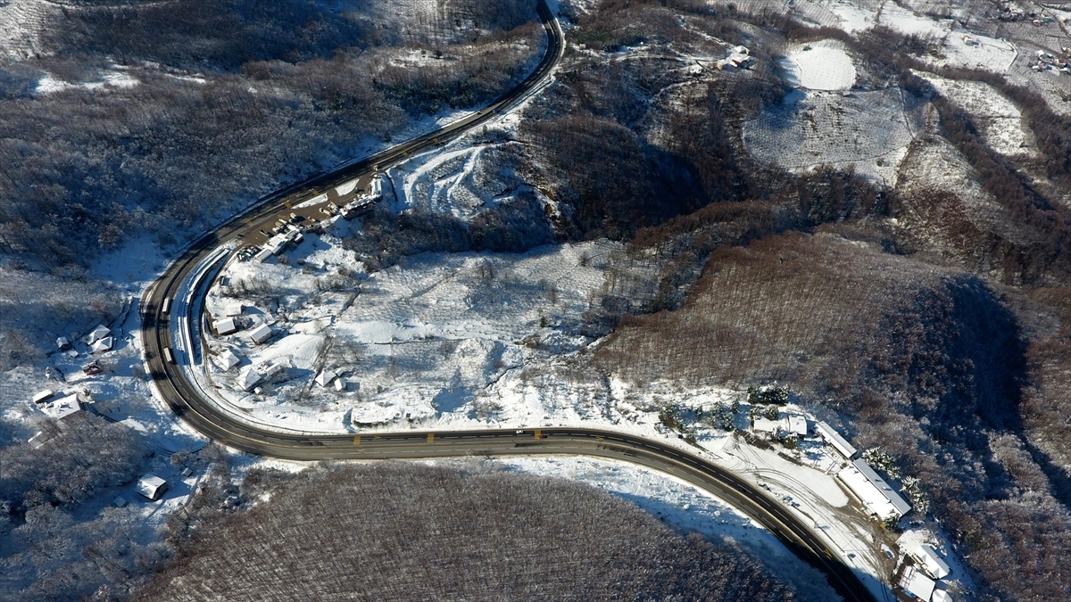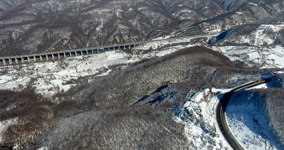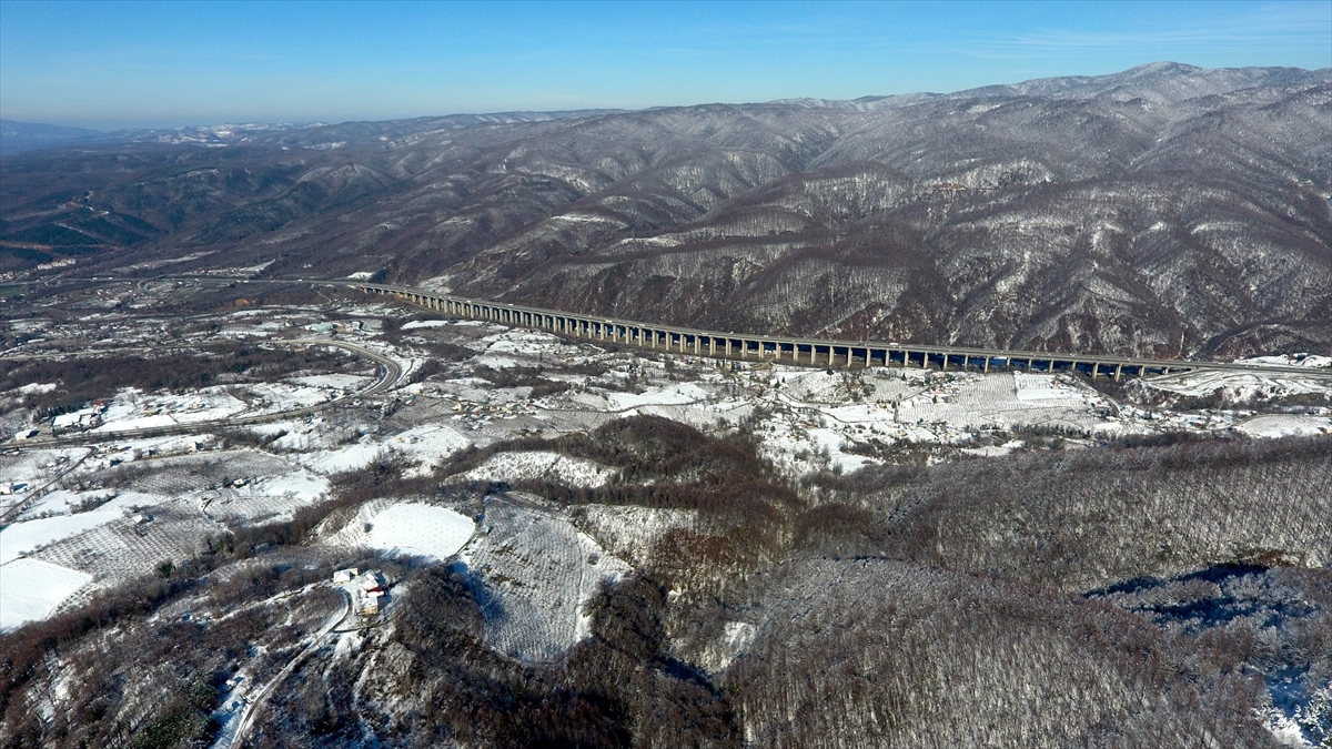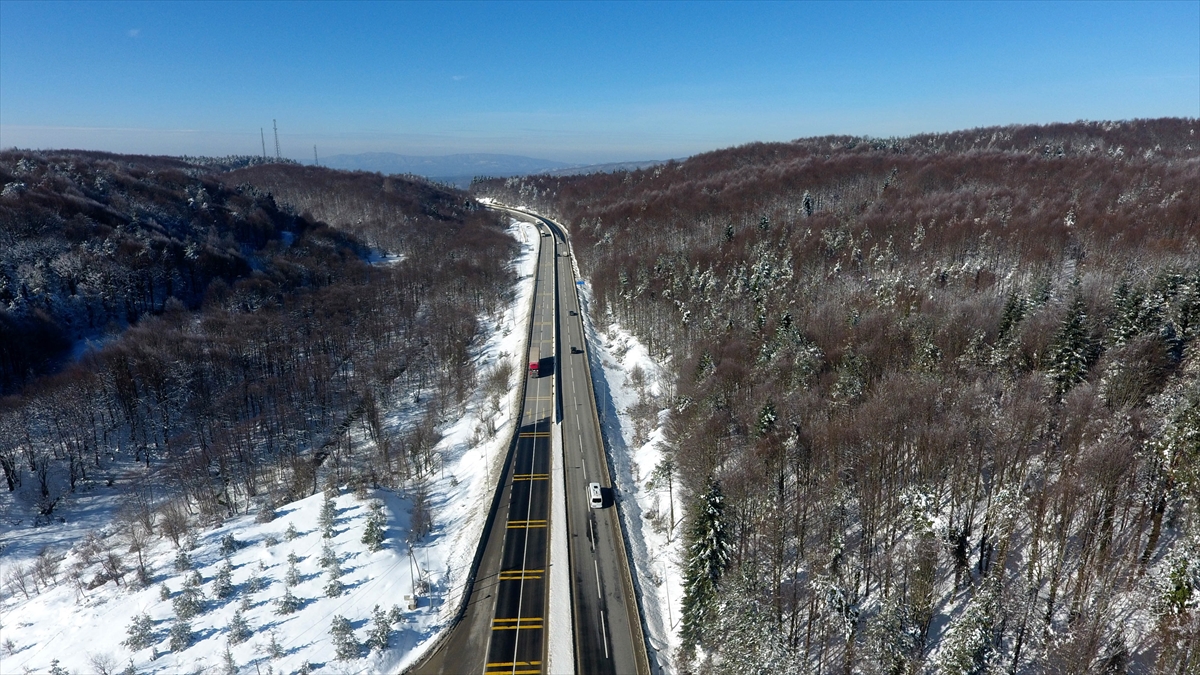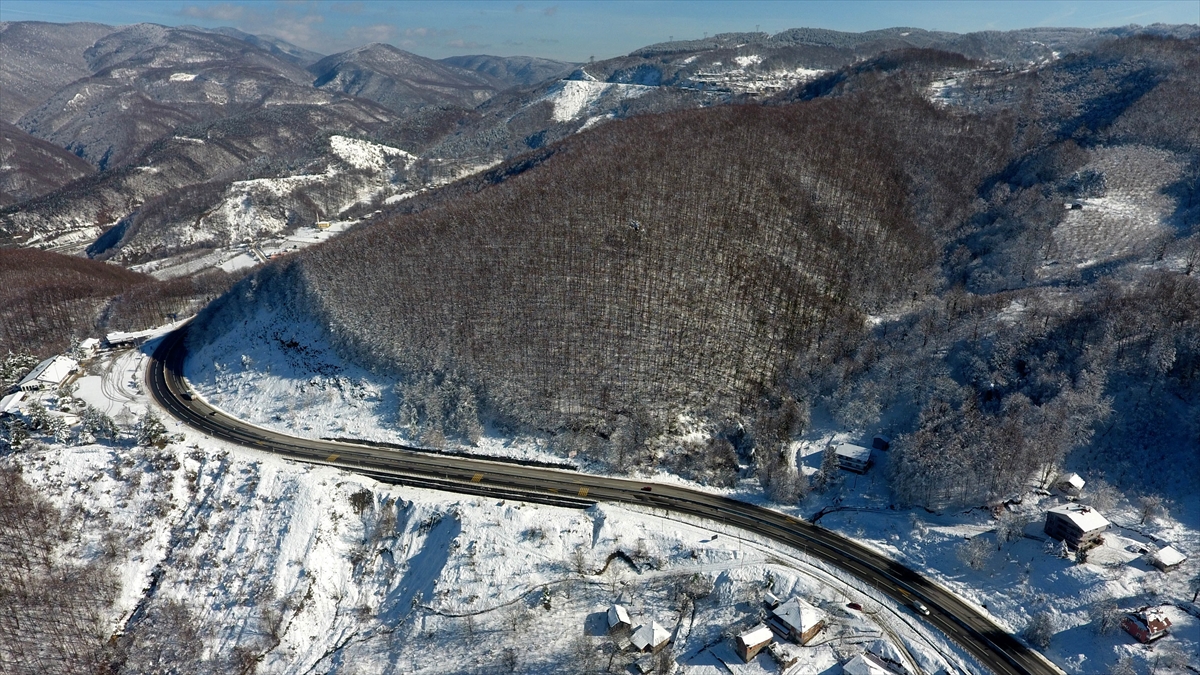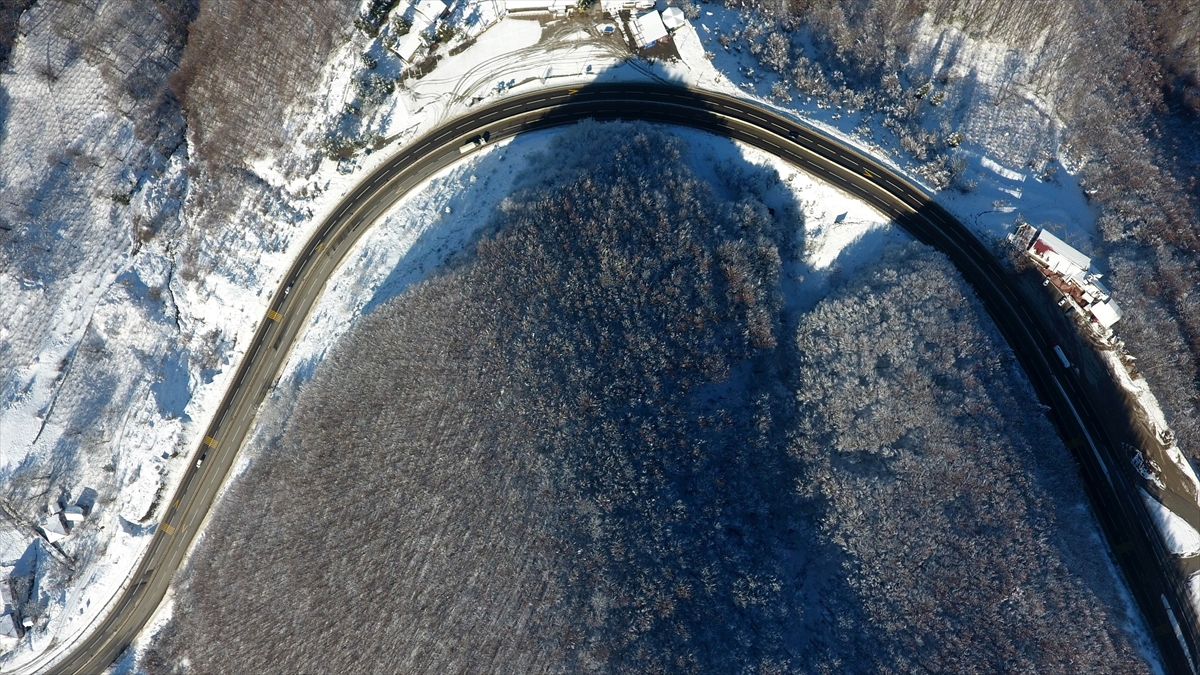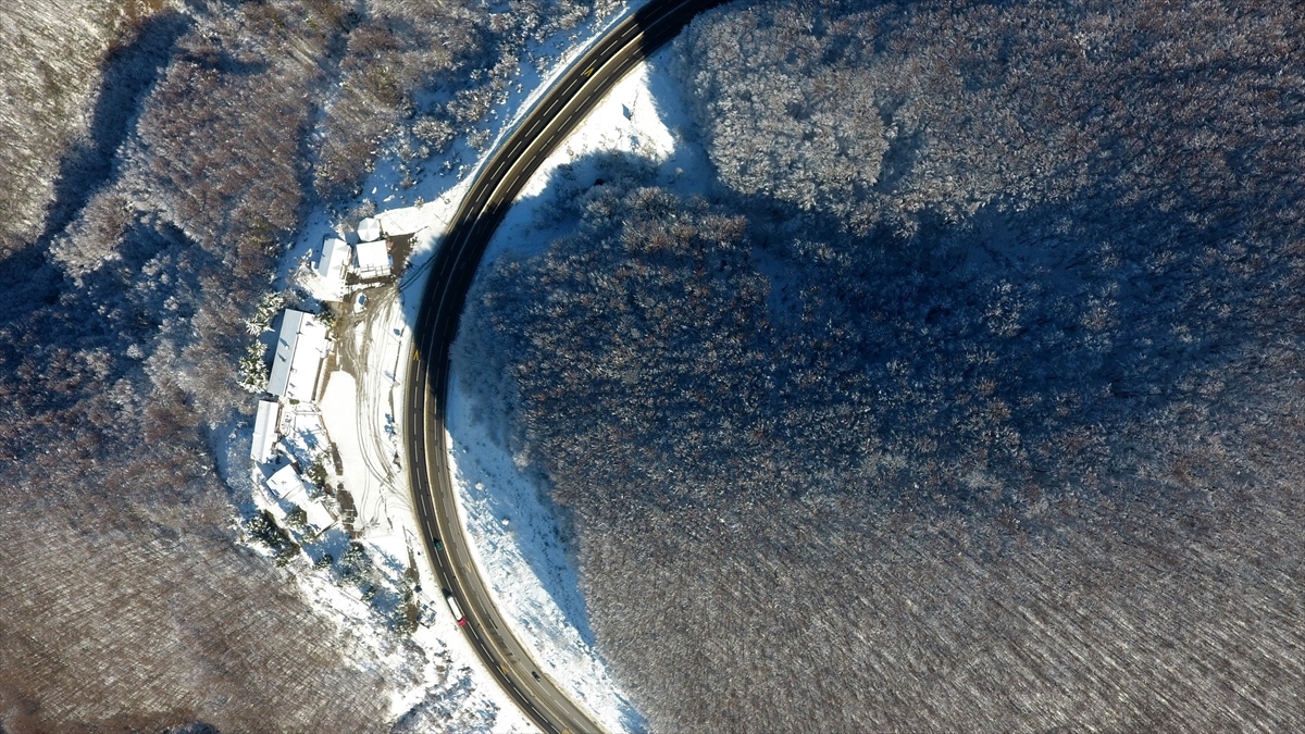Kar yağışının ardından beyaz örtüyle kaplanan Bolu Dağı drone ile görüntülendi.