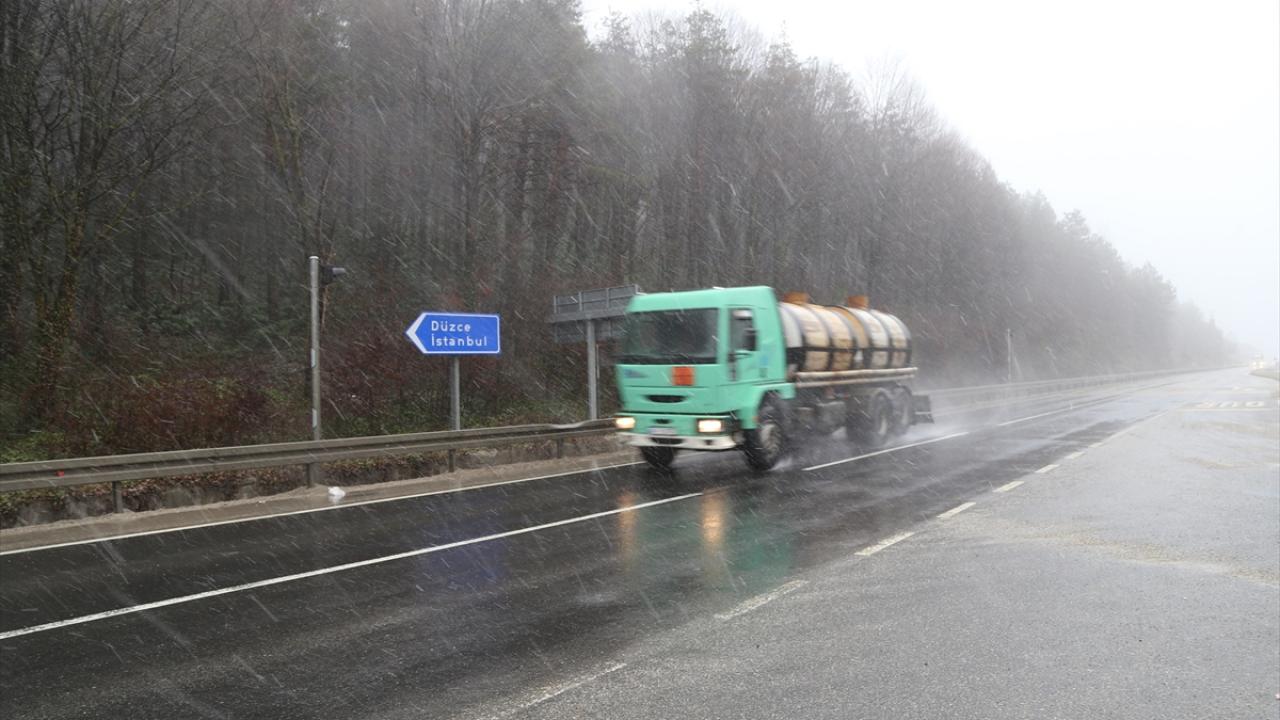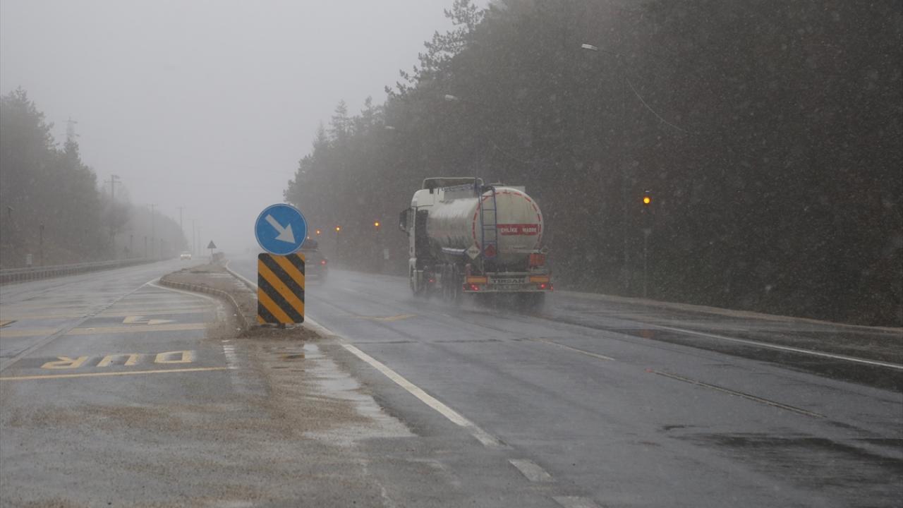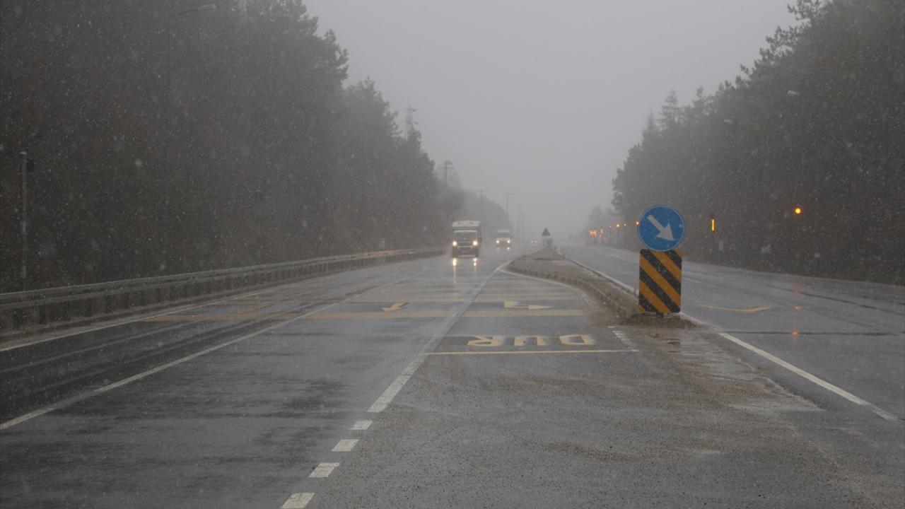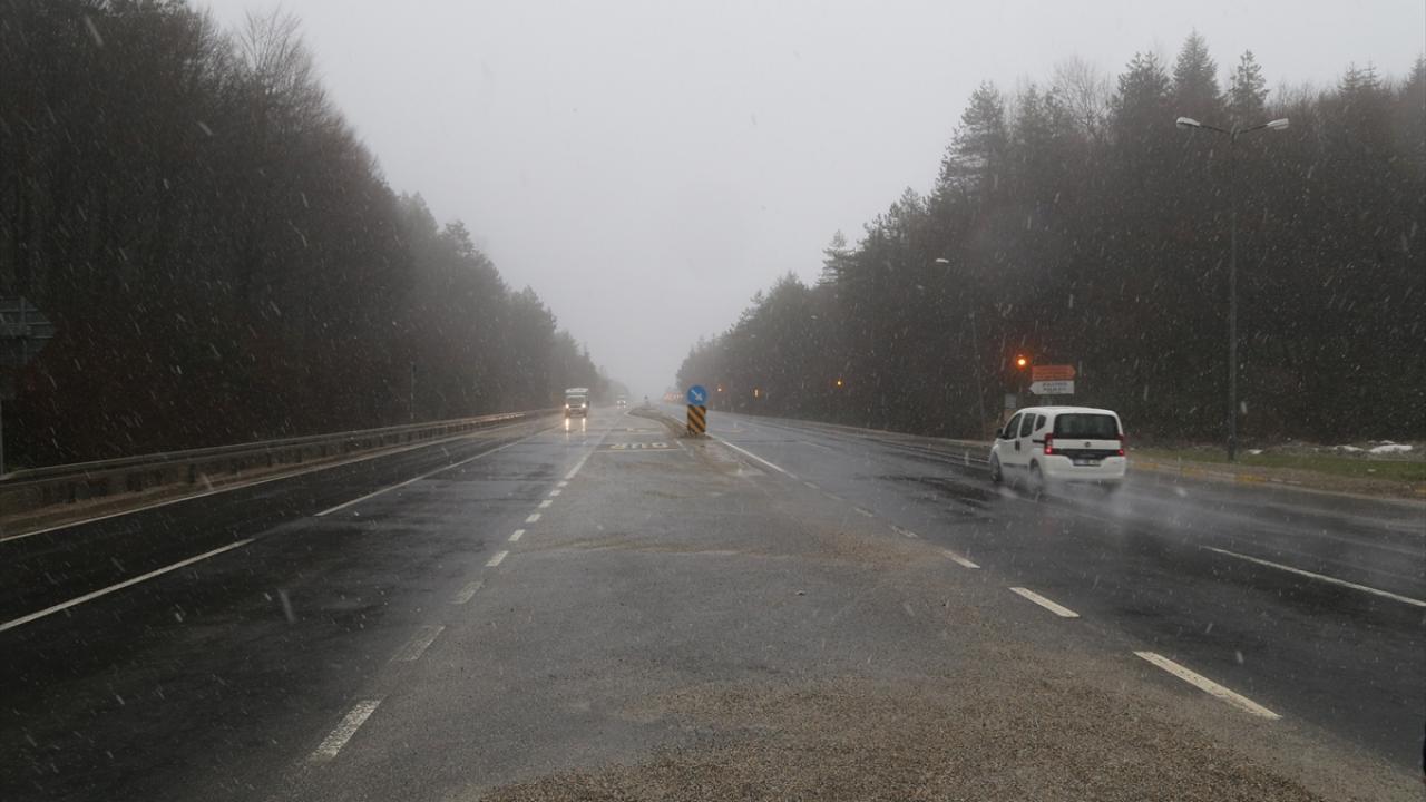 D-100 kara yolunun Bolu Dağı kesiminde kar yağışı etkili oluyor.