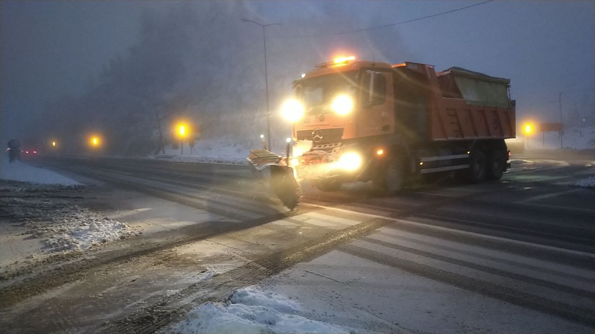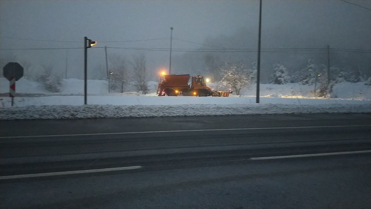Kara yolları ekipleri, yolun açık tutulması için bölgede kar küreme ve tuzlama çalışmalarını sürdürüyor.