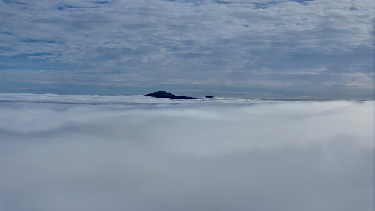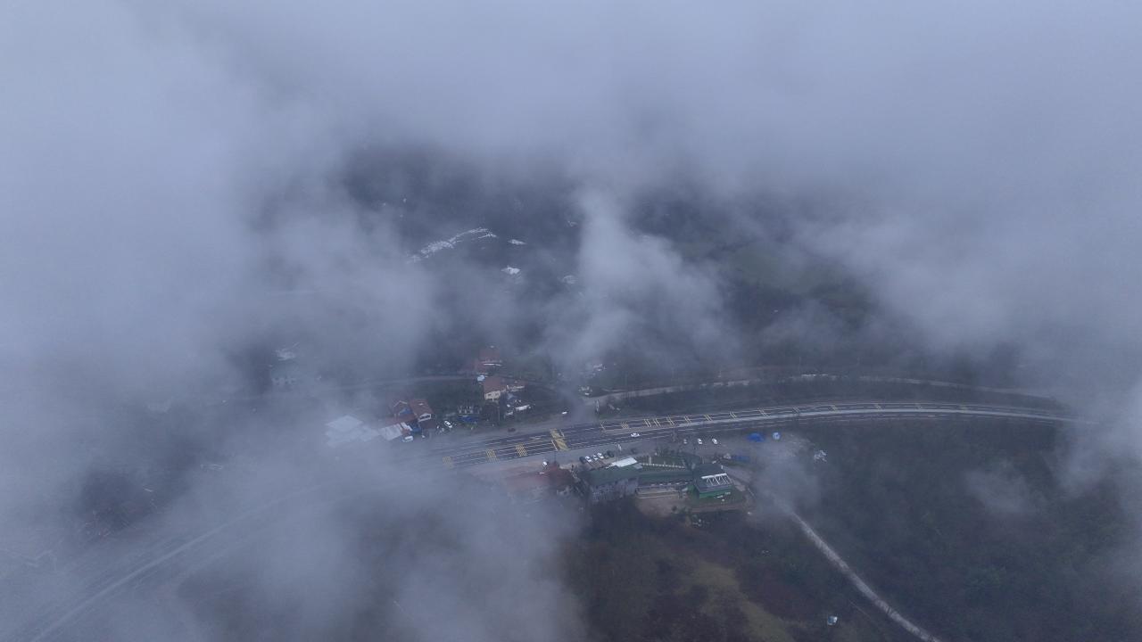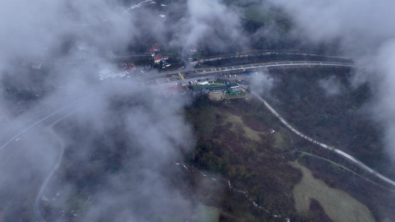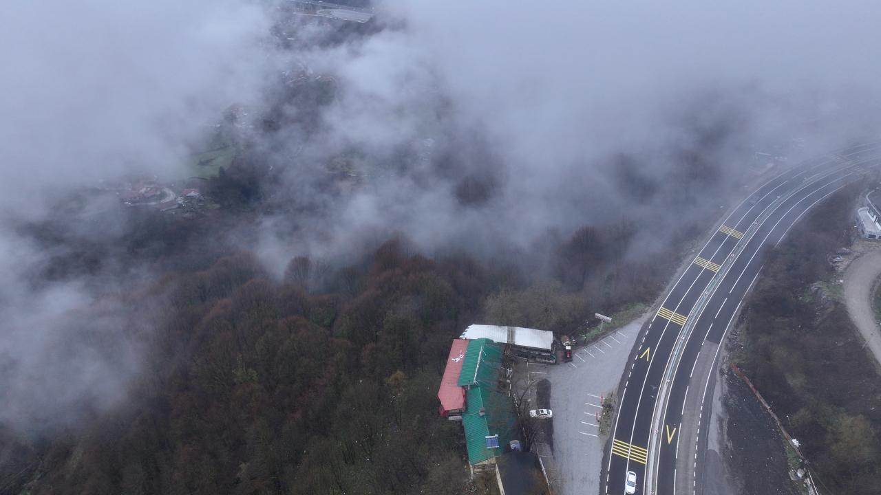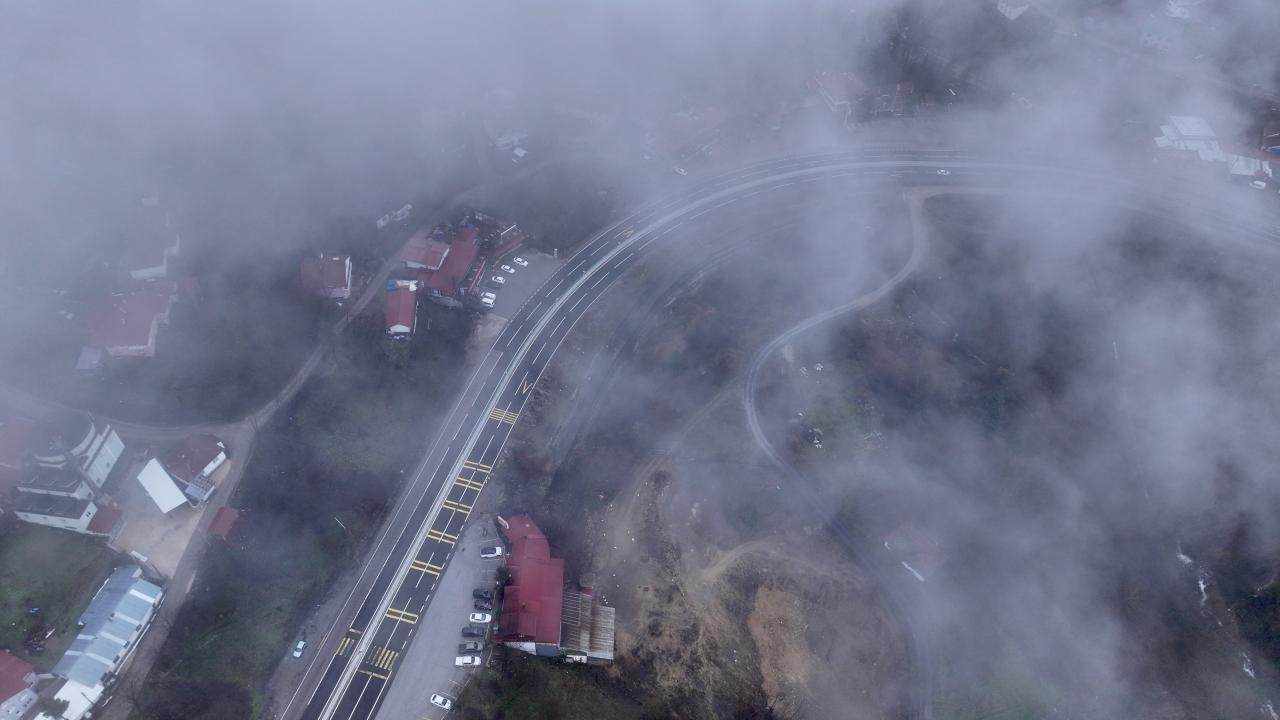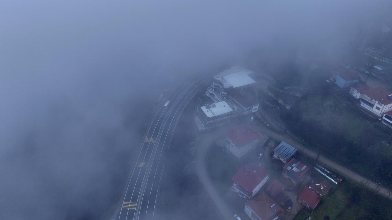 Bölgede etkili olan sis havadan görüntülendi.