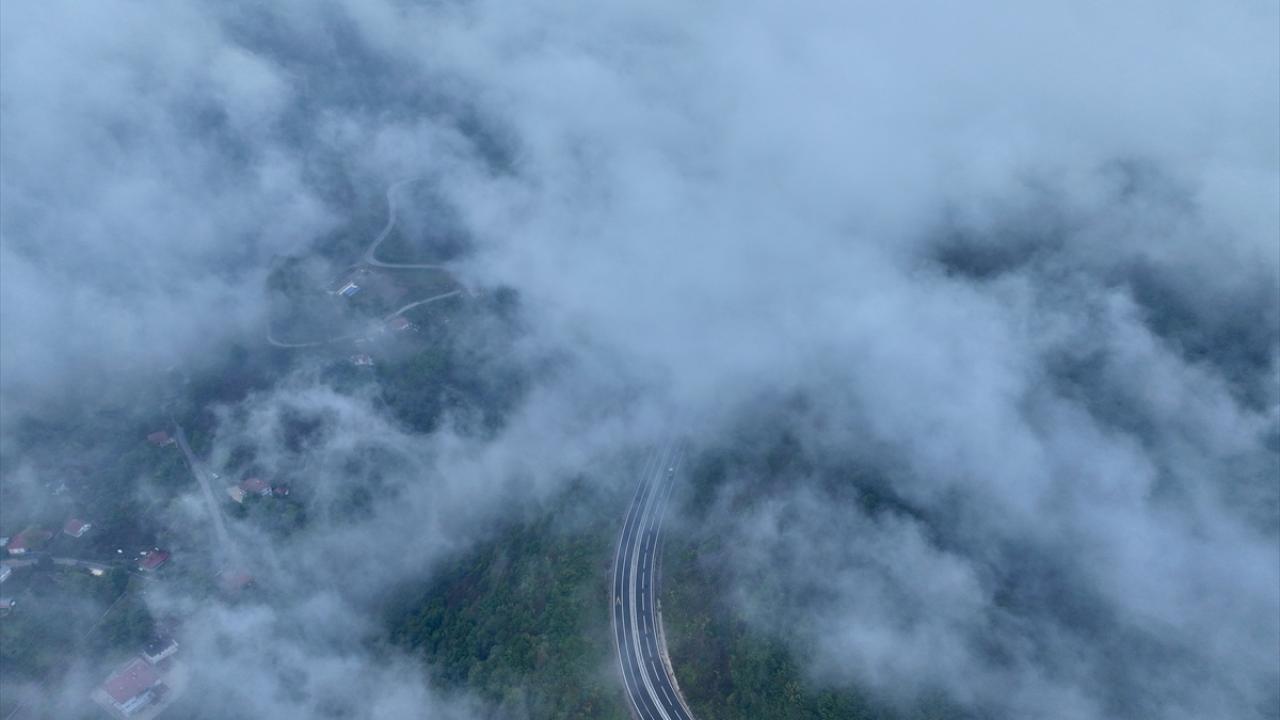 Görüş mesafesinin sis nedeniyle yer yer 35 metreye kadar düşen güzergahı kullanan sürücüler, yolda dikkatli ilerledi.