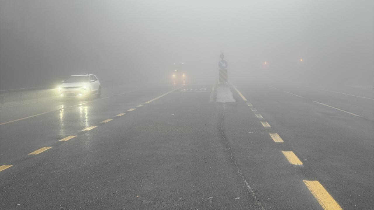 Görüş mesafesinin azaldığı bölgede sürücüler, yolda dikkatli ilerledi.