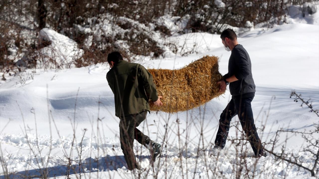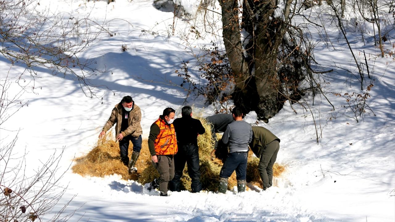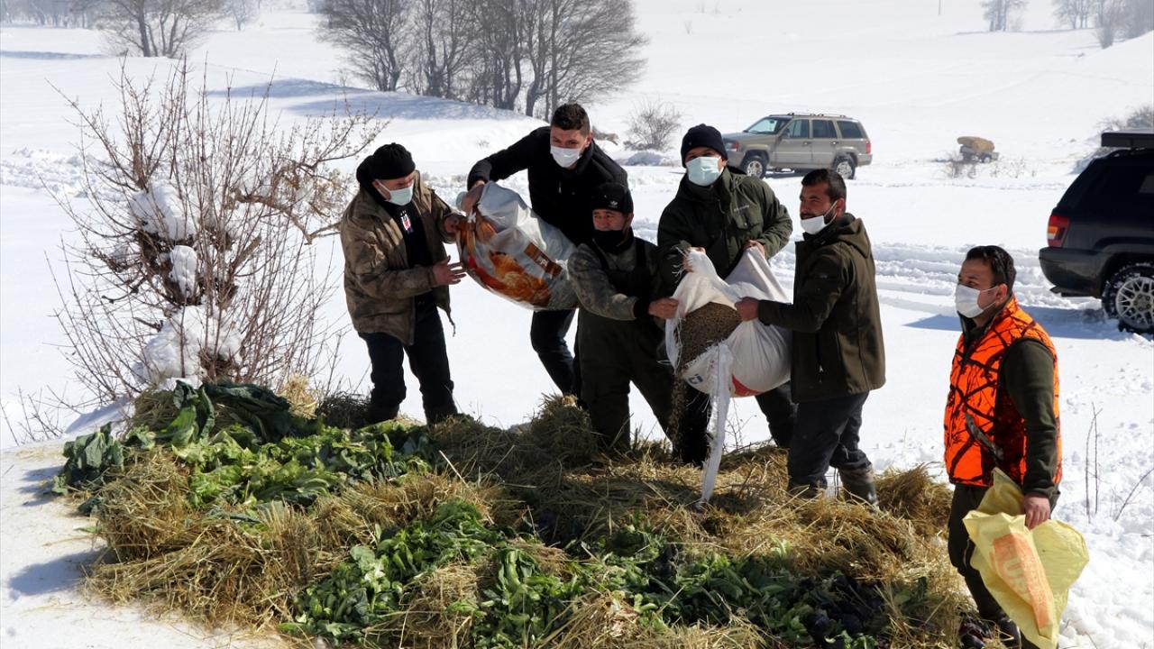 Rüzgar, 250 kilogram besi yemi ve 15 çuval yulaf aldıklarını belirterek, "Ayrıca pazar atığı olarak turp, marul ve havuç getirdik. Köpek ve kedilerimiz için de belirlediğimiz noktalara mama bıraktık." dedi.