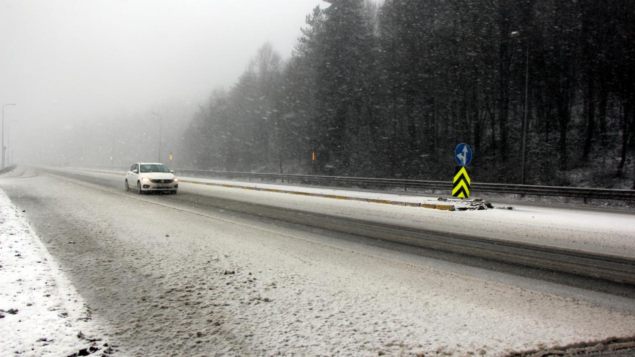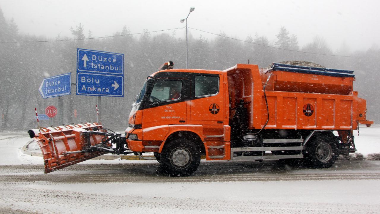Bolu Dağı'nın D-100 karayolu geçişinde etkili olan yoğun kar yağışı ulaşımı aksattı.