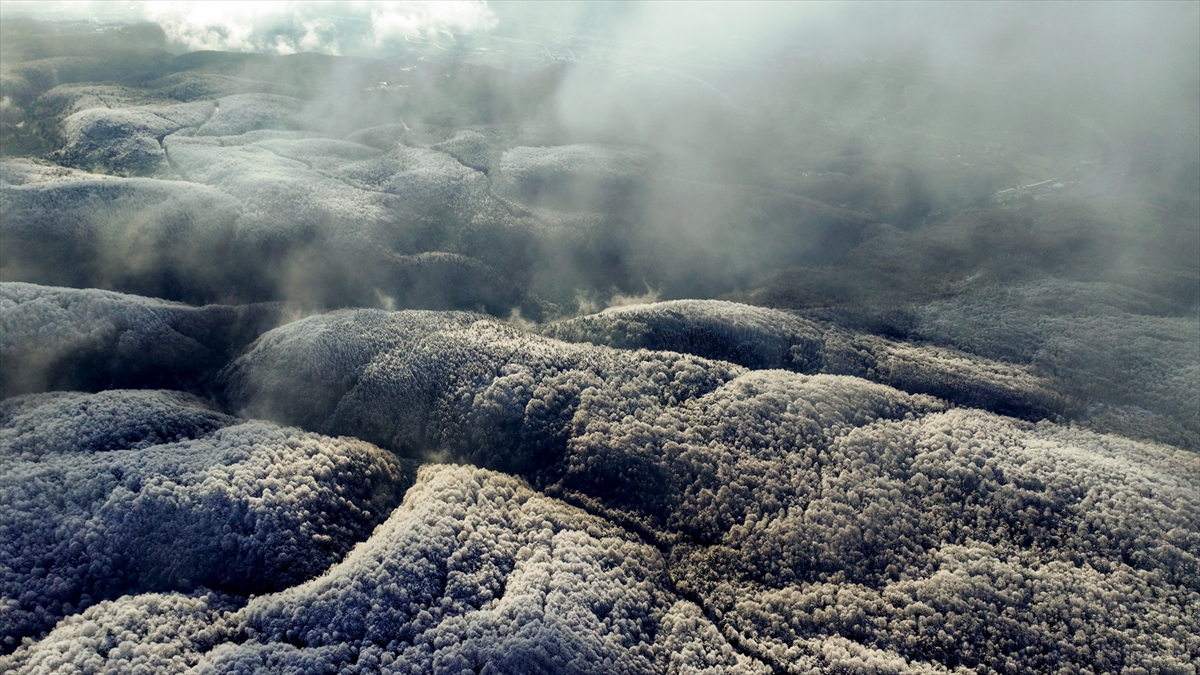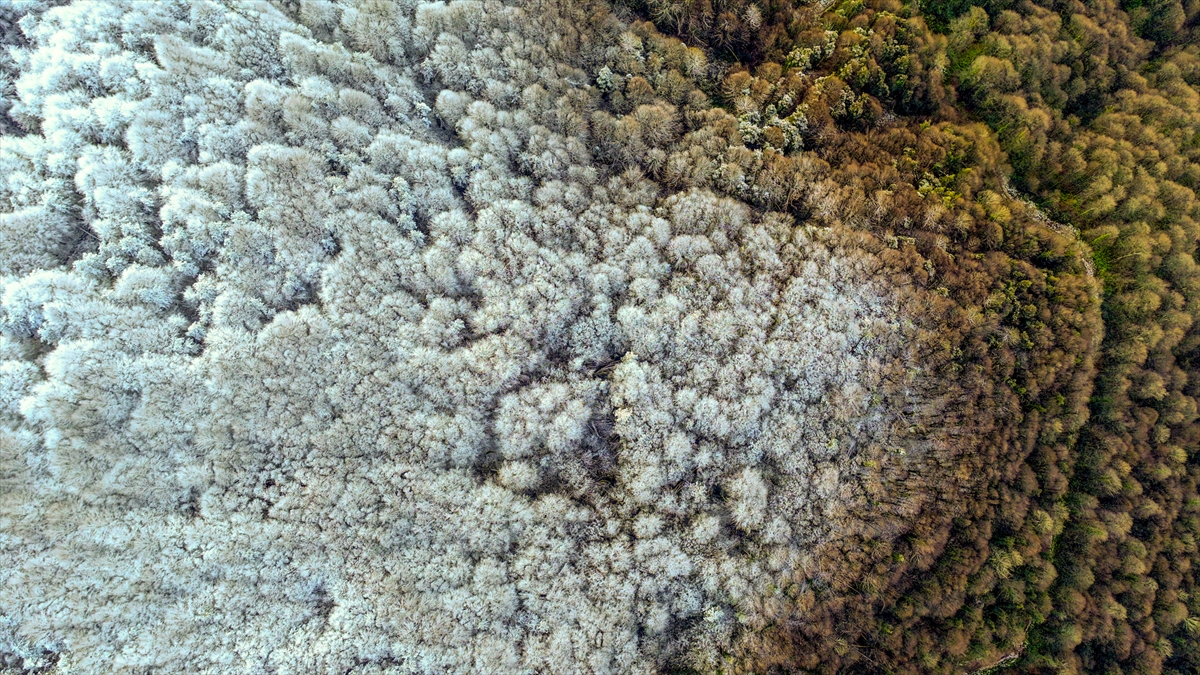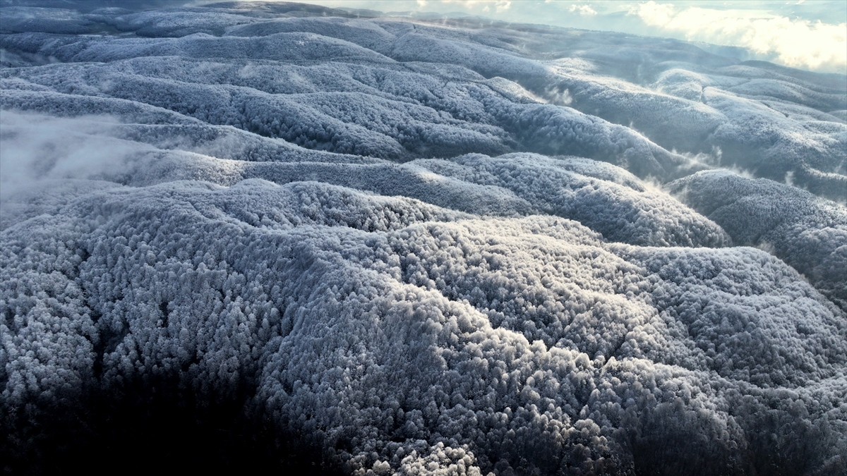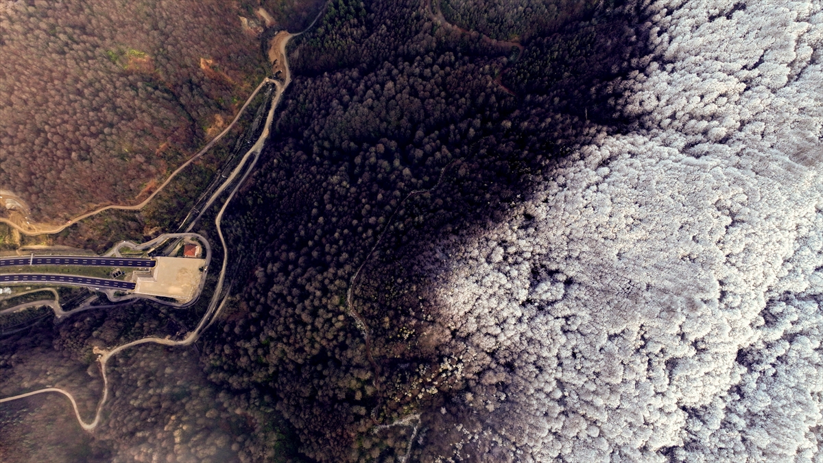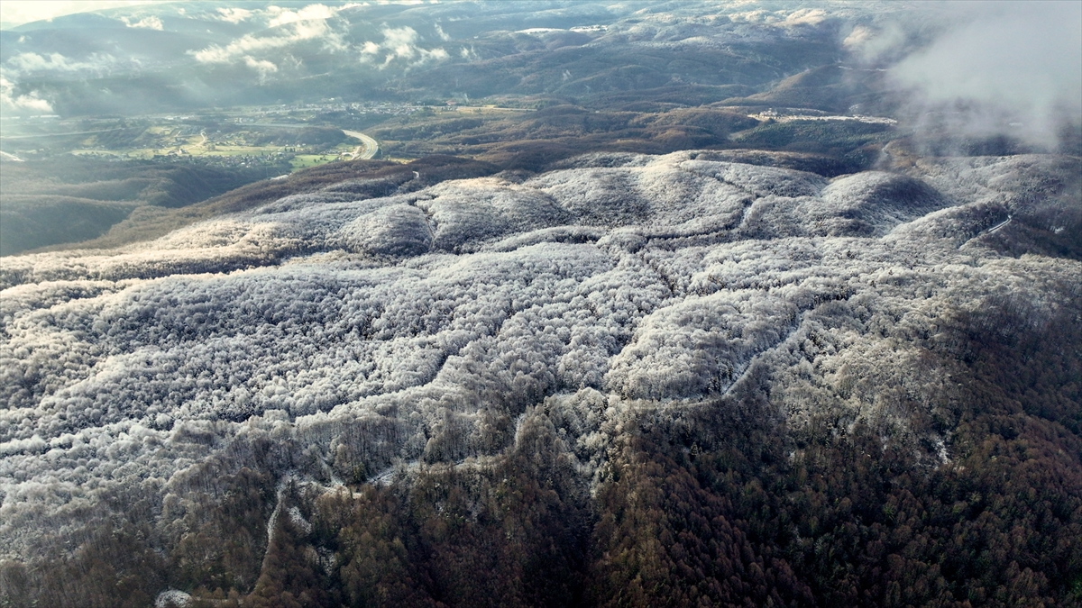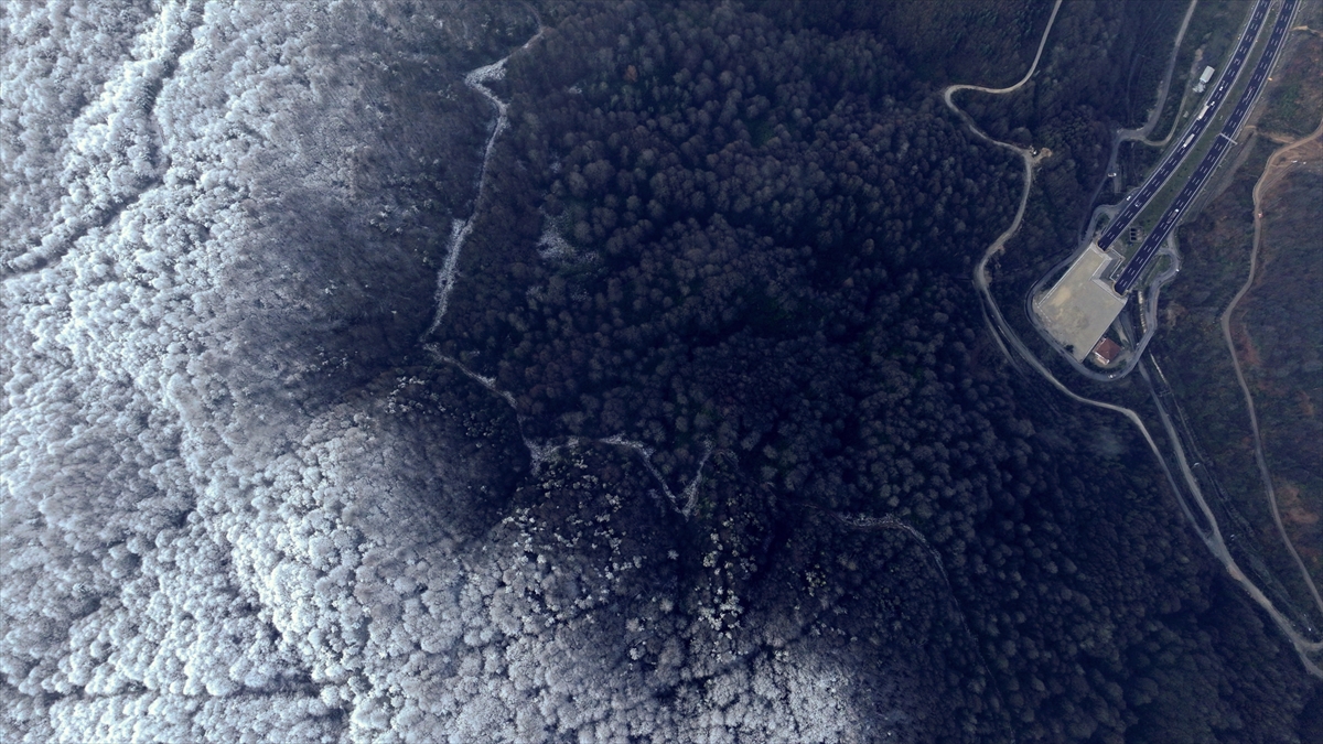 Bolu Dağı'nın Anadolu Otoyolu Tünel geçişinin yüksek kesimlerinde etkili olan kar yağışı, drone ile görüntülendi.