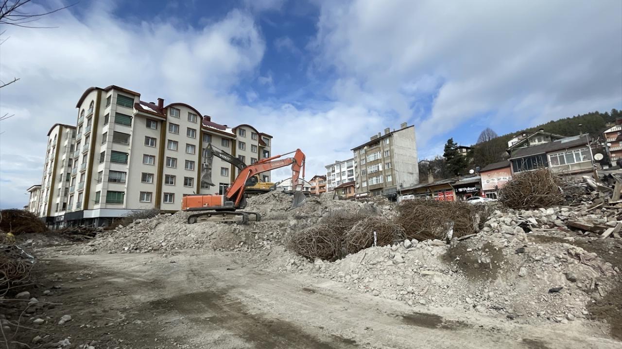 Bolu'nun Gerede ilçesinde hayata geçirilen kentsel dönüşüm projesi kapsamında fay hattı üzerinde yer aldığı tespit edilen yapıların yıkımları gerçekleştiriliyor.