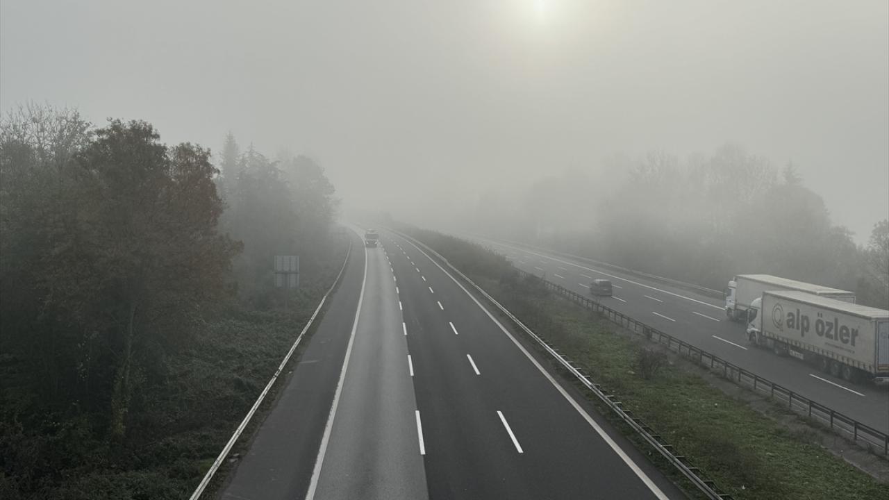 Otoyolun Düzce gişeleri mevkisinde sis, ulaşımı olumsuz etkiledi.