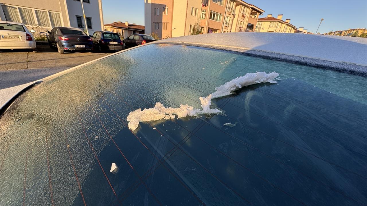 Sabah saatlerinde 1 dereceye kadar düşen hava sıcaklığı sebebiyle açık alanda park edilen bazı araçların camları buz tuttu.