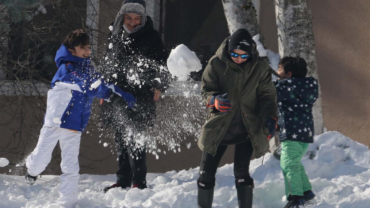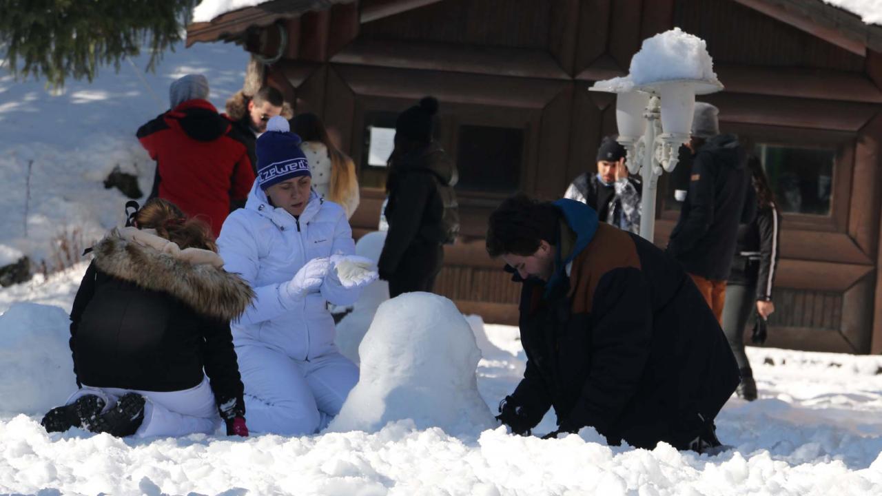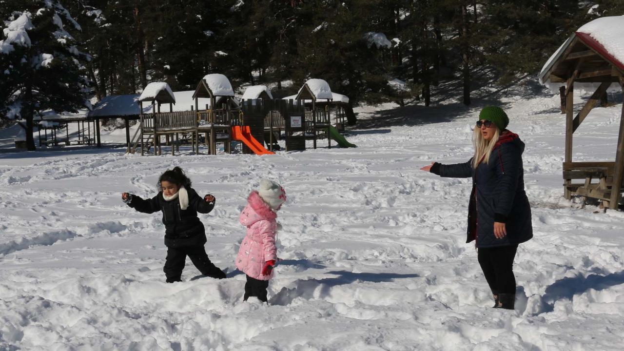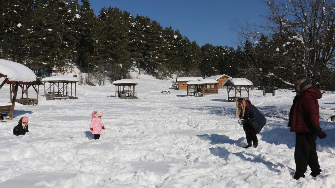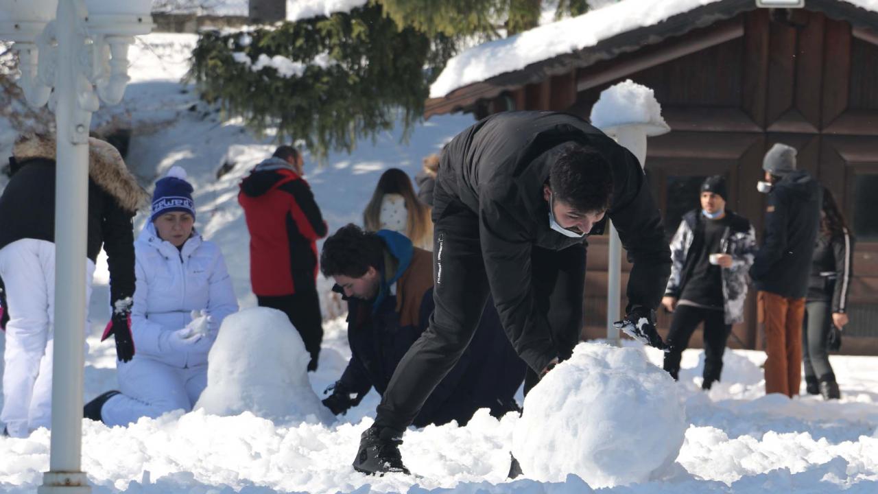 Otellerde konaklayan vatandaşların bazıları, otellerin yakınlarındaki alanlarda yürüyüş yaparken bazıları ise kar kalınlığının yer yer 30 santimetre olduğu tabiat parkında kar topu oynadı.