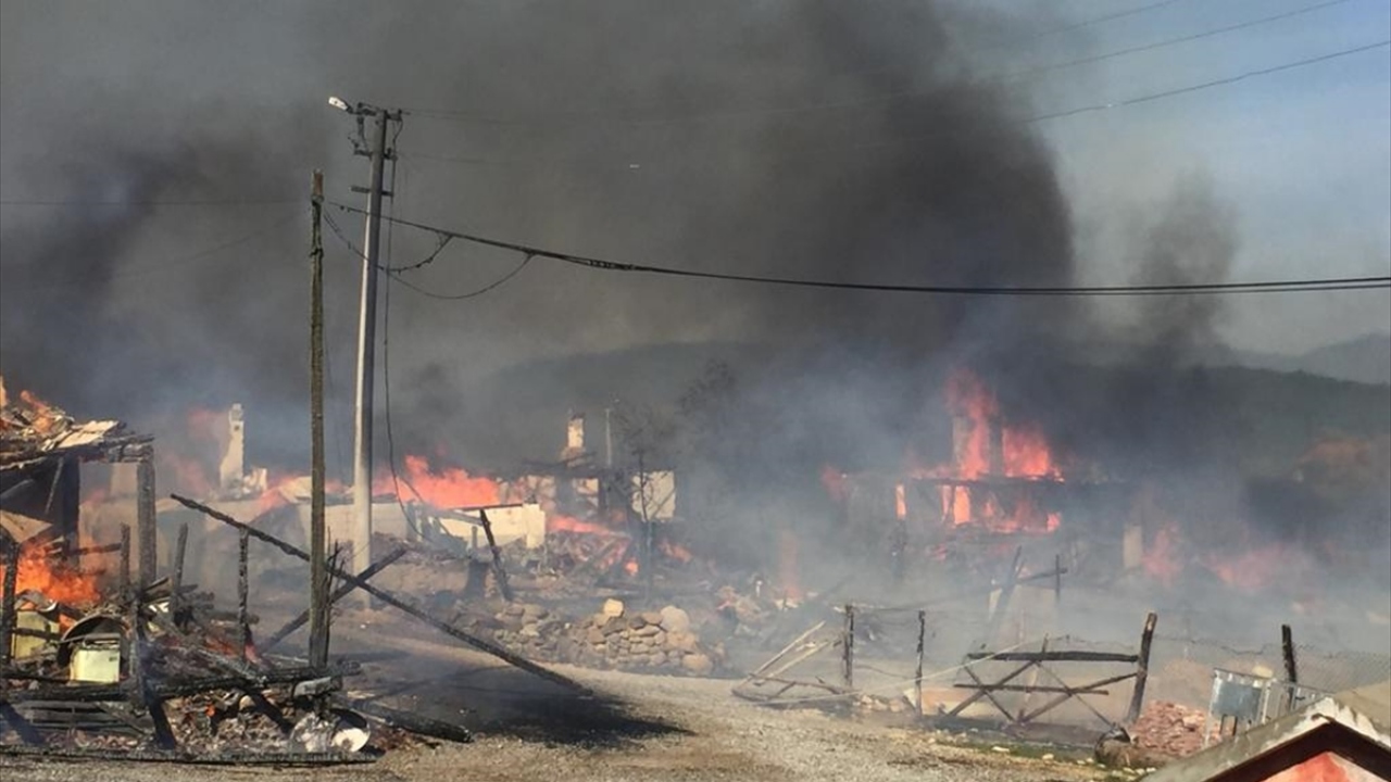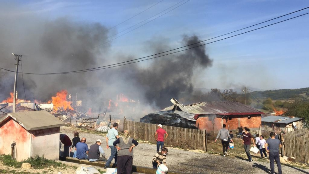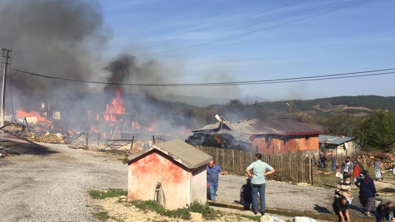 Bolu'da merkeze bağlı Kuzfındık köyünde bir evde çıkan ve çevredeki evlere sıçrayan yangına müdahale ediliyor.
