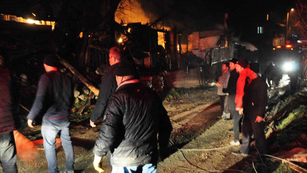 Bolu'nun Mudurnu ilçesinde çıkan yangında iki katlı ahşap ev, samanlık, ahır ve kümes kullanılamaz hale geldi.