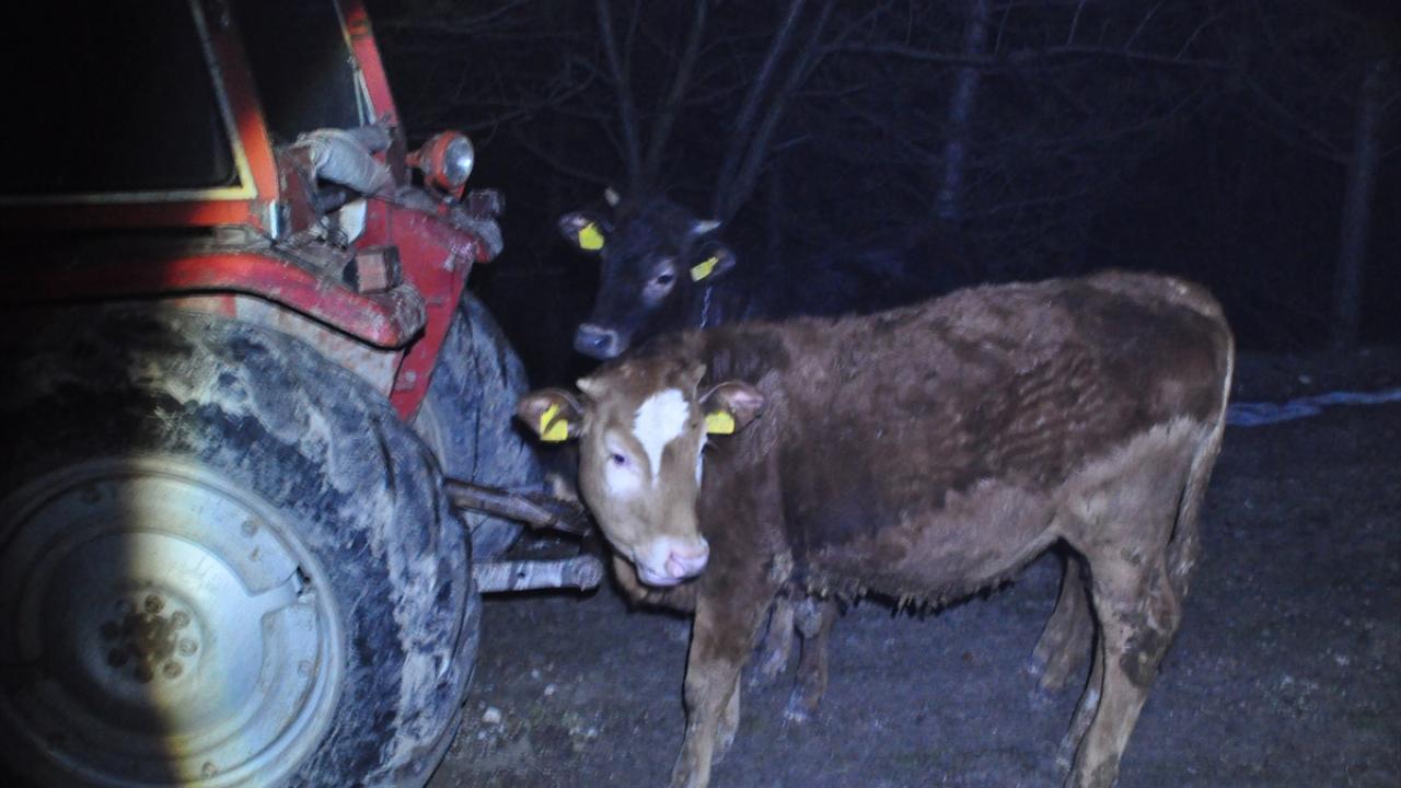 Ahırdaki 30 büyükbaş hayvan köylülerin yardımıyla yanmaktan son anda kurtarılırken, evin yakınındaki traktör de bölgeden uzaklaştırıldı.