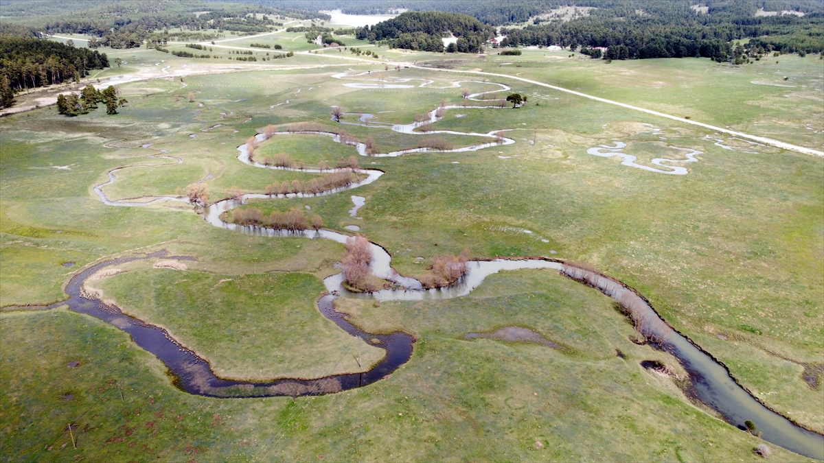 Yaylalarda oluşan çiçek bahçeleri ve menderesler drone ile havadan görüntülendi.