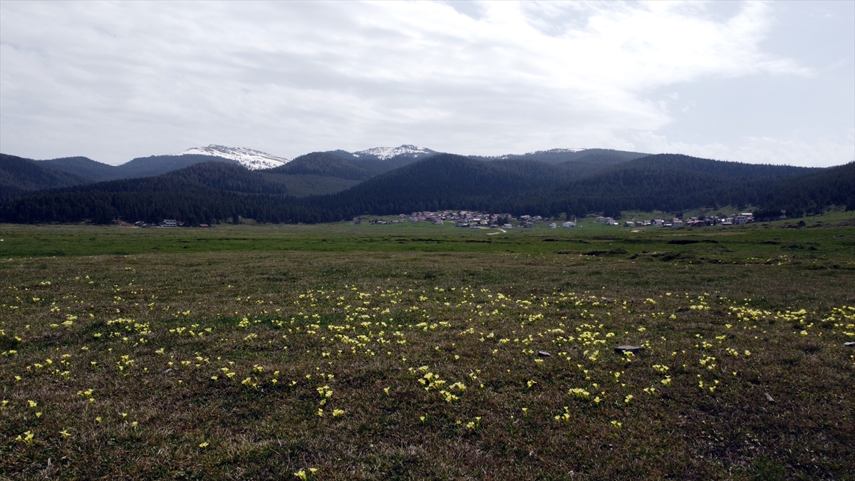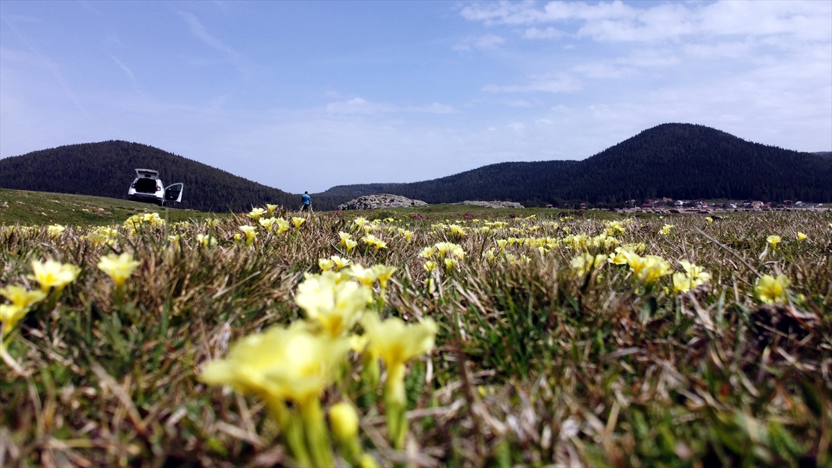 Bolu'da Köroğlu Dağları'nın zirvesindeki Kartalkaya'nın yüksek kesimleri karla kaplıyken, tabiat parkları, milli parklar ve yaylalarda baharın müjdecisi çiçekler açtı.