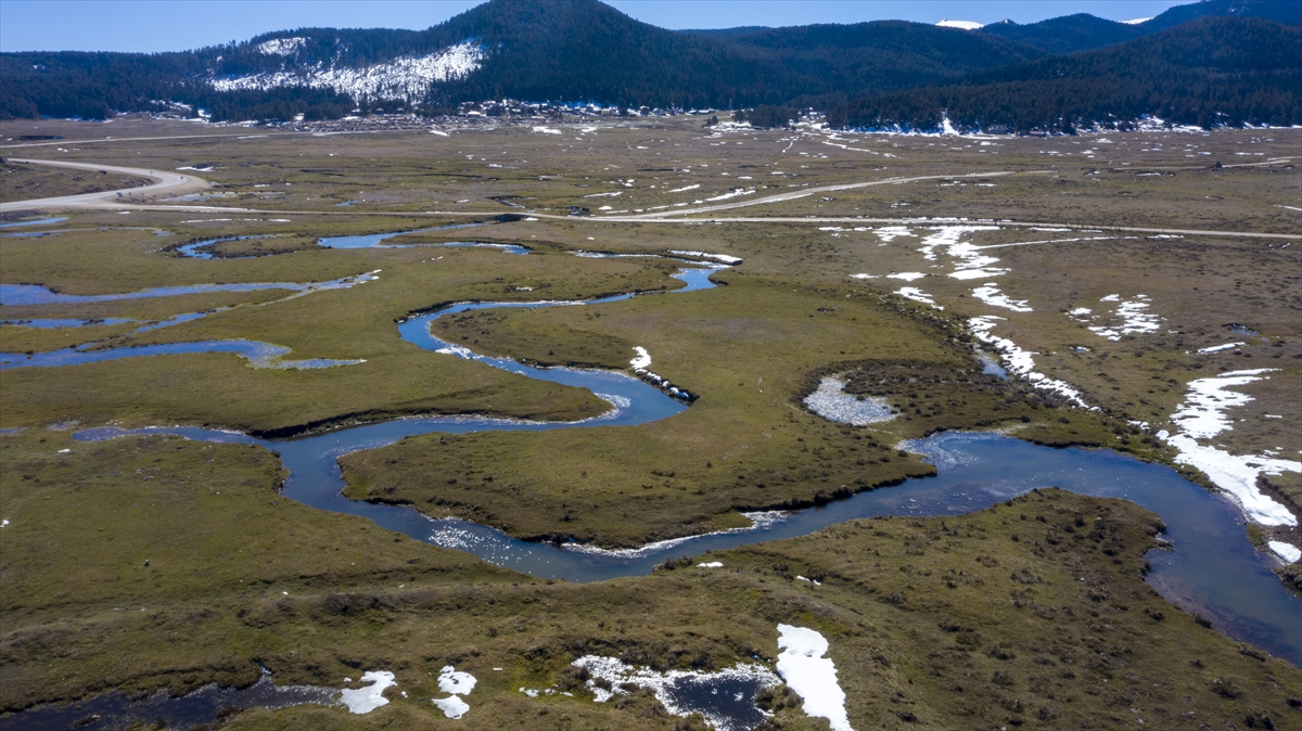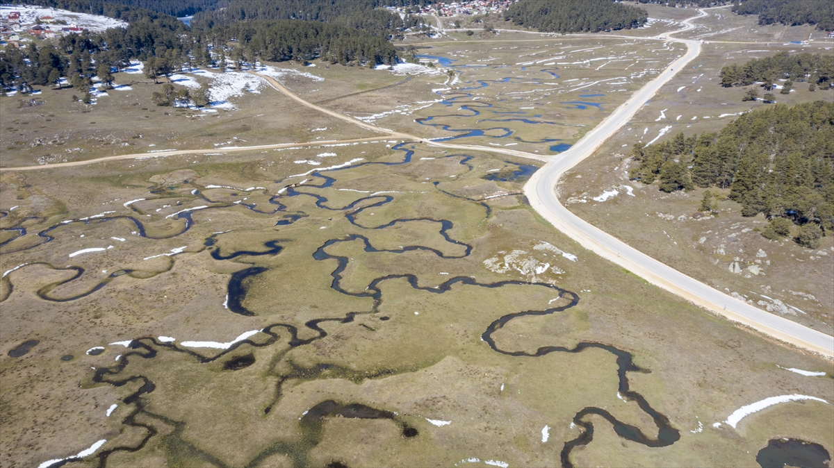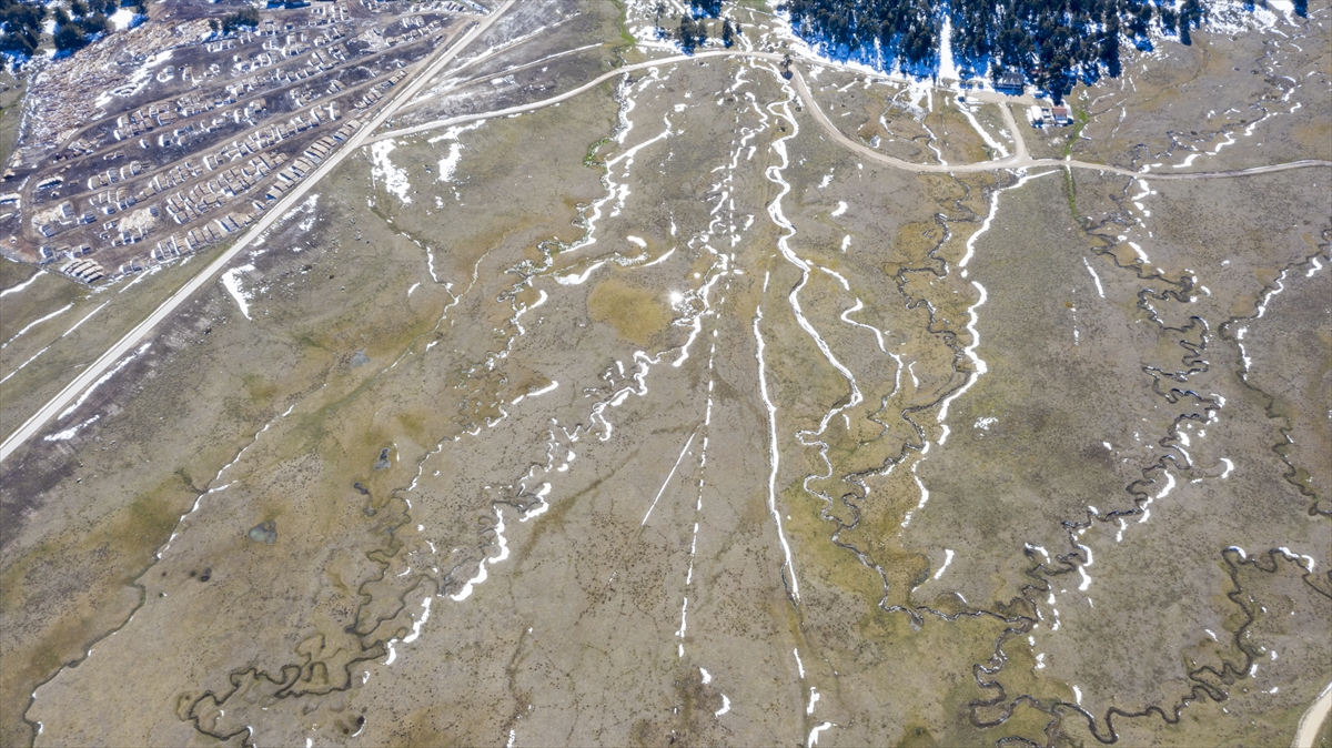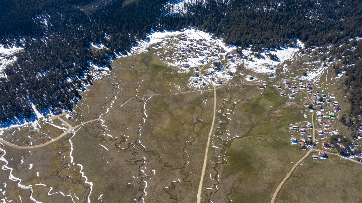 Kış aylarında kar kalınlığının yer yer 2 metreyi bulduğu, yaklaşık 1500 metre rakımdaki Sarıalan Yaylası’nda hava sıcaklıklarının yükselmesiyle beyaz örtü erimeye başladı.