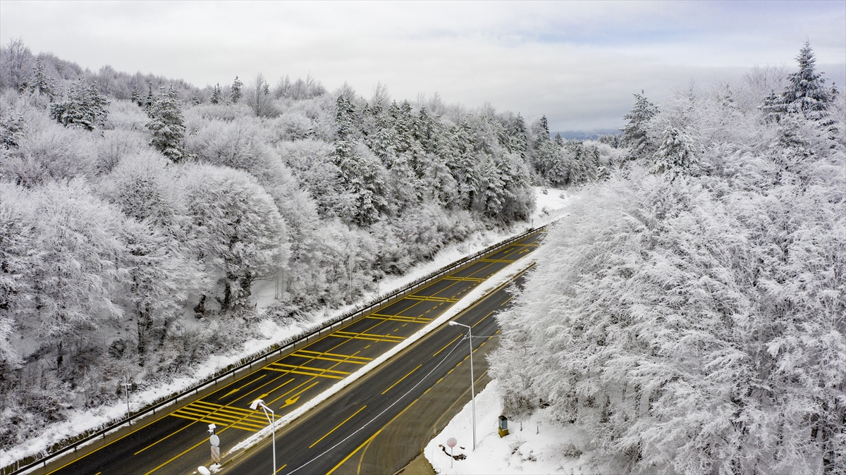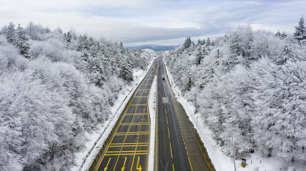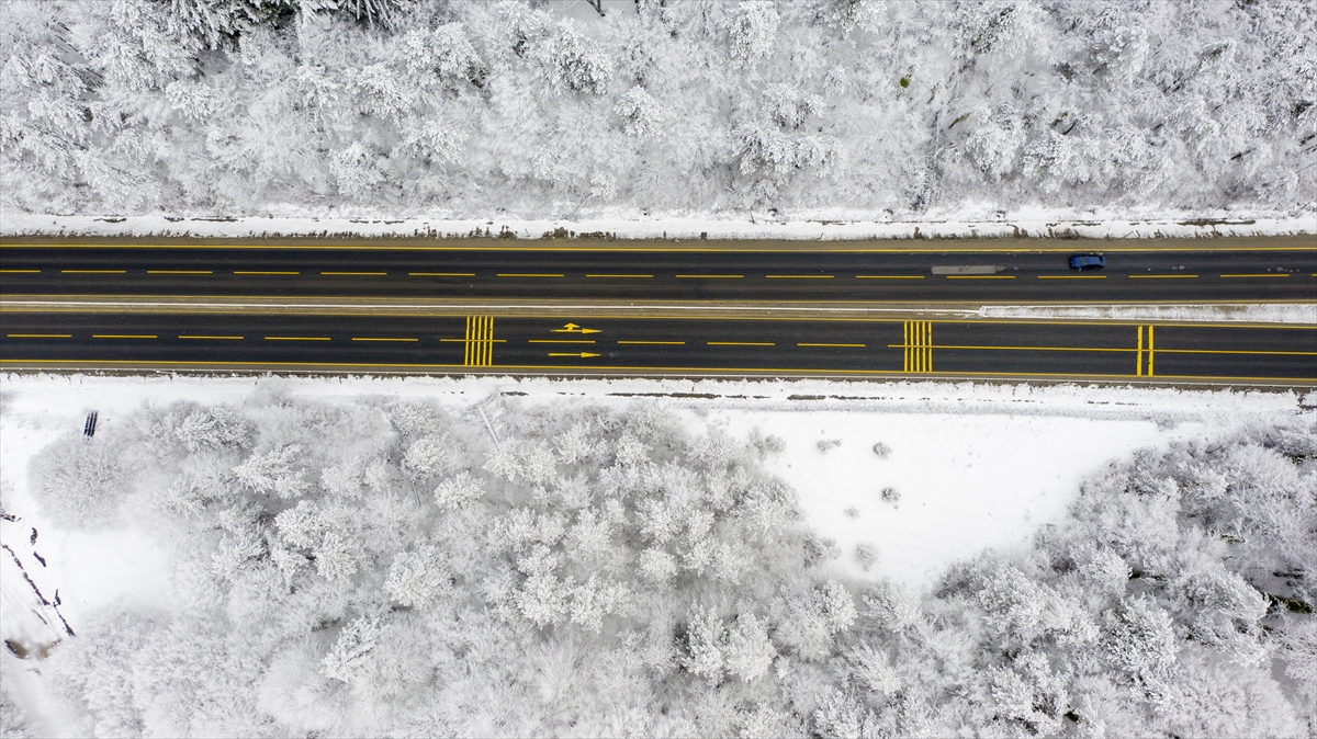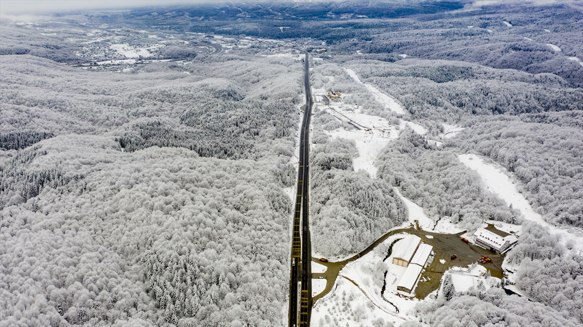 Bu arada beyaz örtüyle kaplanan D-100 kara yolunun Bolu Dağı kesiminde oluşan kış manzaraları havadan da görüntülendi.