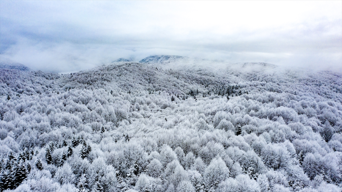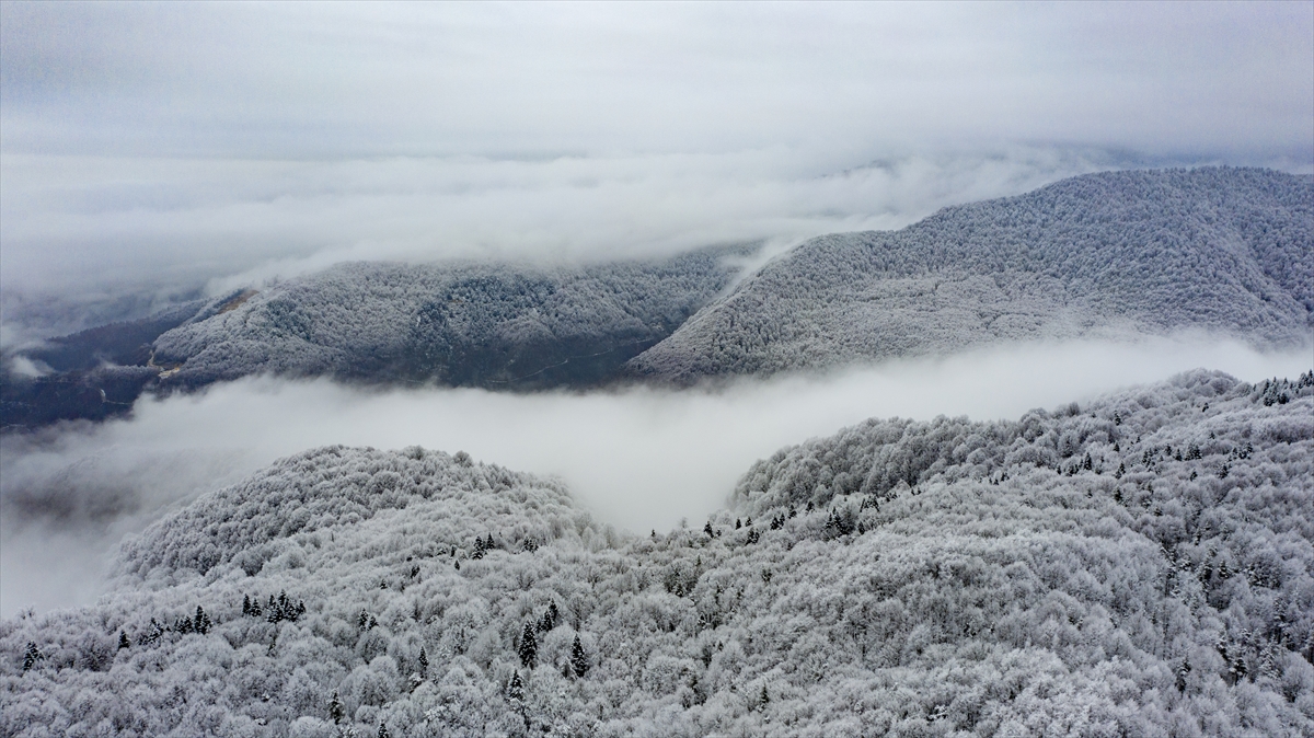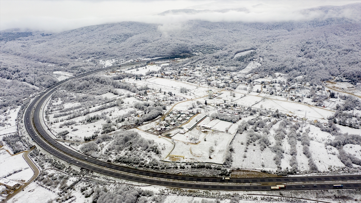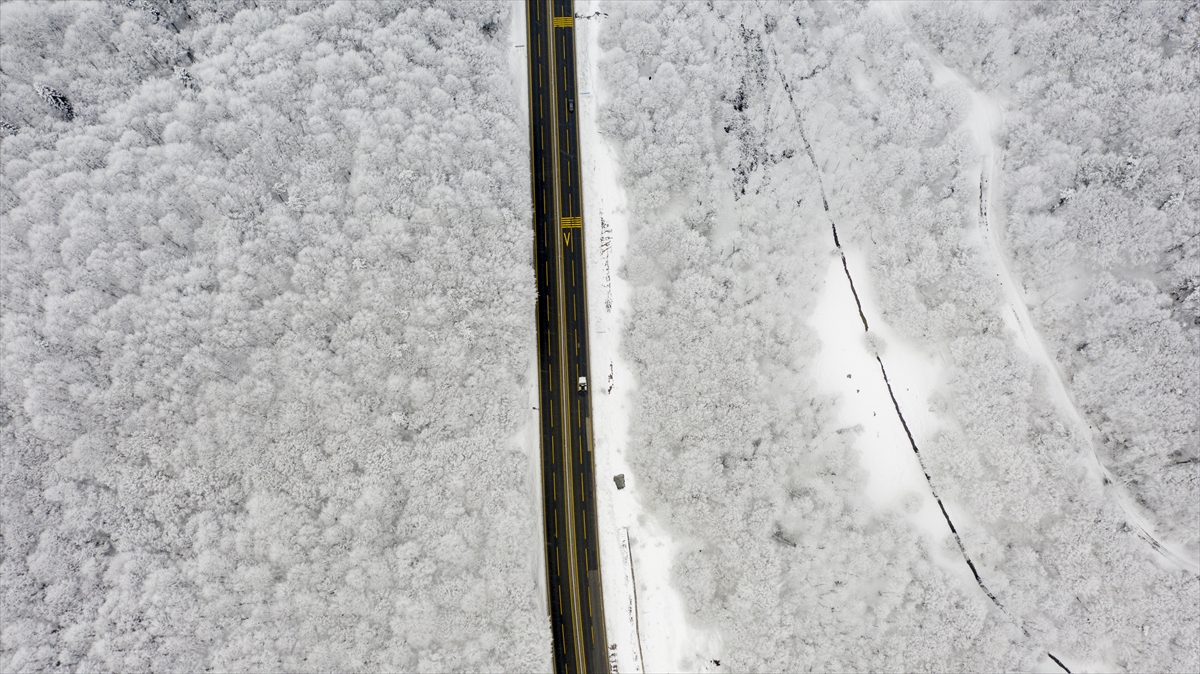 Bu arada beyaz örtüyle kaplanan D-100 kara yolunun Bolu Dağı kesiminde oluşan kış manzaraları havadan da görüntülendi.