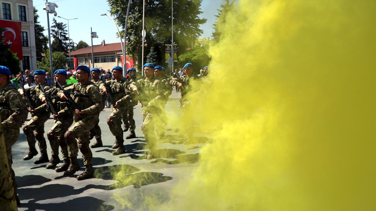 Bolu'da, 30 Ağustos Zafer Bayramı'nın 101'inci yıl dönümü coşkuyla kutlandı. Caddede marşlar eşliğinde yürüyen komandolar, kalabalıktan alkış aldı.