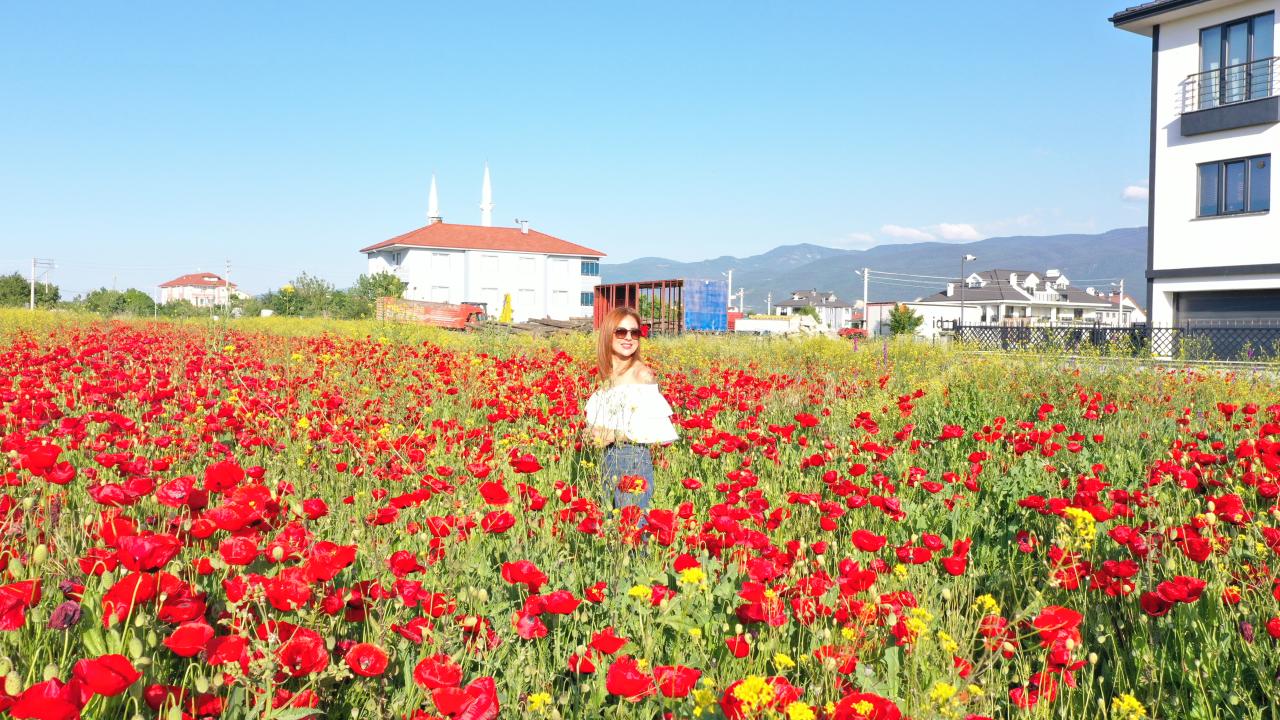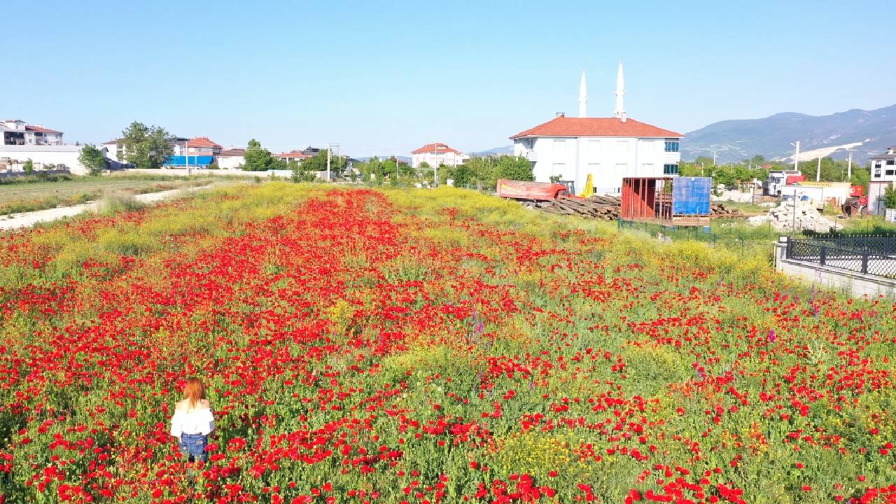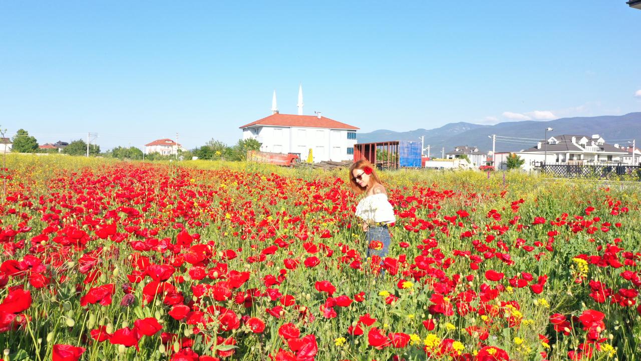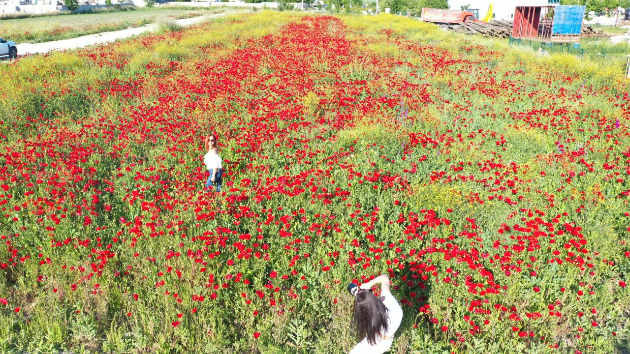 Tepecik Mahallesi`ndeki arsada boy veren gelincikleri görenler, çiçeklerin arasında dolaşıp kırmızının tonları eşliğinde fotoğraf çektirdi.