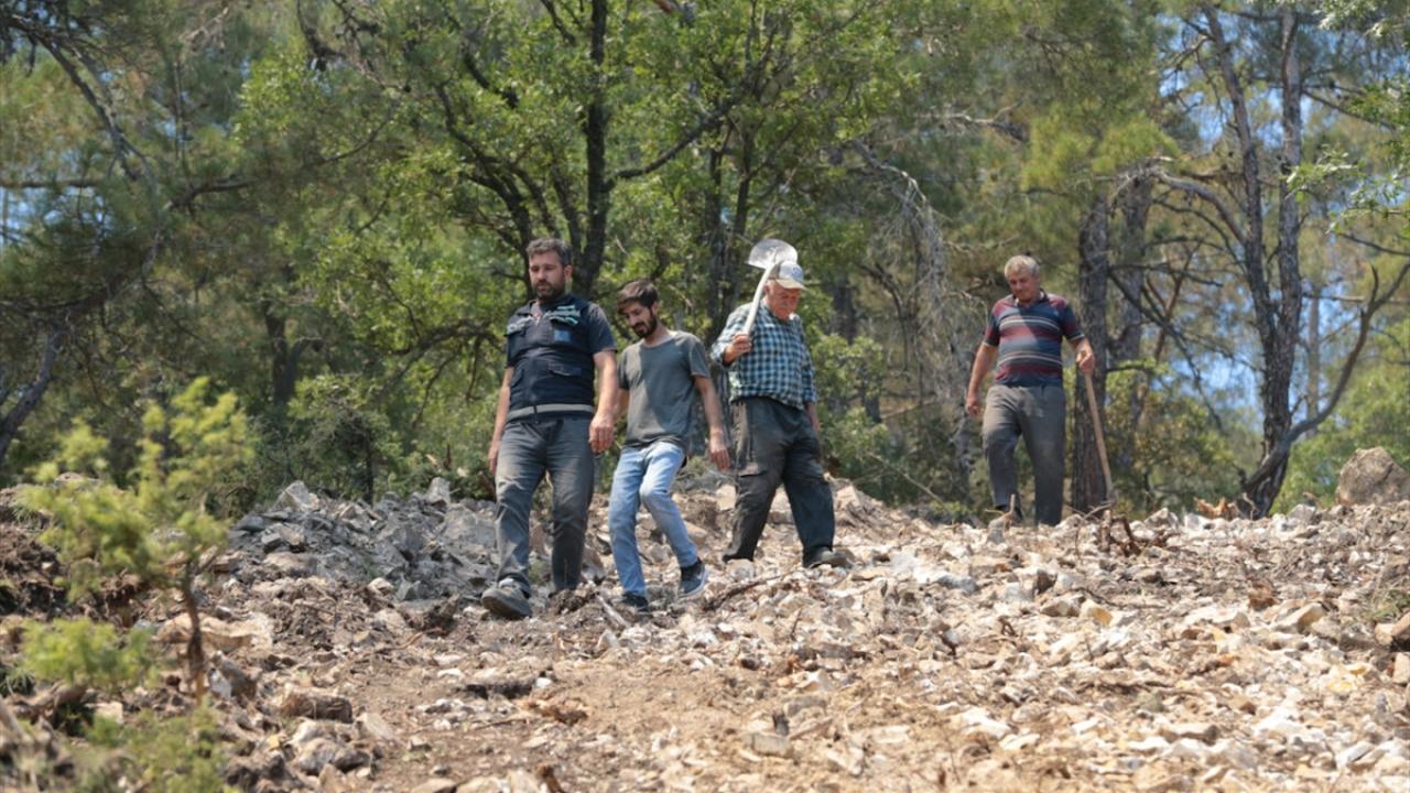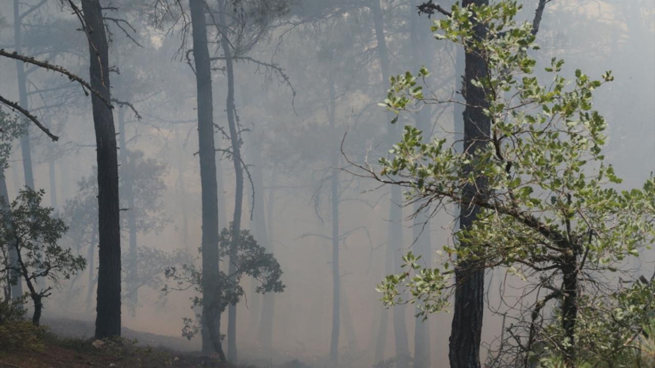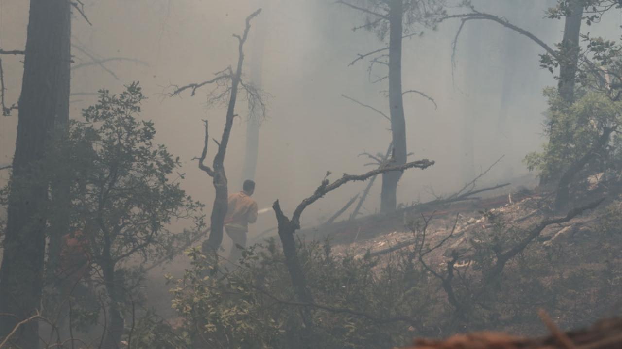 Aşağıkınık köyü mevkisindeki ormanlık alanda dün öğleden sonra yıldırım düşmesi sonucu meydana gelen yangının kontrol altına alınması için çalışma yürütülüyor.