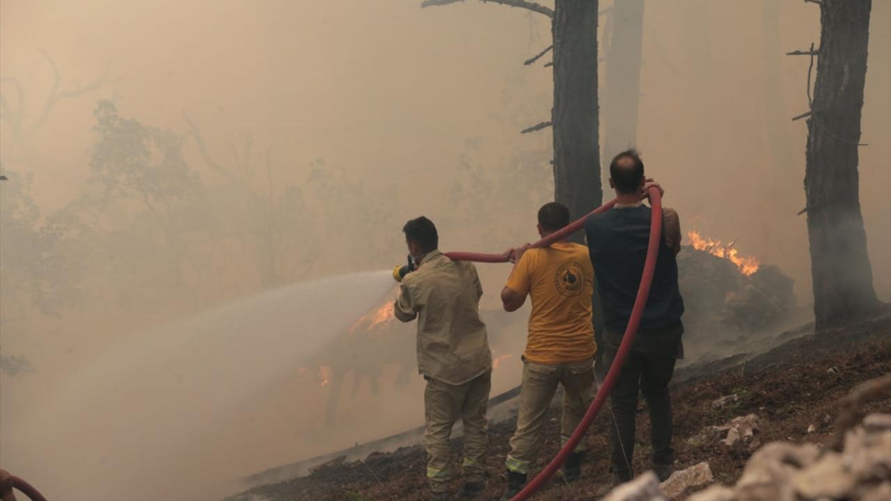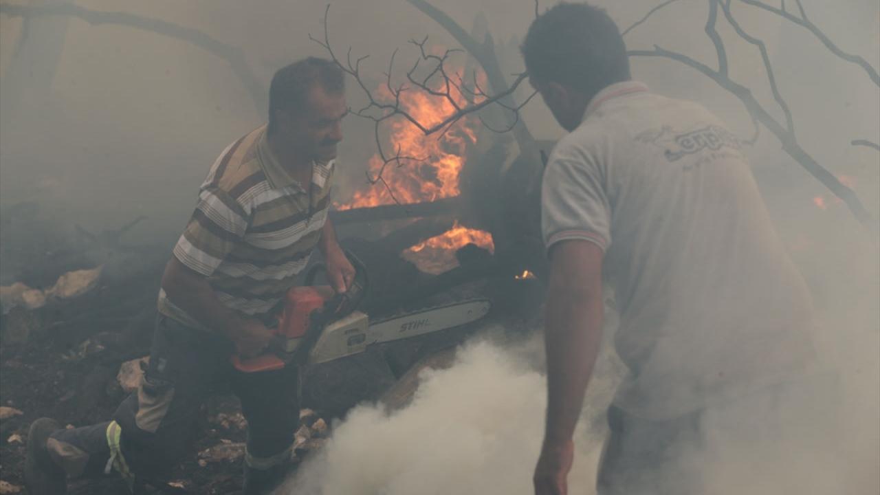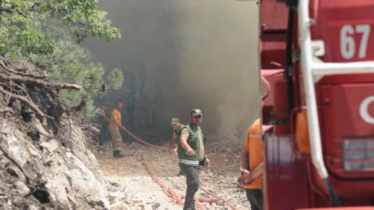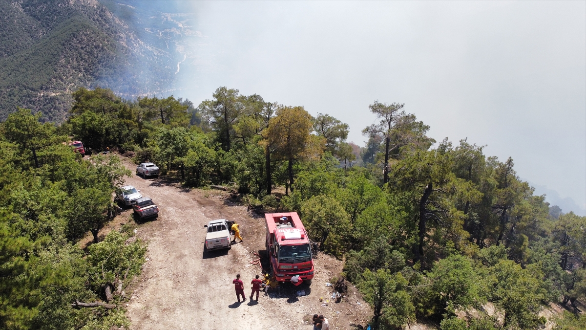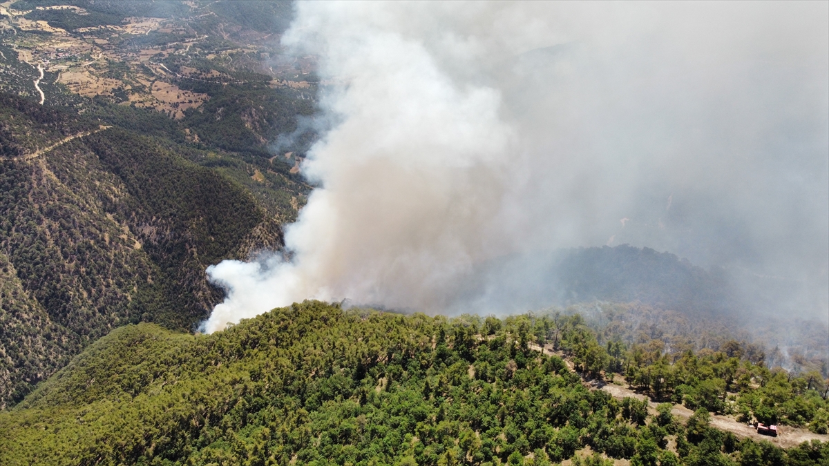 Yangının, havadan ve karadan süren çalışmalarla kontrol altına alınmasına çalışılıyor.