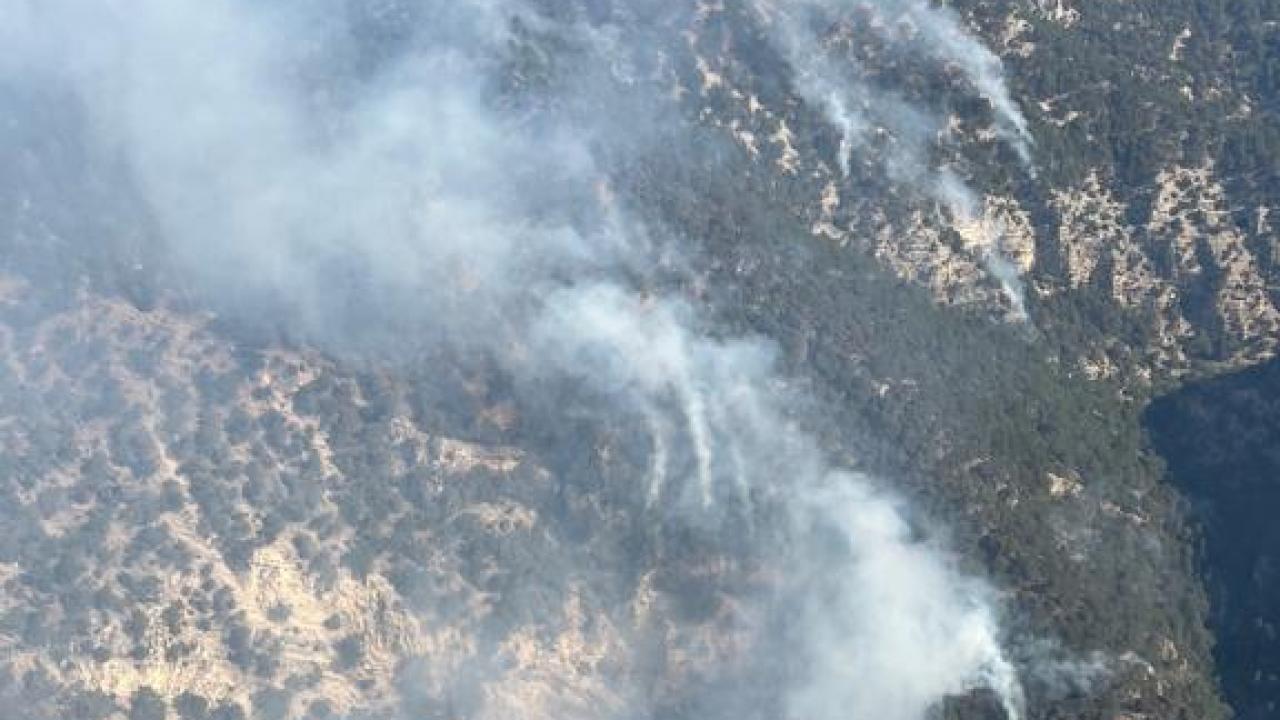 Aşağıkınık köyü mevkisindeki ormanlık alanda 27 Temmuz Perşembe günü öğleden sonra yıldırım düşmesi sonucu başlayan yangının kontrol altına alınması için çalışma yürütülüyor.
