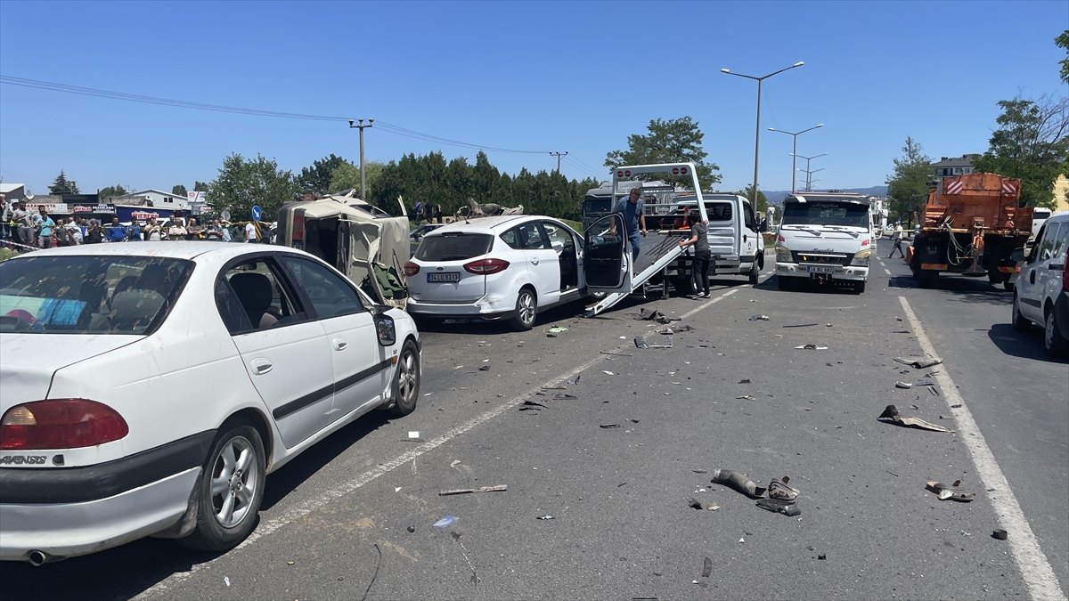 Kara yolunun İstanbul istikametinde seyreden İ. Ö. yönetimindeki otomobil, Ankara yönü sanayi yan yol kavşağından dönen Engin Gökdemir`in kullandığı otomobille çarpıştı. Sürücüsünün ismi öğrenilemeyen bir başka otomobil ile Y.A. idaresindeki otomobil de kaza yapan araçlara çarptı.