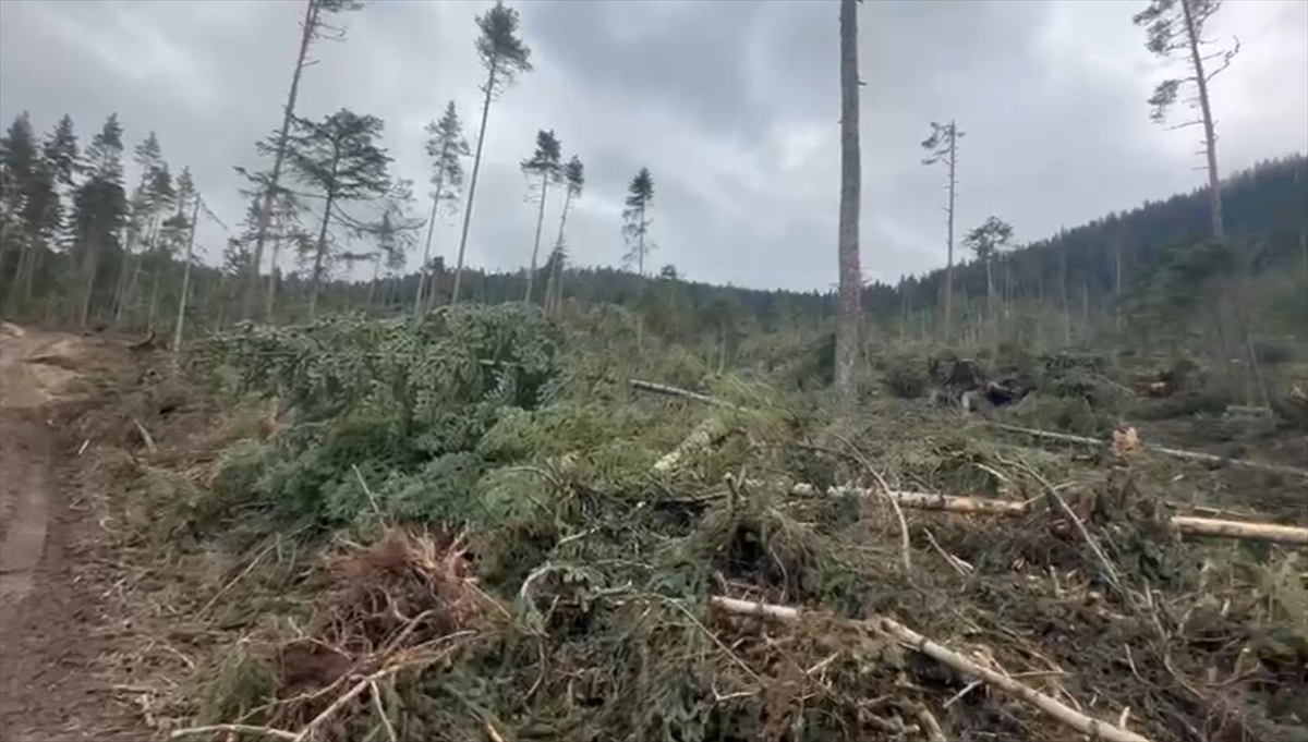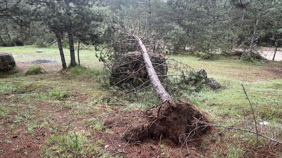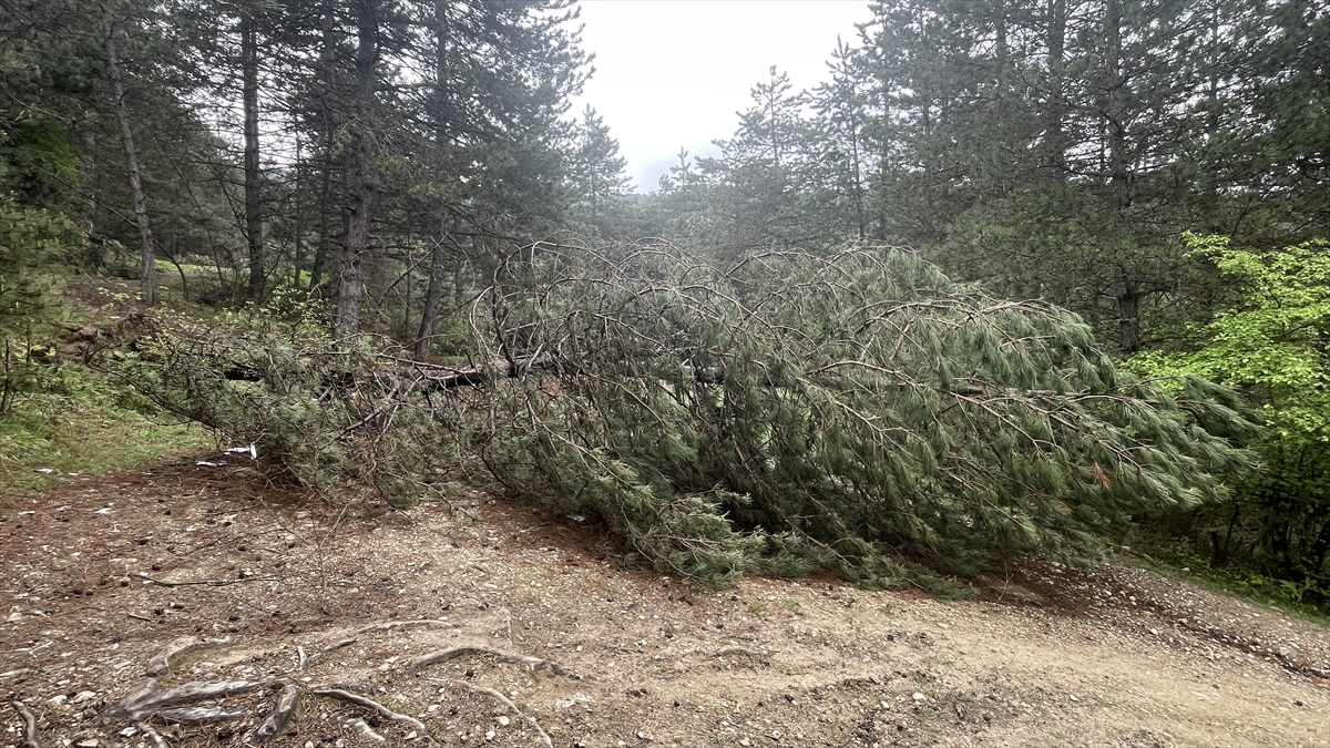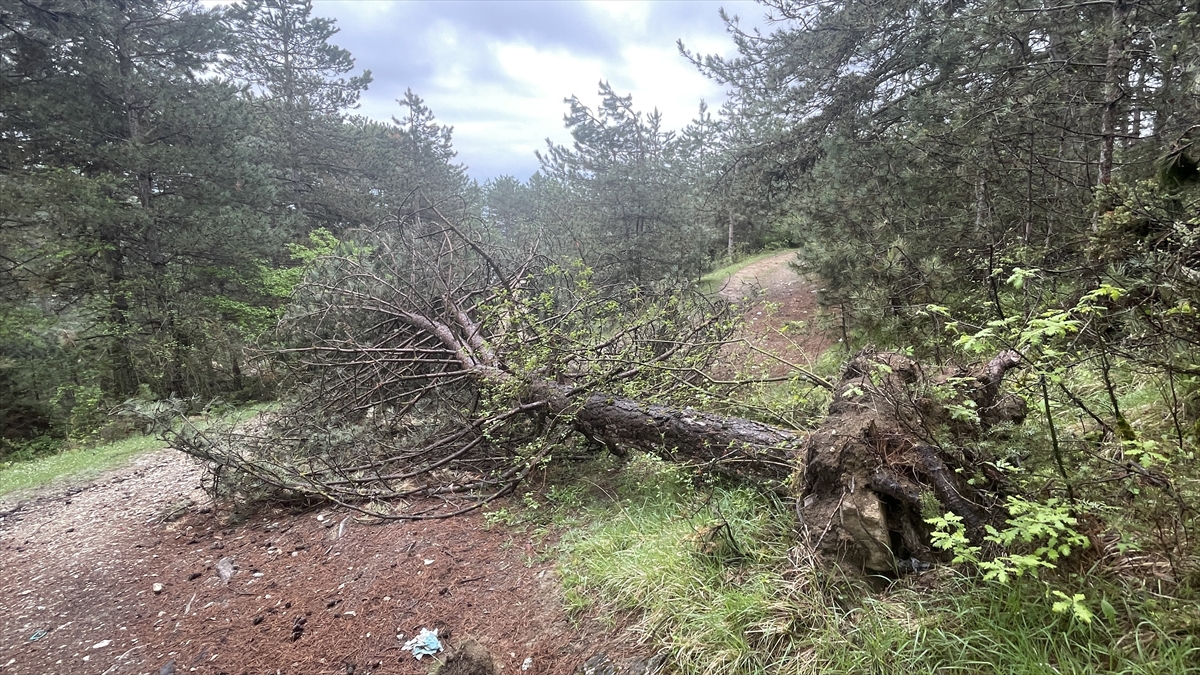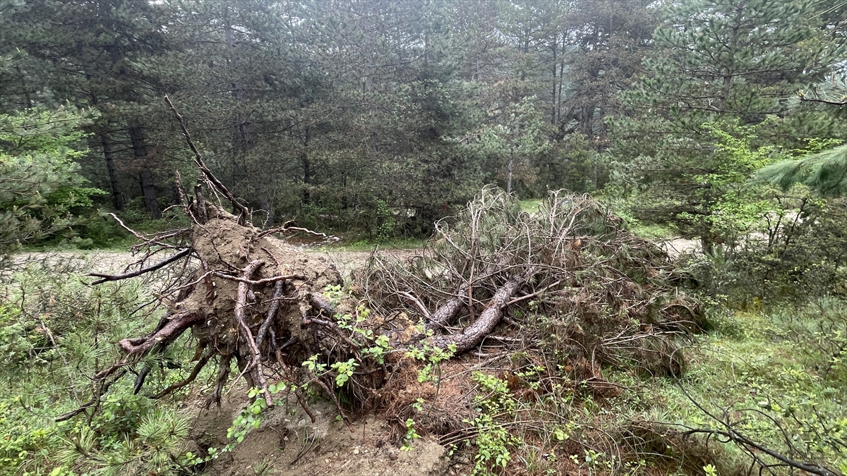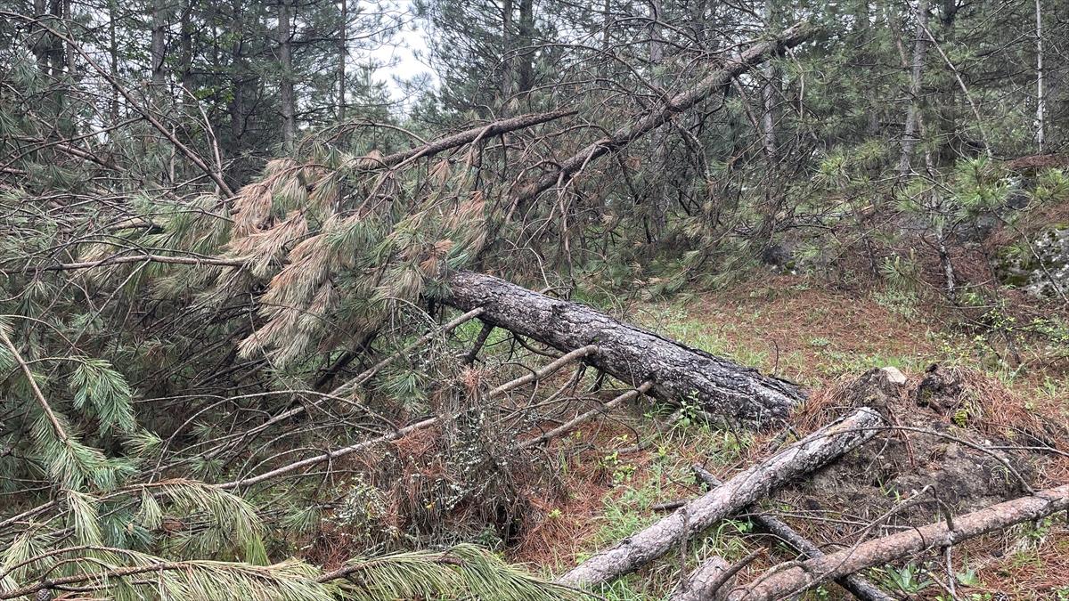 Bolu'daki fırtınalarda devrilen ve kırılan çam ağaçları kaldırılıyor