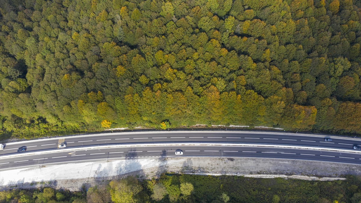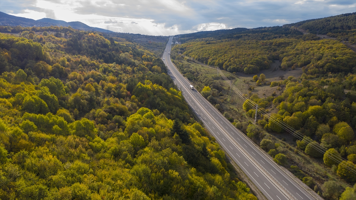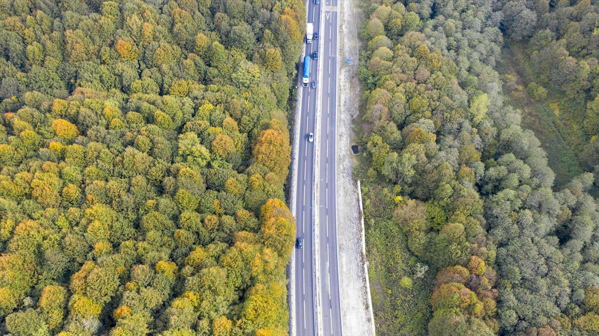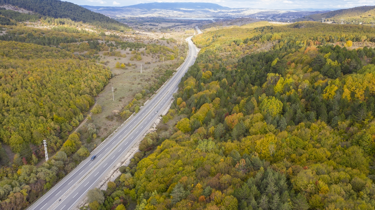 İstanbul ve Ankara arasındaki en önemli geçiş güzergahlarından D-100 kara yolunun Yeniçağa kesiminden geçen sürücüler, sonbahar renkleri arasında yolculuk yapıyor.